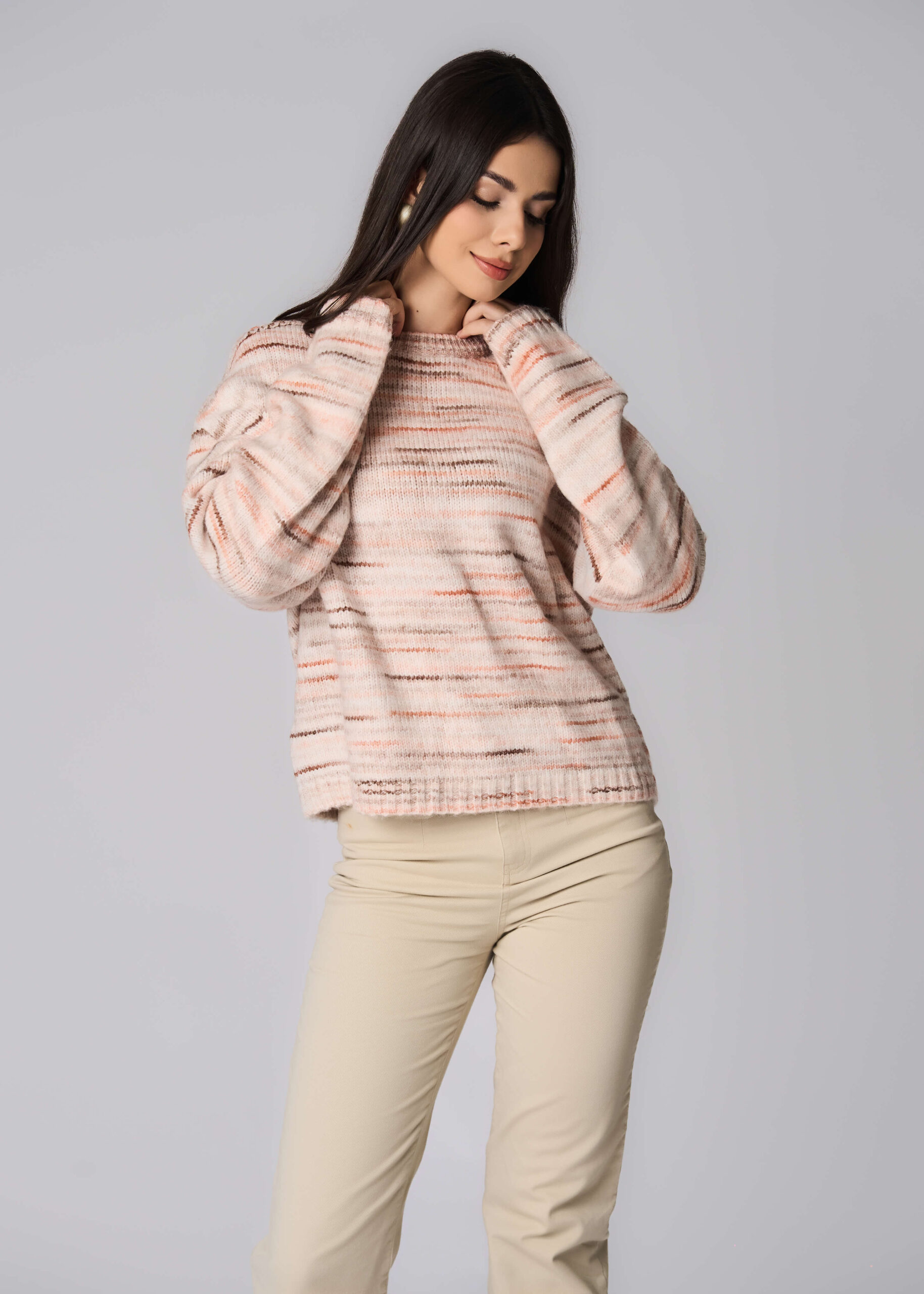 بلوزة نسائي, نسيج محبوك, مخططة, ياقة مدورة, اكمام طويلة, دافئة بالوان زاهية