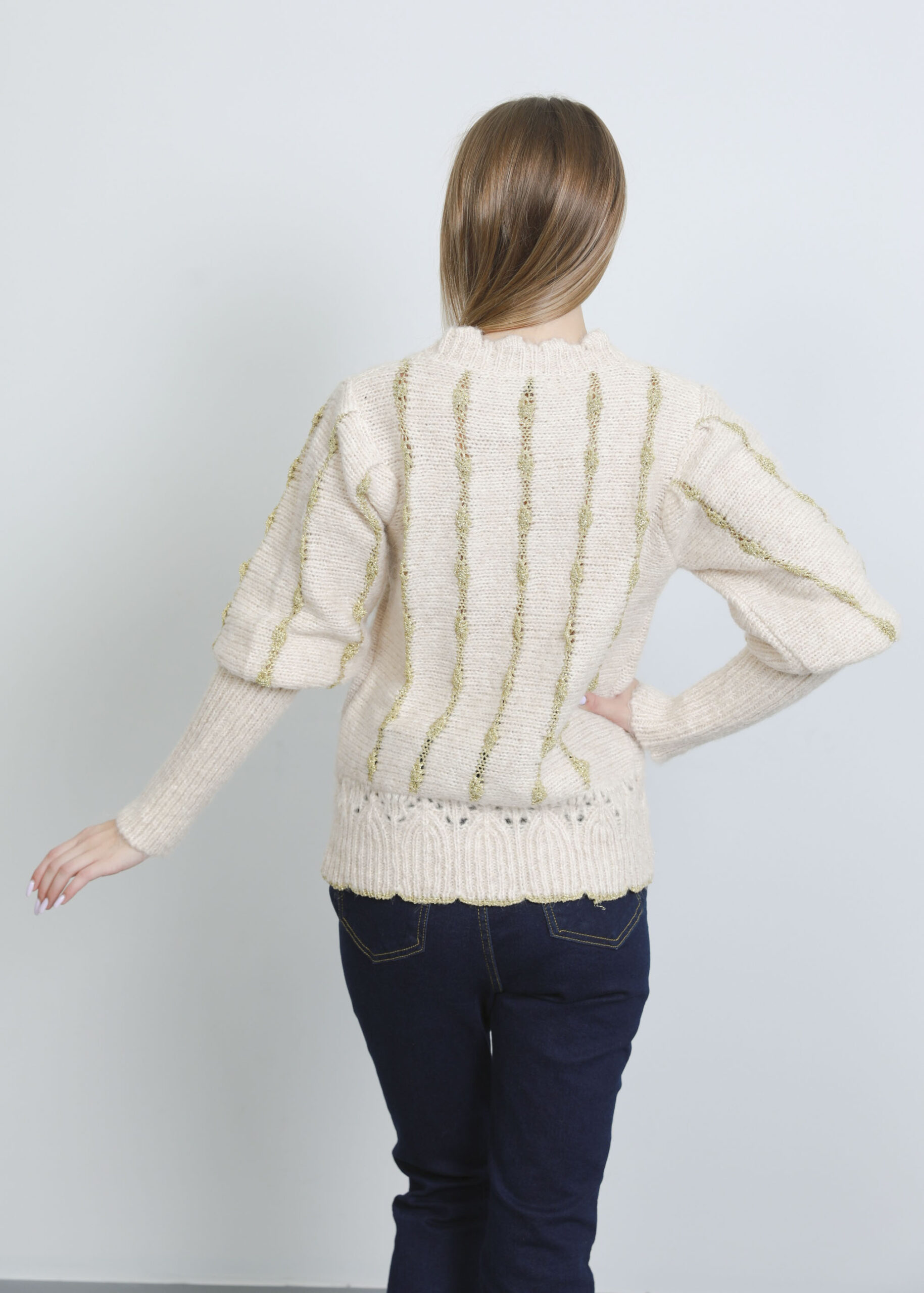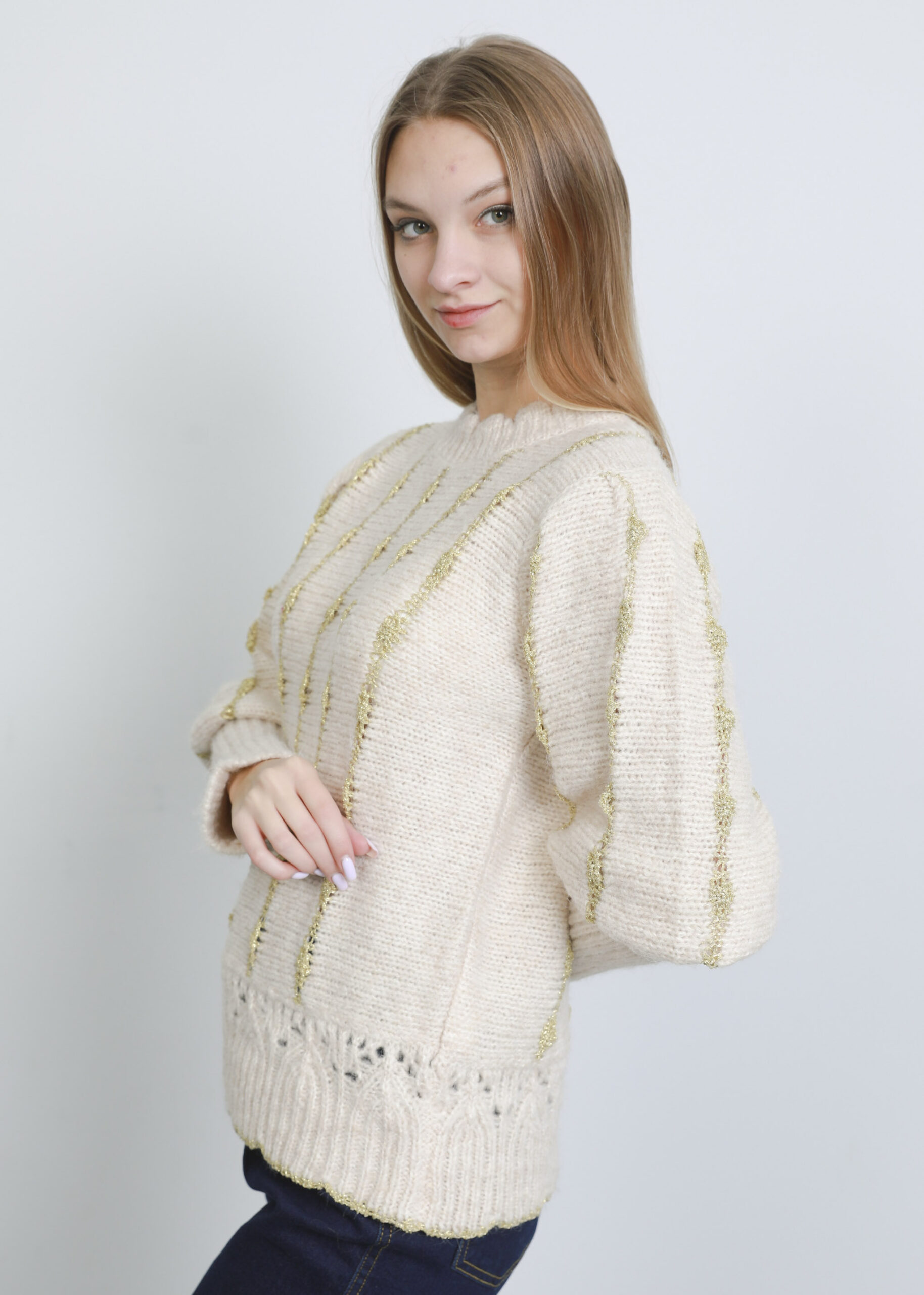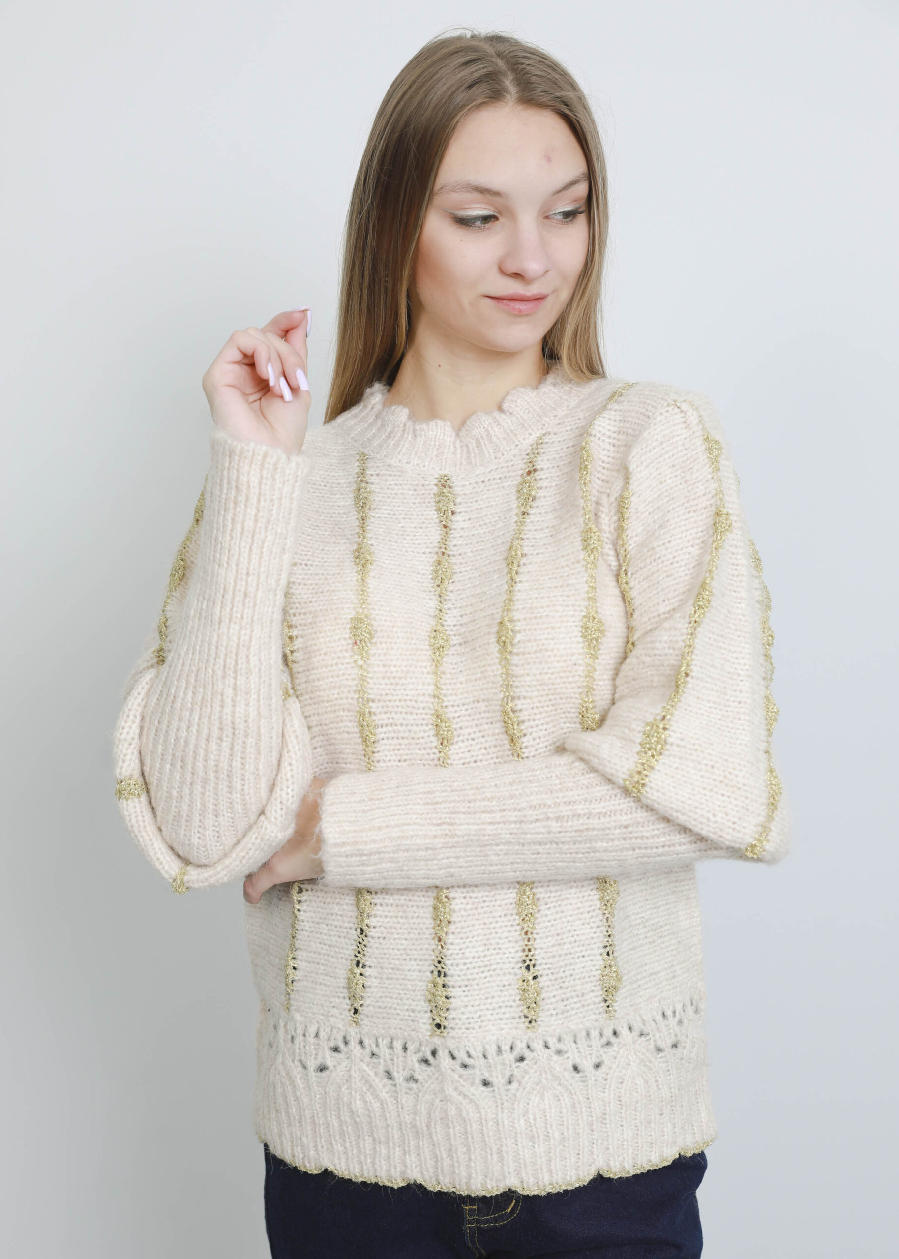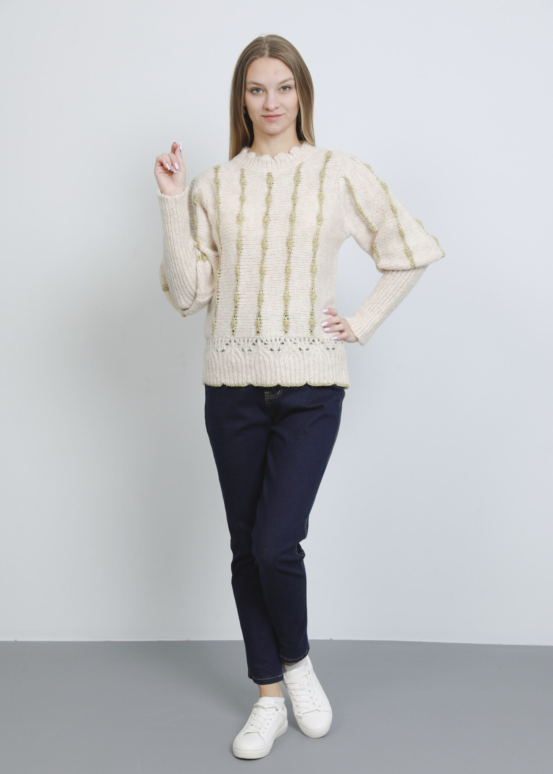 بلوزة نسائي, تصميم محبوك, مخطط بنسيج لامع, اكمام طويلة مع معصم ضيق, ياقة كشكش مدورة, انيق ودافيء, 50% بولياميد 25% بوليستر 25% اكريليك