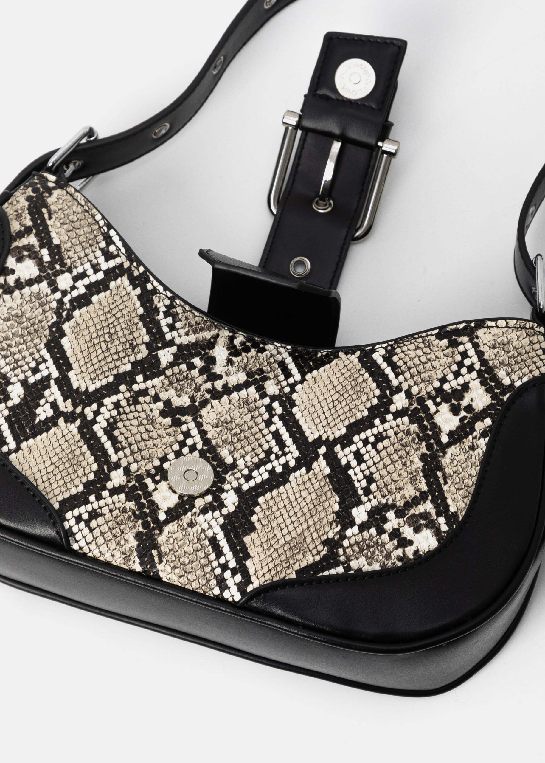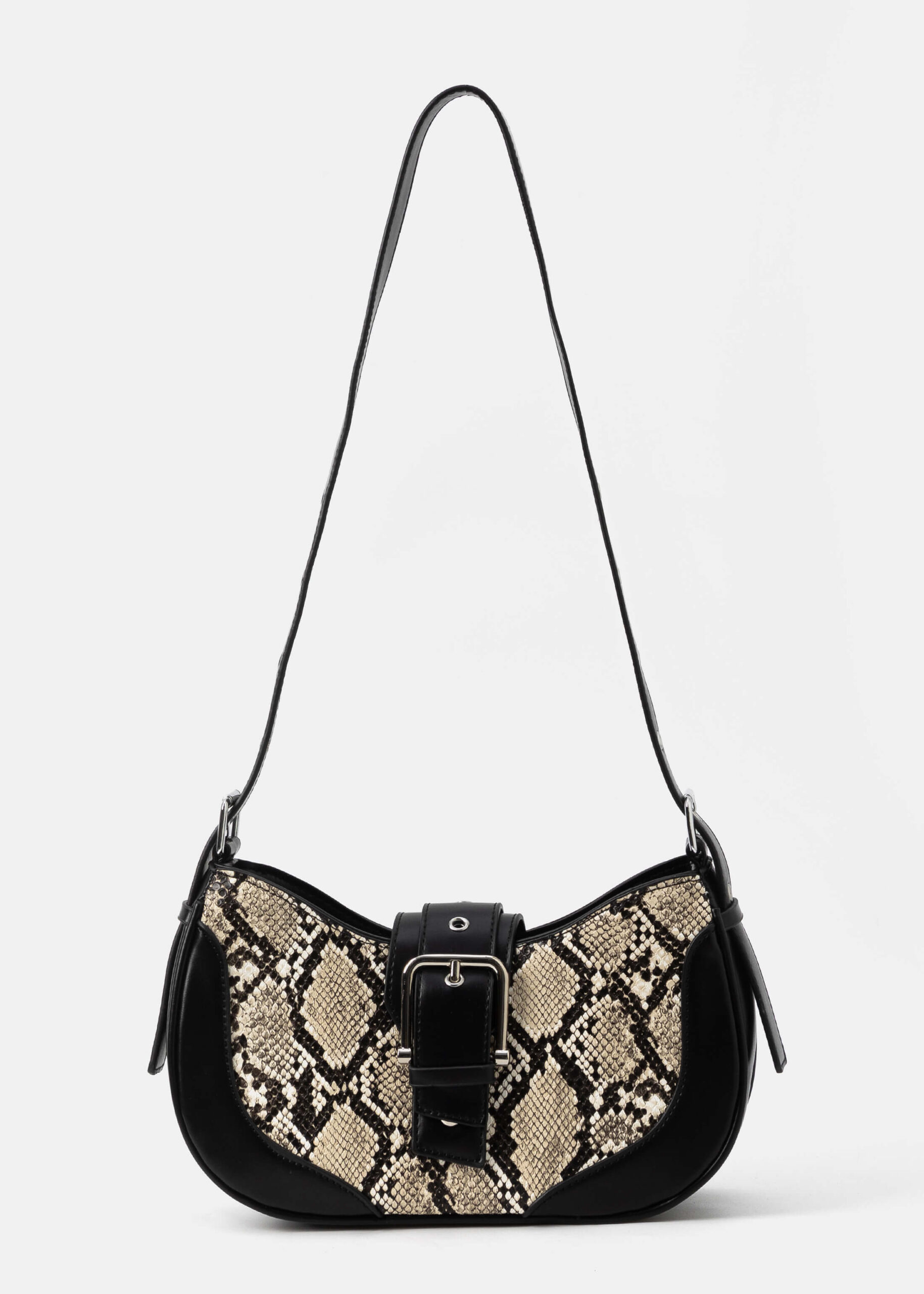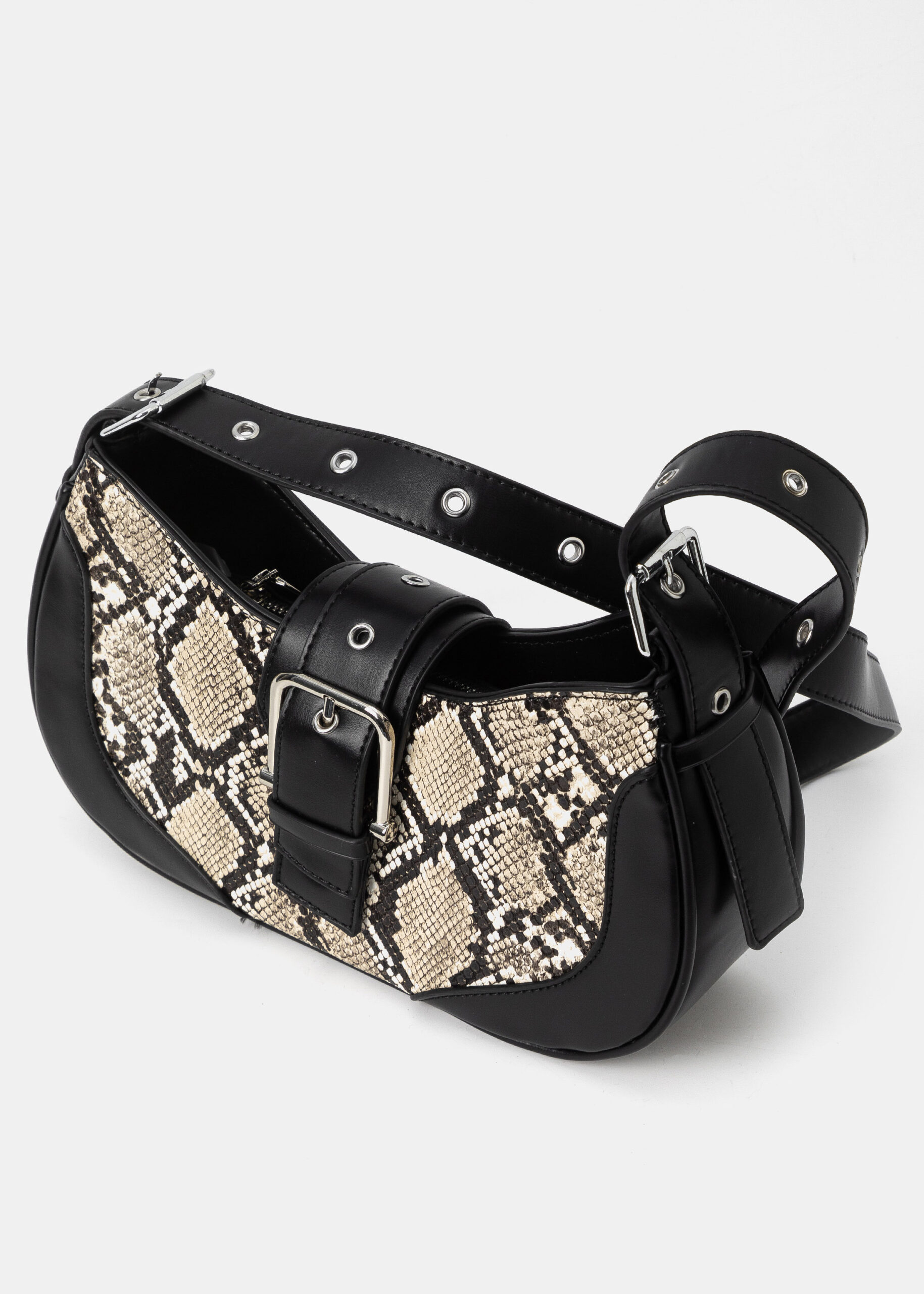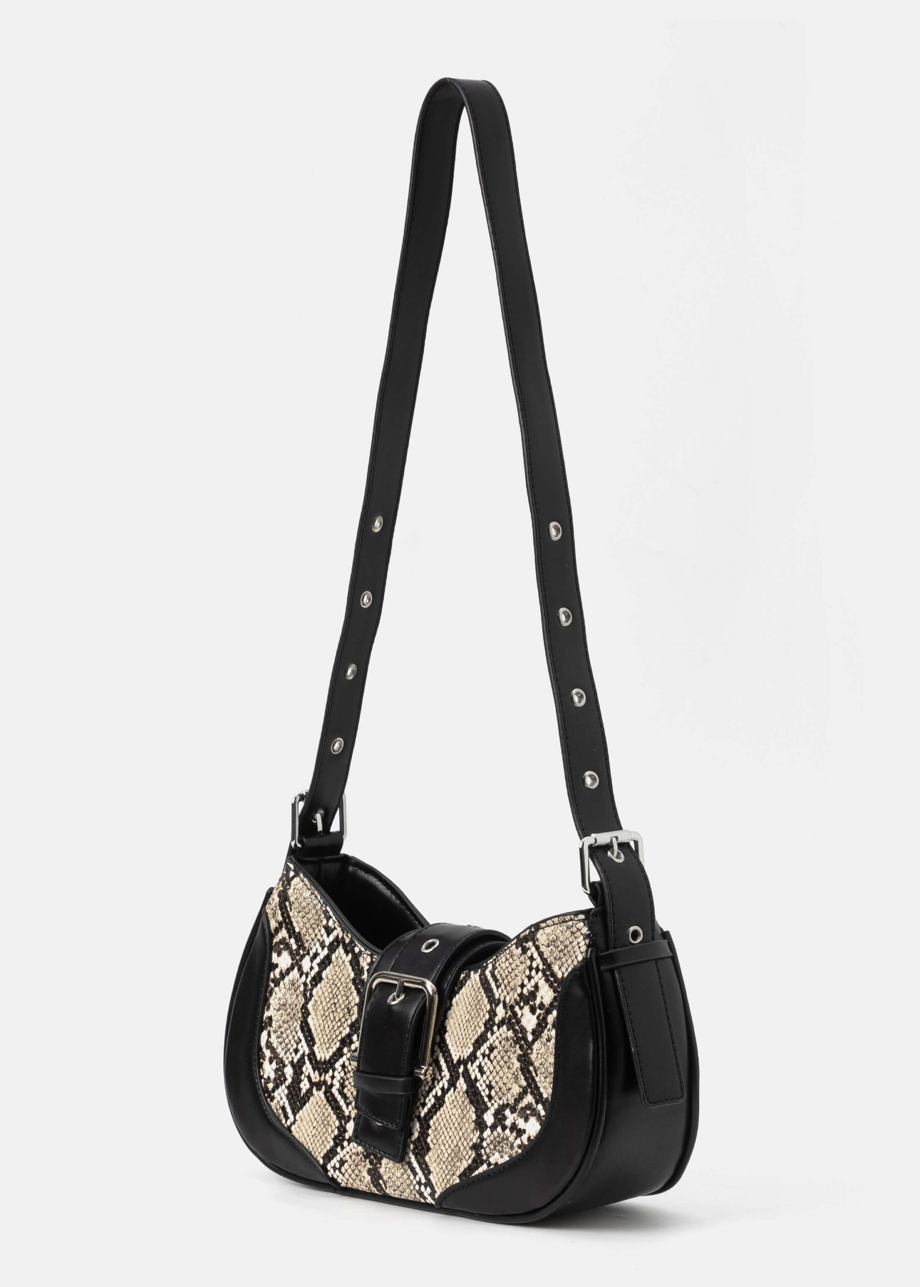 حقيبة نسائي, جلد, زر من الامام للاغلاق مزين بتصميم حزام, سحاب من الاعلى للاغلاق, حزام كتف, انيق وعصري
