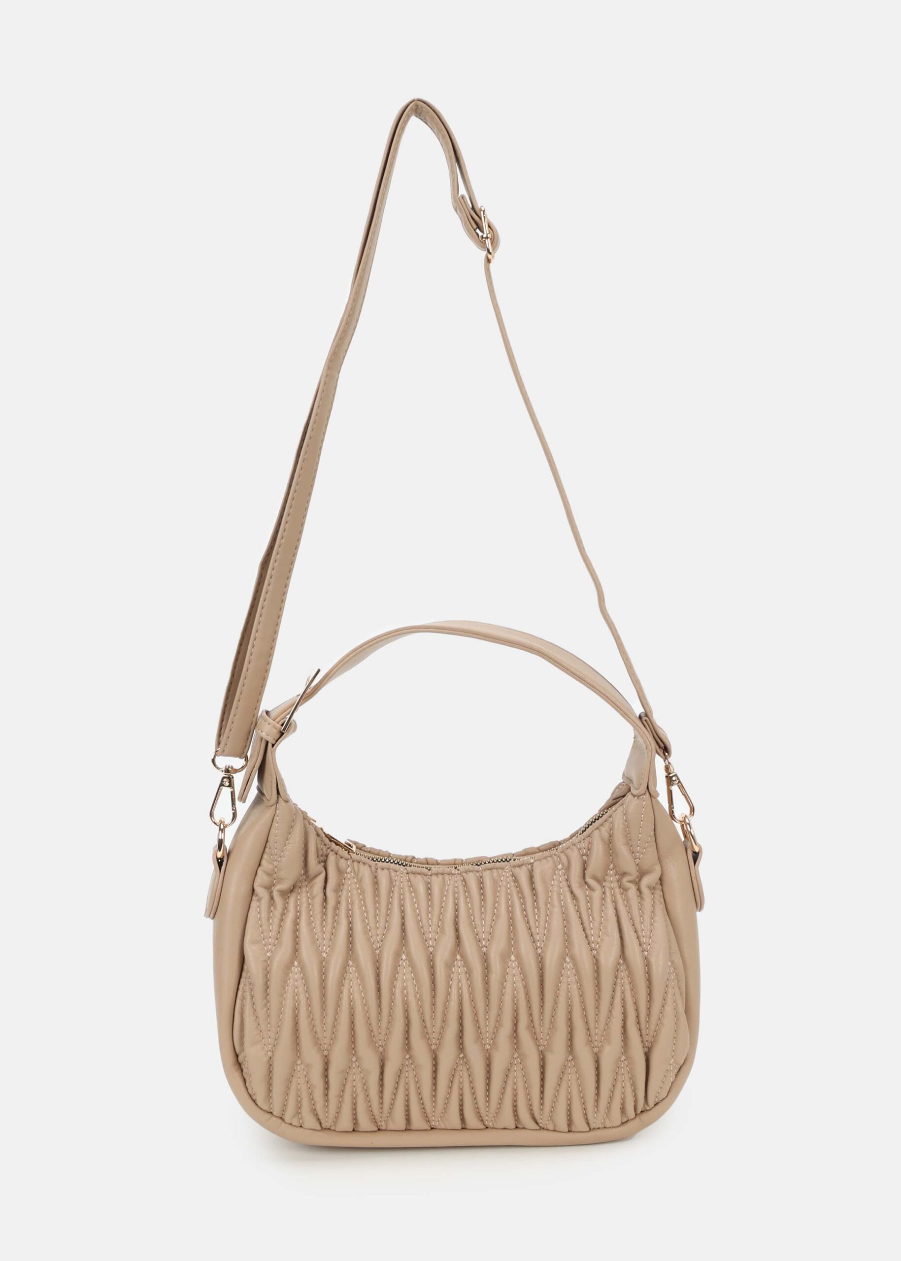حقيبة نسائي, جلد, تصميم مبطن بنقش بارز, حزام يد قصير ثابت, حزام كتف قابل للتعديل والازالة, سحاب من الاعلى للاغلاق, انيقة وعصرية