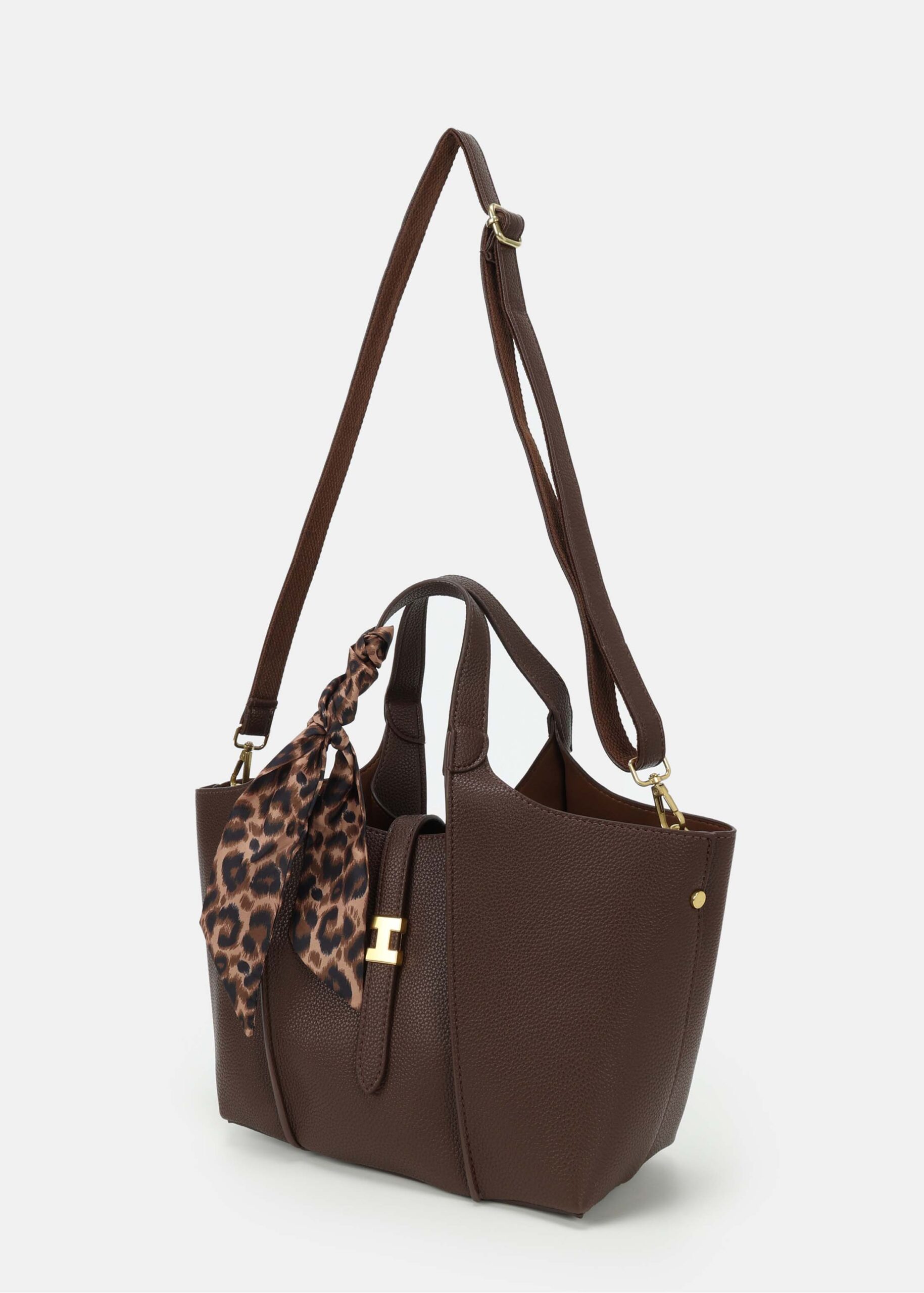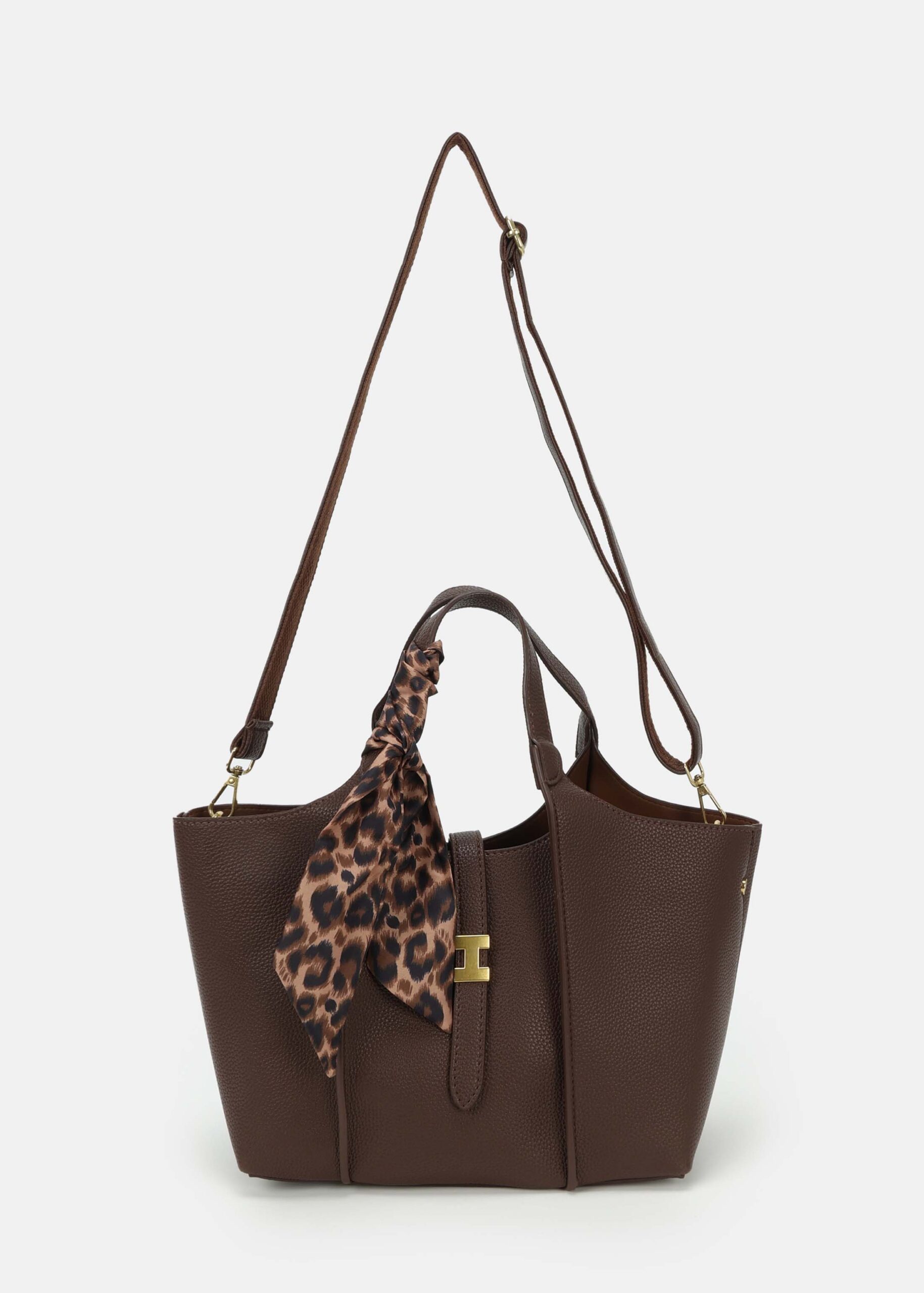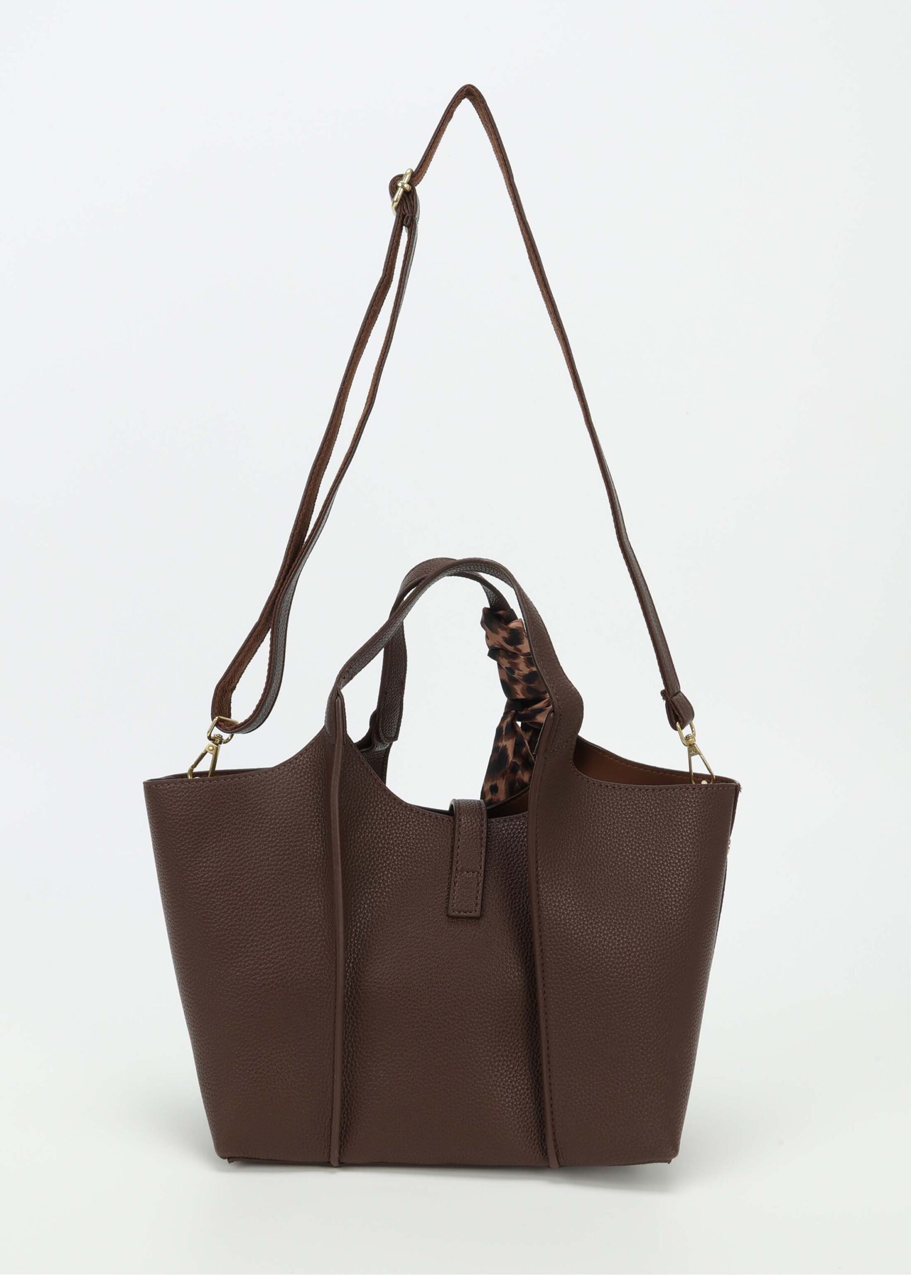 حقيبة نسائي, جلد, غطاء امامي مع مشبك للاغلاق, حزام يد, حزام كتف قابل للتعديل والازالة, سحاب من الاعلى للاغلاق,وشاح للريط على الحزام, انيقة وعصرية