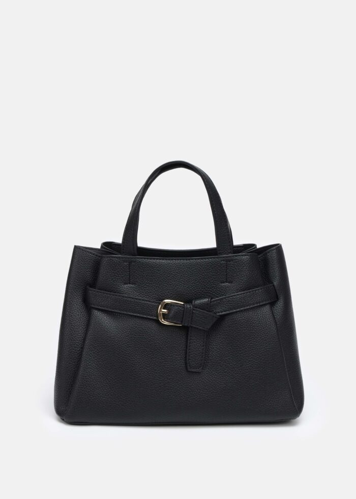 حقيبة نسائي, جلد, مزينة بحزام من الامام, سحاب للاغلاق مع ازرار, اشرطة يد, حزام كتف قابل للتعديل, انيقة وعصرية