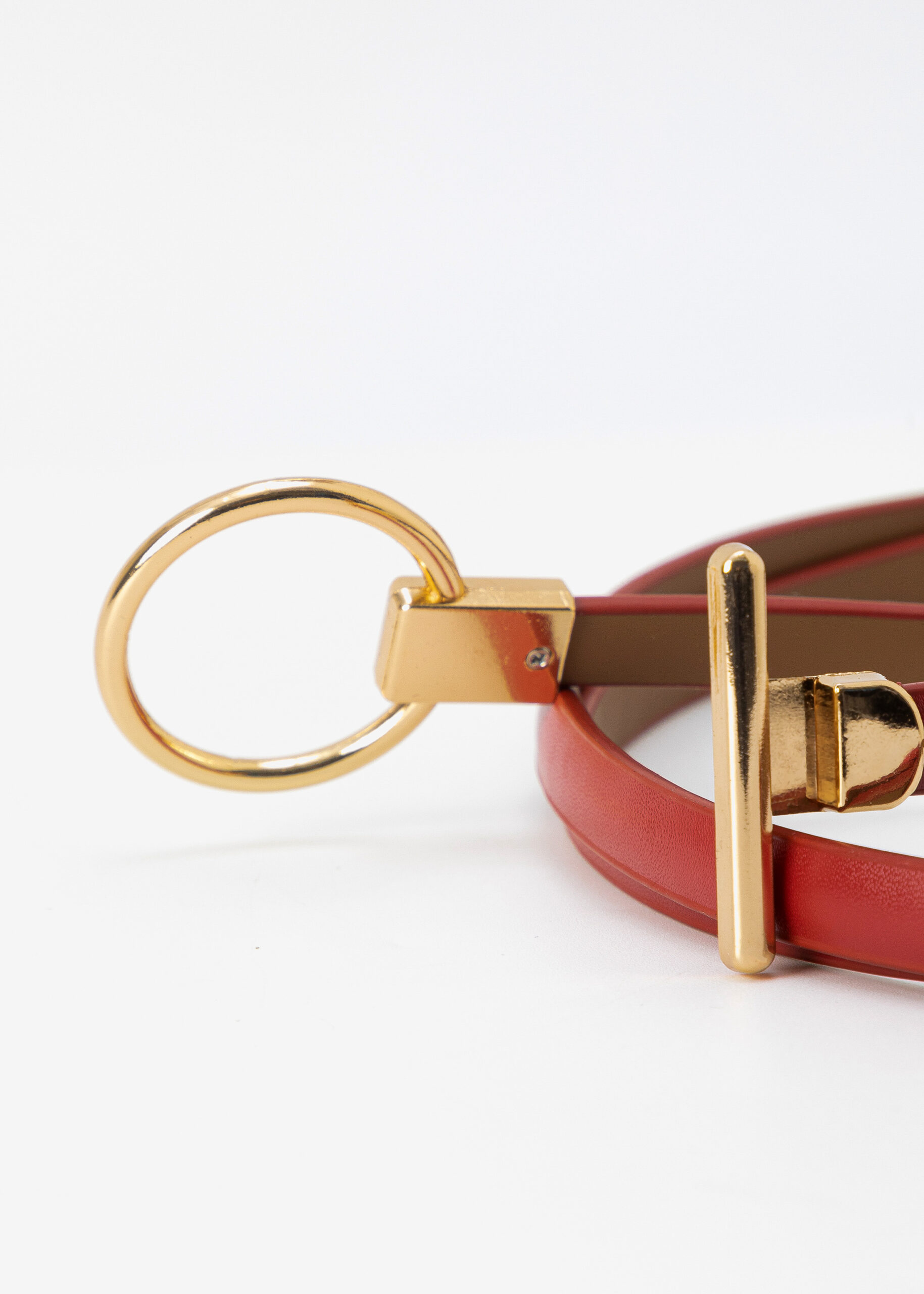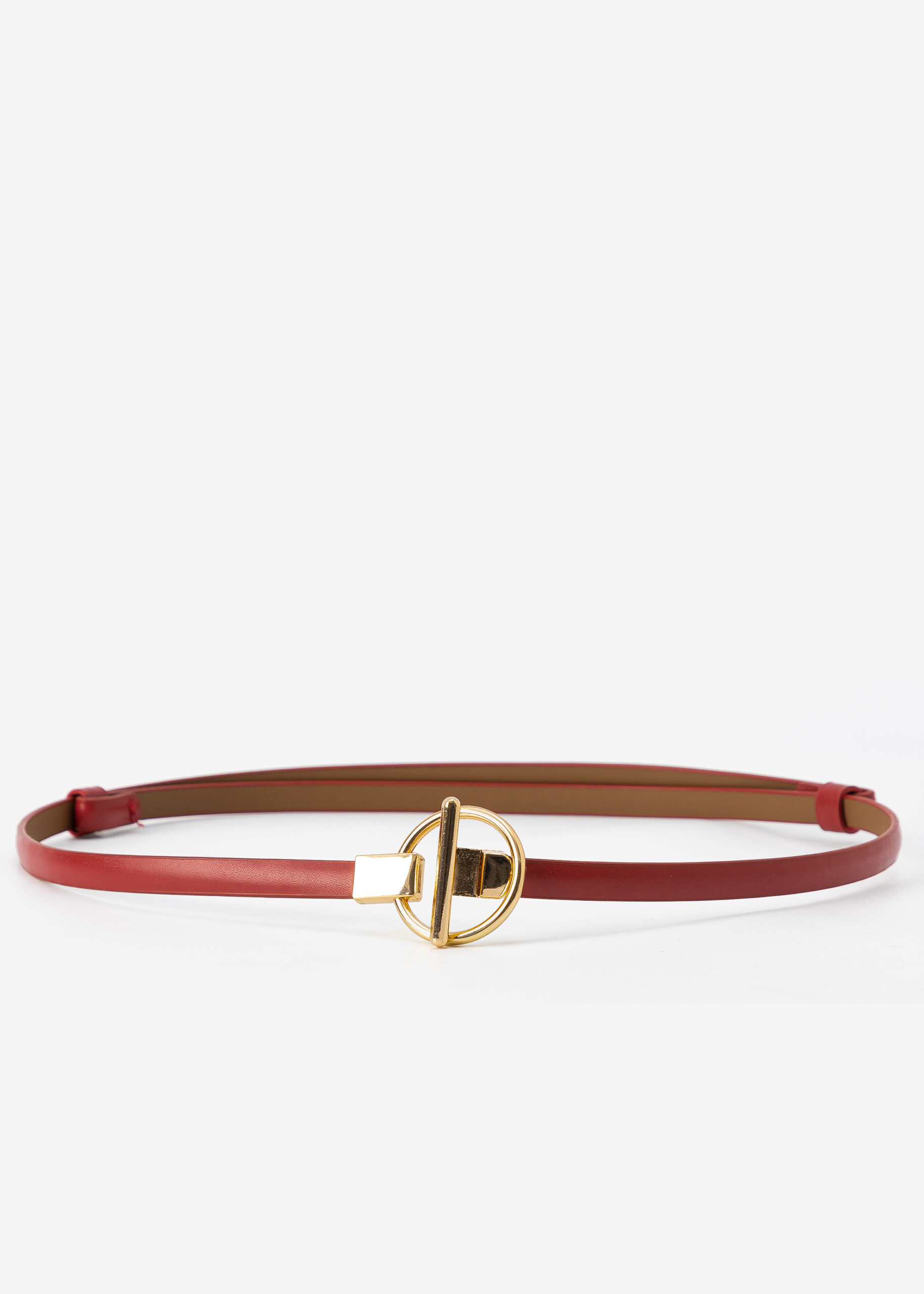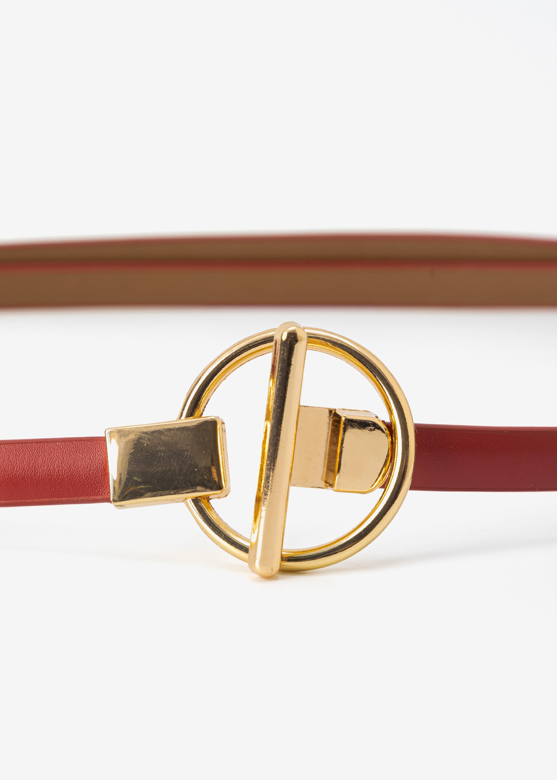 حزام نسائي, جلد, مشبك معدني من الامام للاغلاق مزين بقطعة معدنية, انيق وعصري