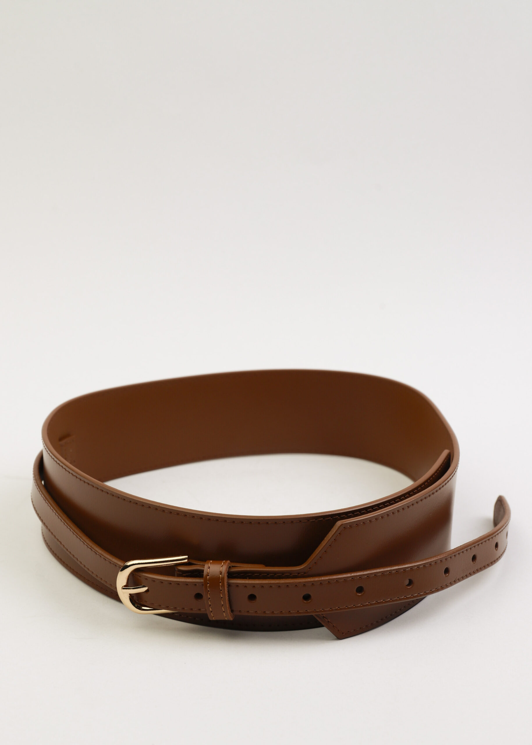 حزام نسائي, جلد, عريض مع شريط جلد رفيع عليه, مشبك معدني للاغلاق من الامام
