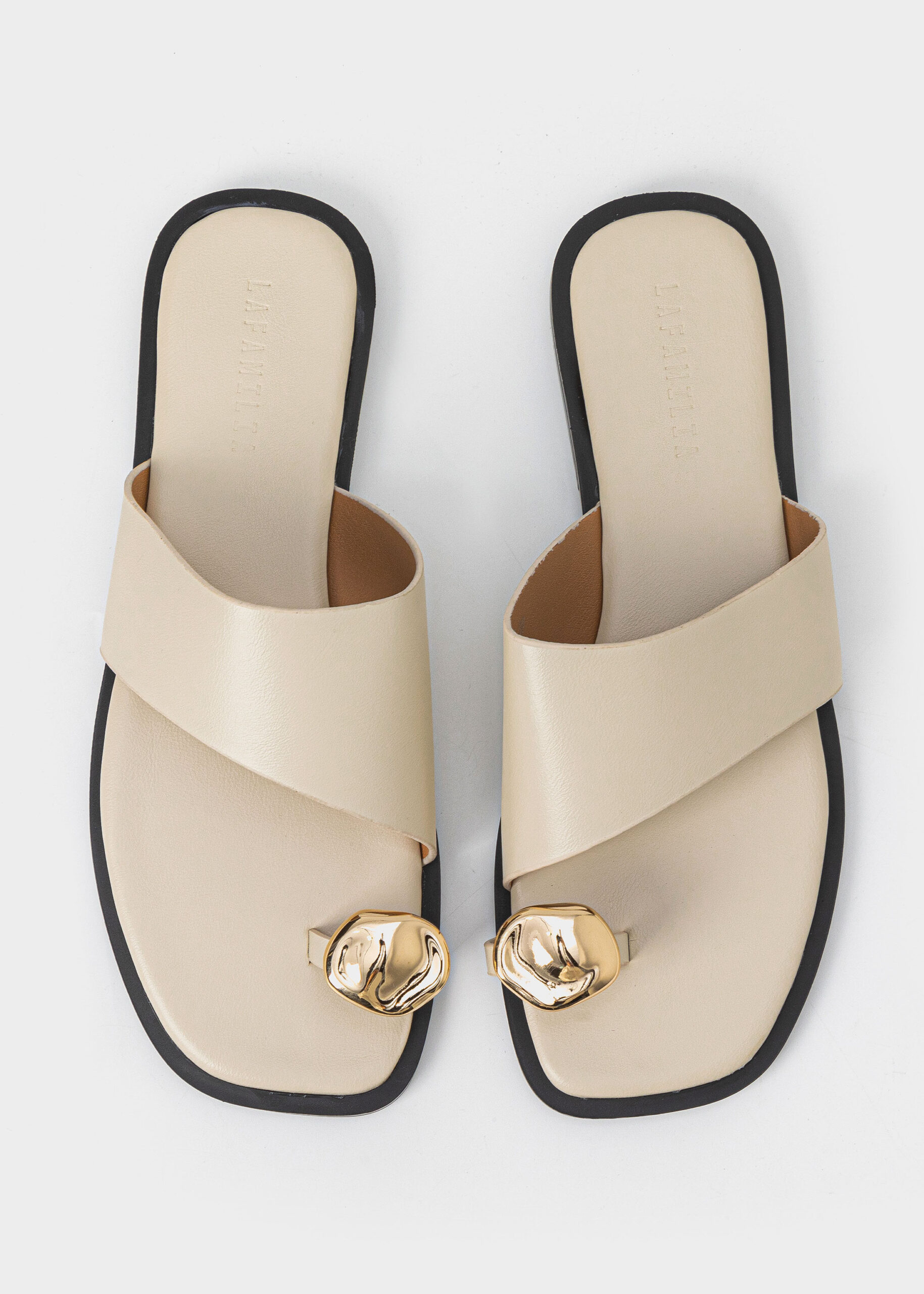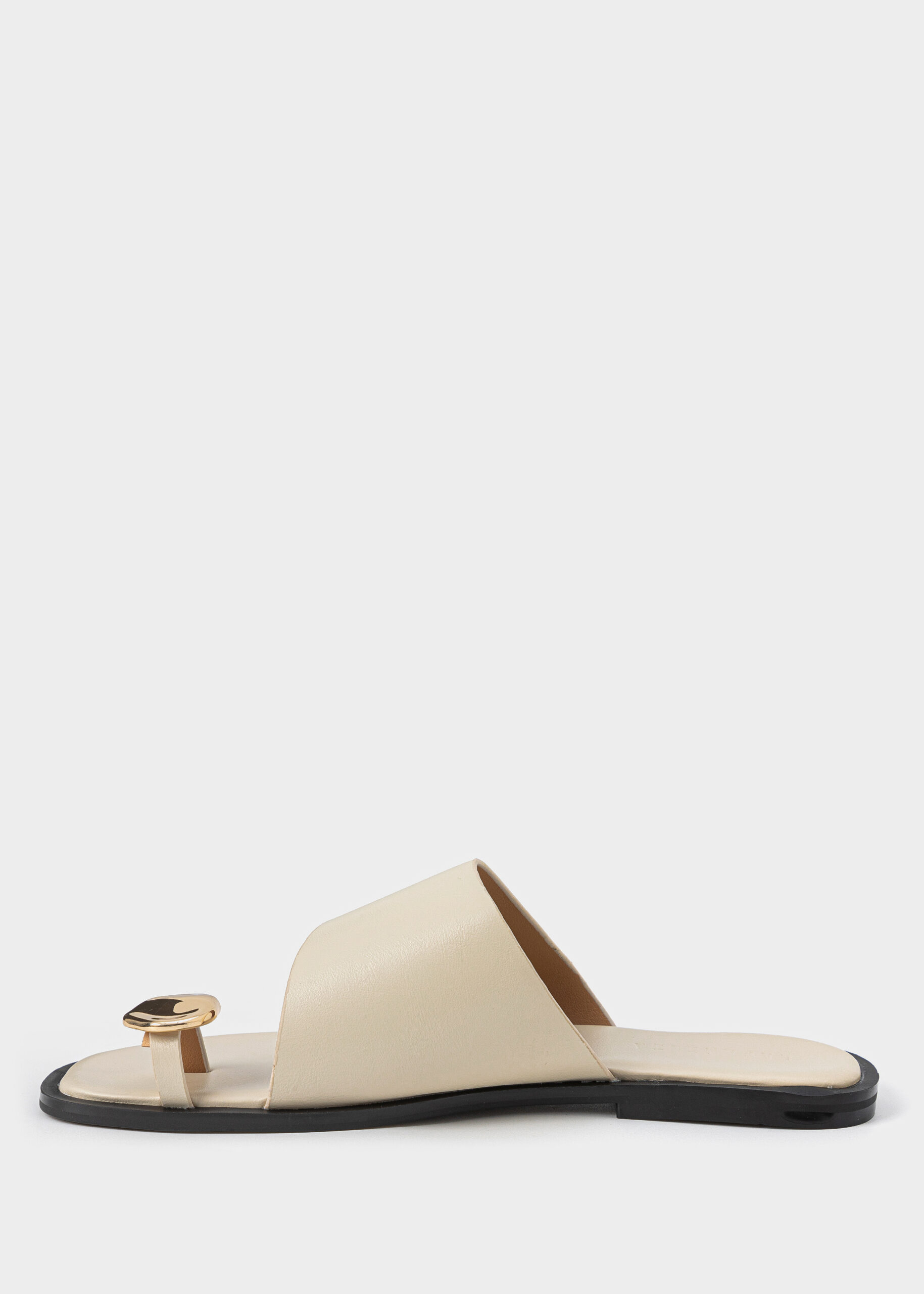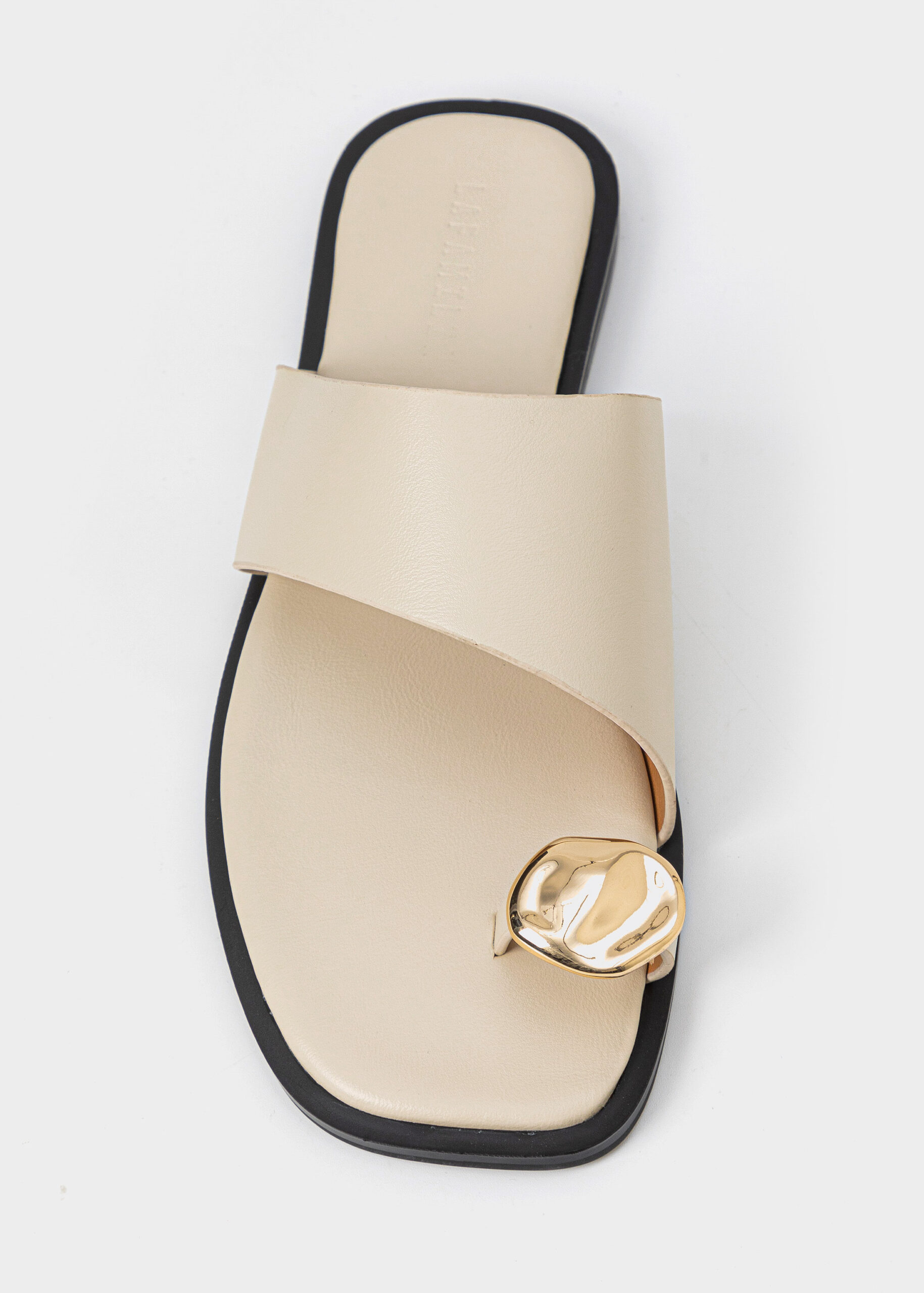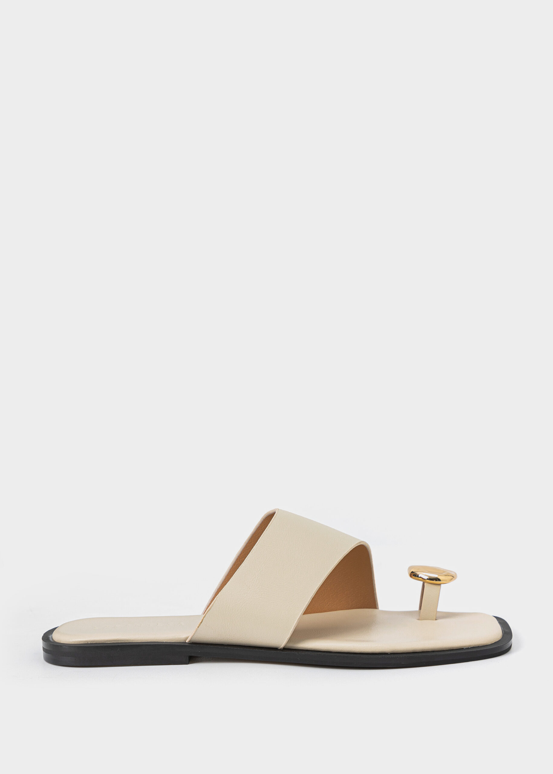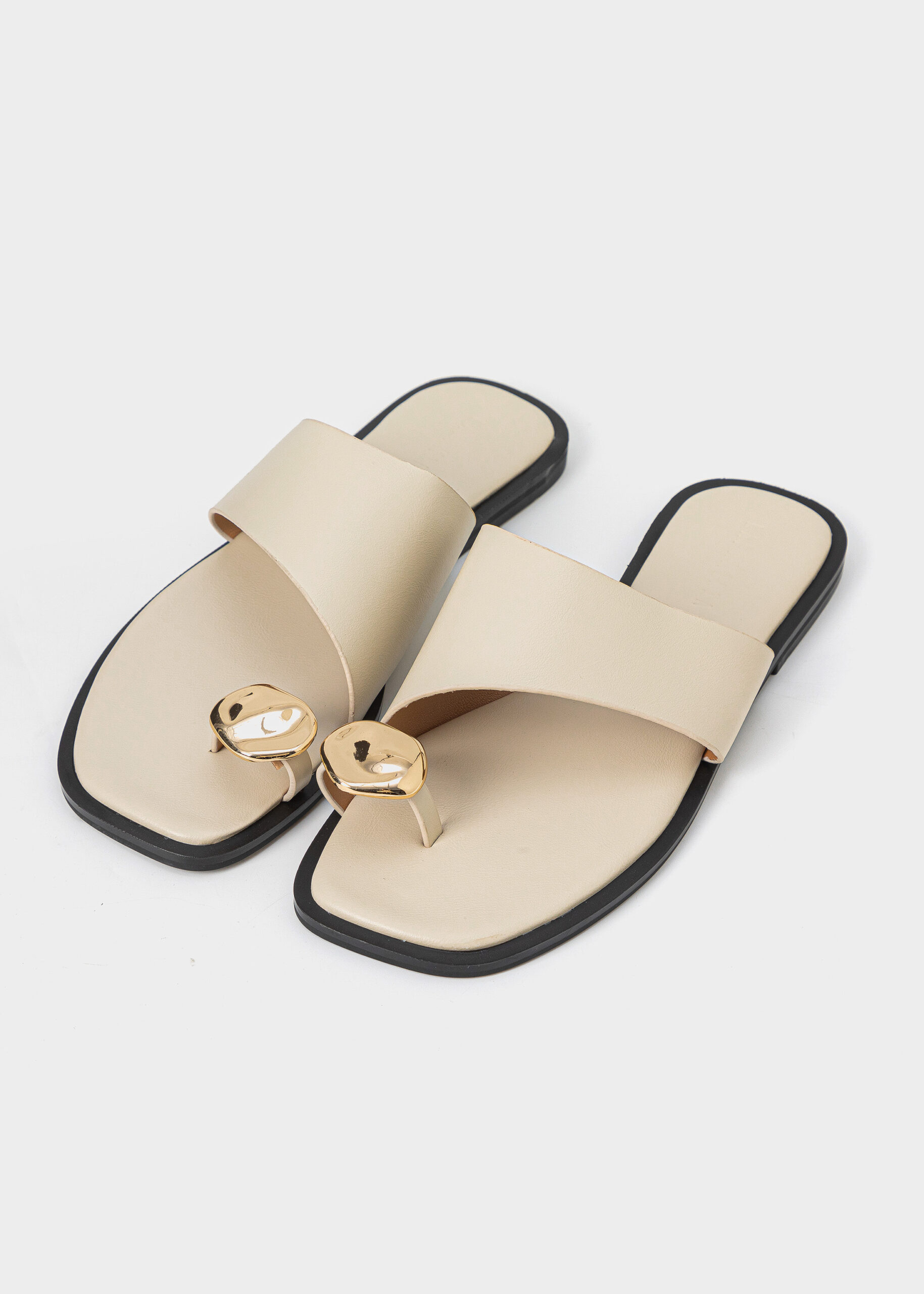 سليبر نسائي, جلد, مسطح, شريط علوي, اصبع مزين بقطعة معدنية, انيق وعصري