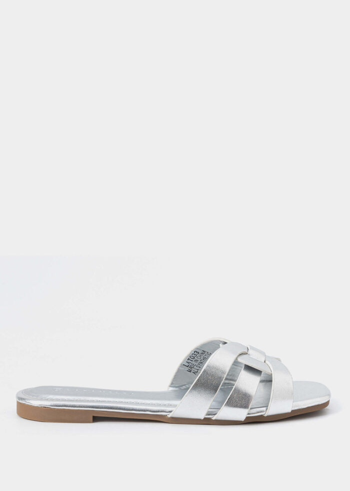 سليبر نسائي, جلد, مسطح, مقدمة مربعة مفتوحة, اشرطة علوية, انيق ومريح