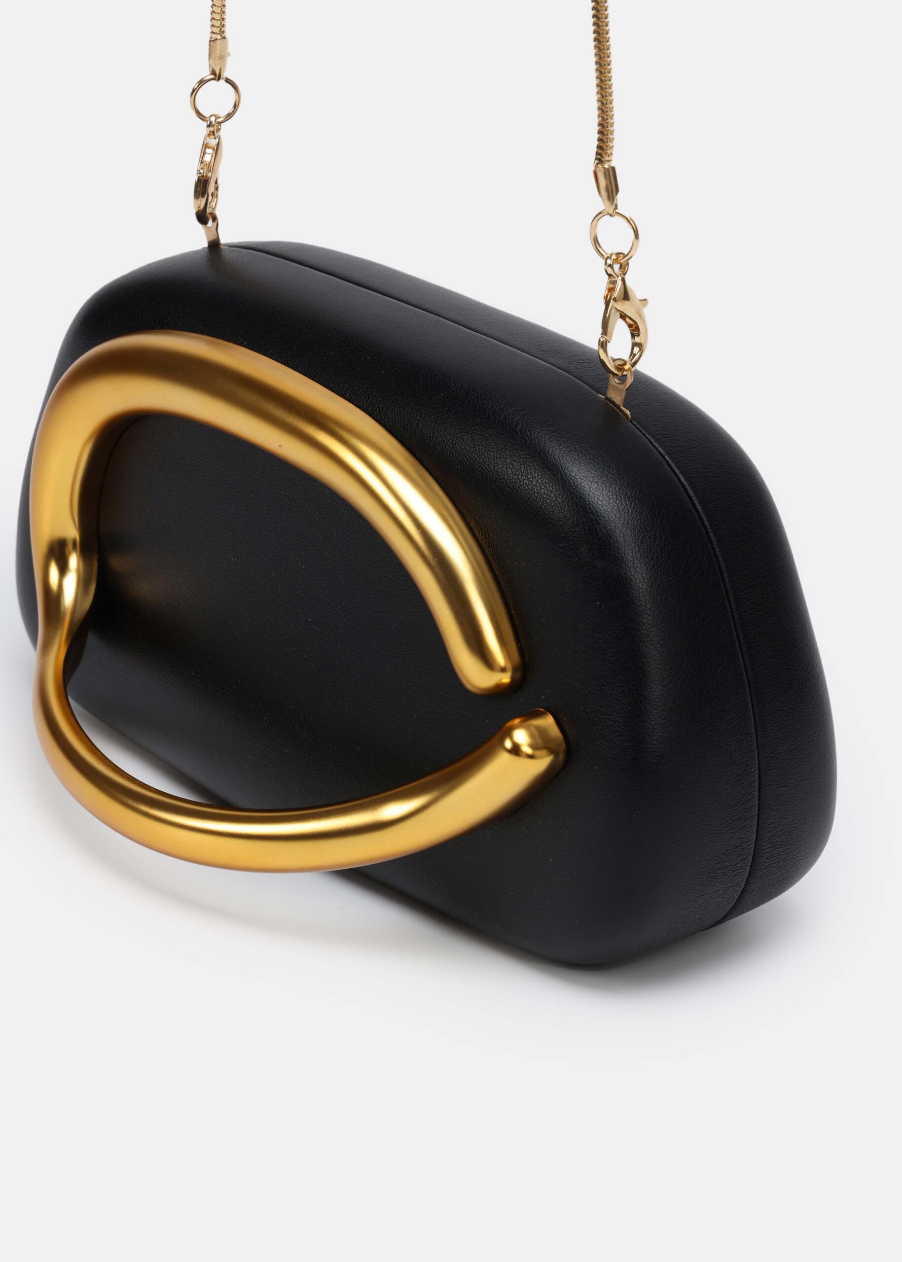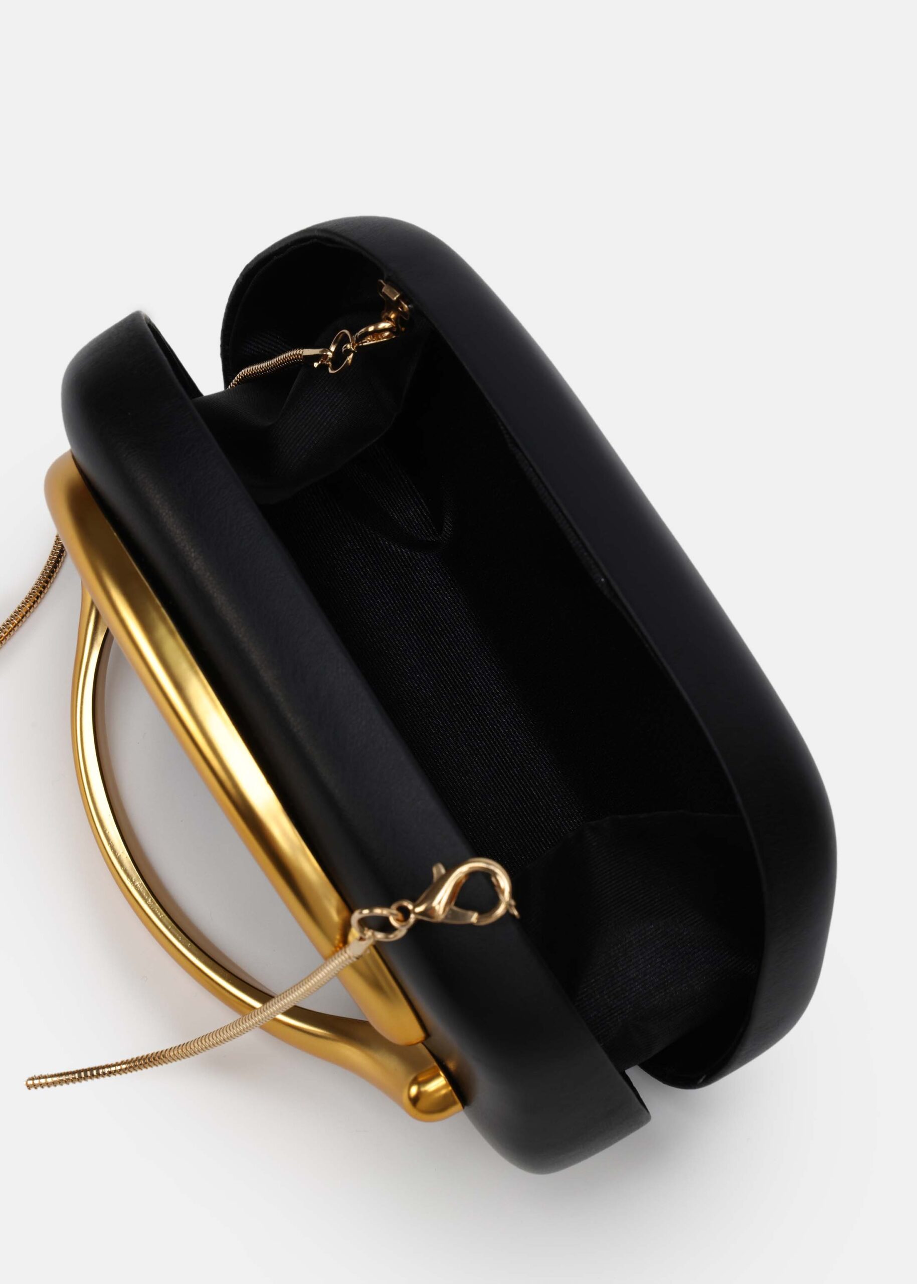 حقيبة نسائي, جلد, صغيرة, مزينة بقطعة معدنية من الامام, سلسلة كتف, انيقة وعصرية