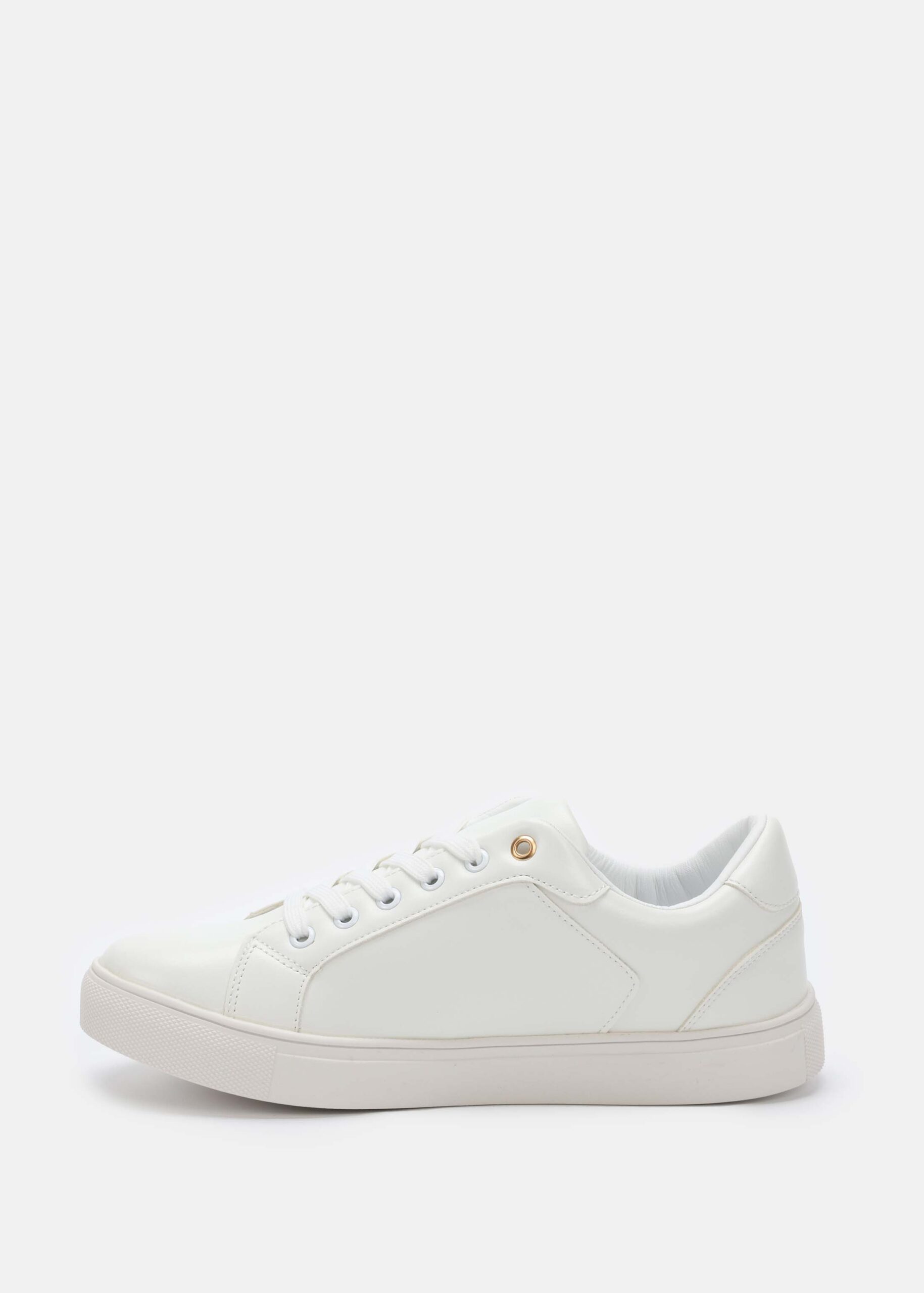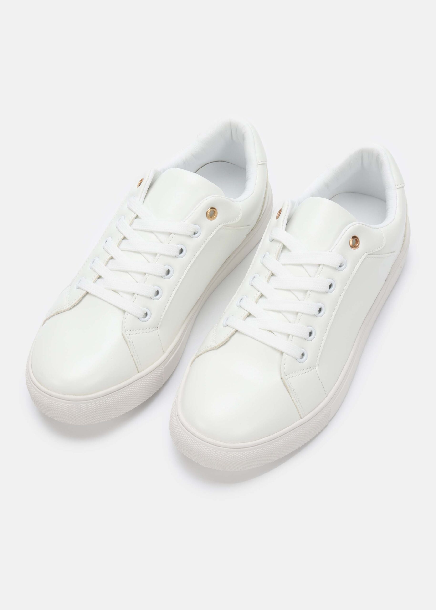 حذاء رياضة نسائي, جلد, مقدمة مدورة, رباط امامي, نعل مطاطي, انيق ومريح