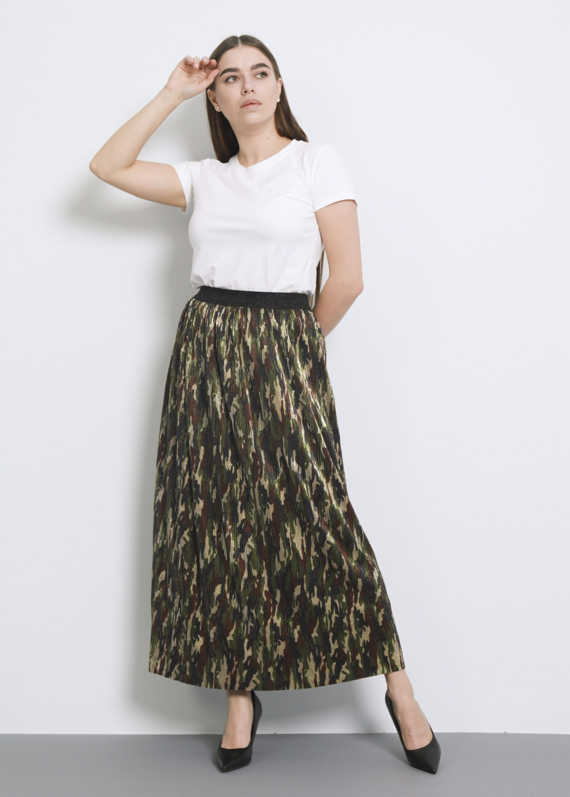 تنورة نسائي, طويل, معرقة بألوان زاهية, كسرات, خصر مطاطي, نسيج لامع, أنيقة ومميزة, 100% بوليستر