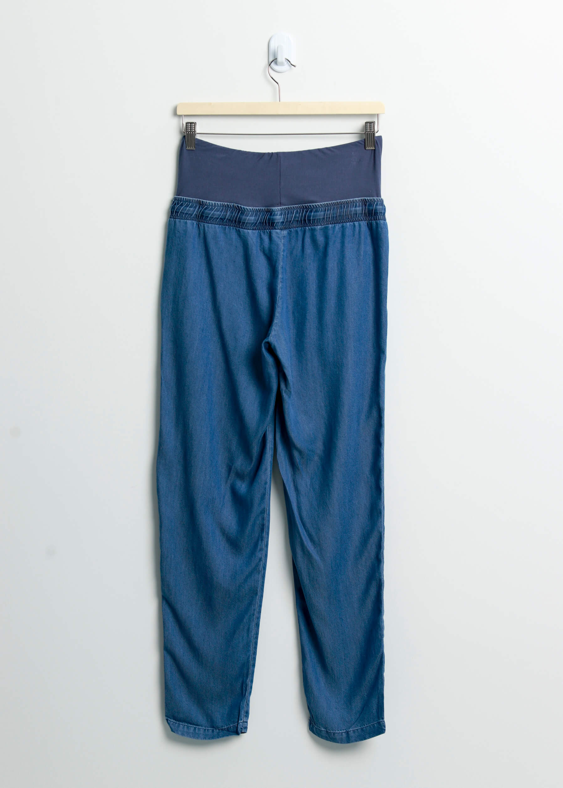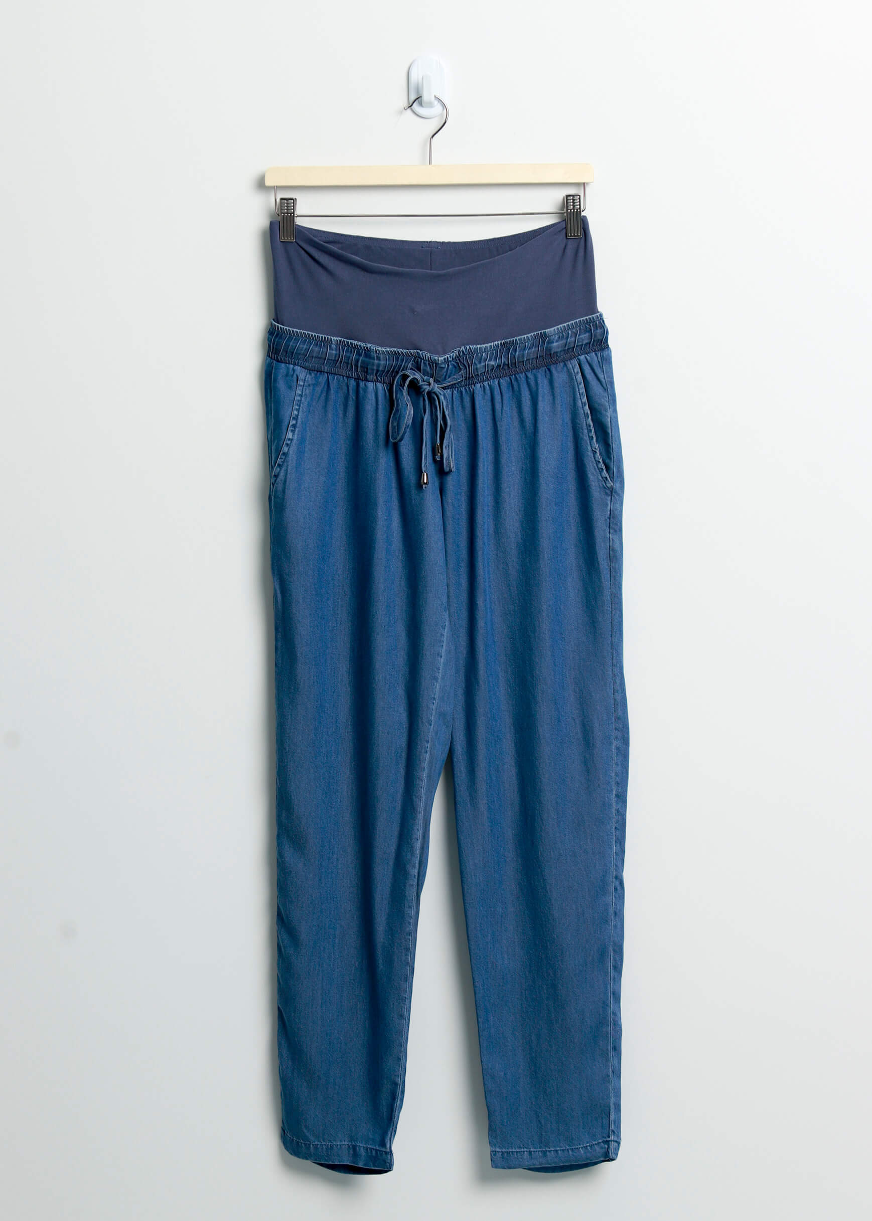 بنطلون ستاتي, جينز, للحمل, خصر مطاطي مع حبل للربط بالاضافة الى قطعة مطاطية عريضة من الاعلى, جيوب امامية, مريح وعملي