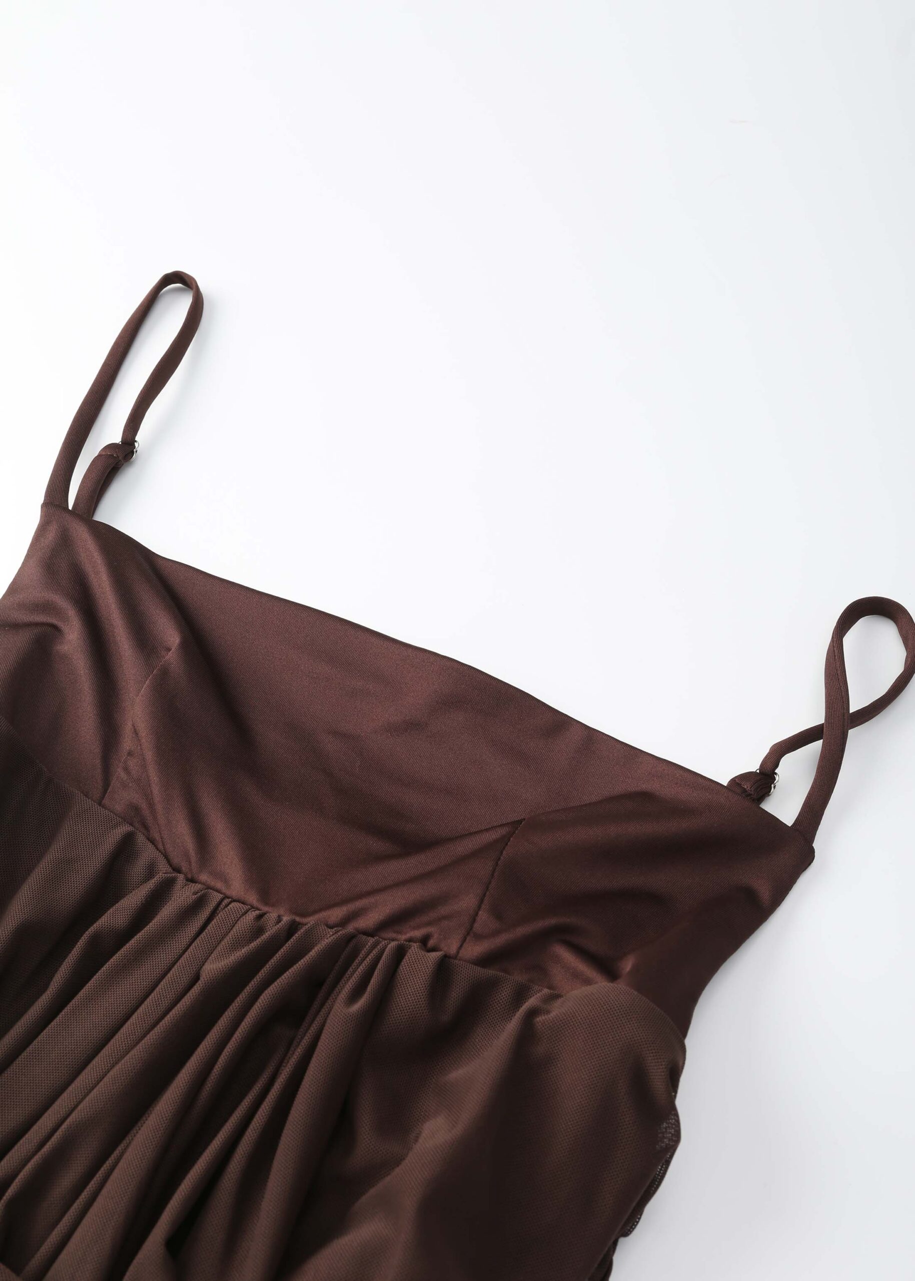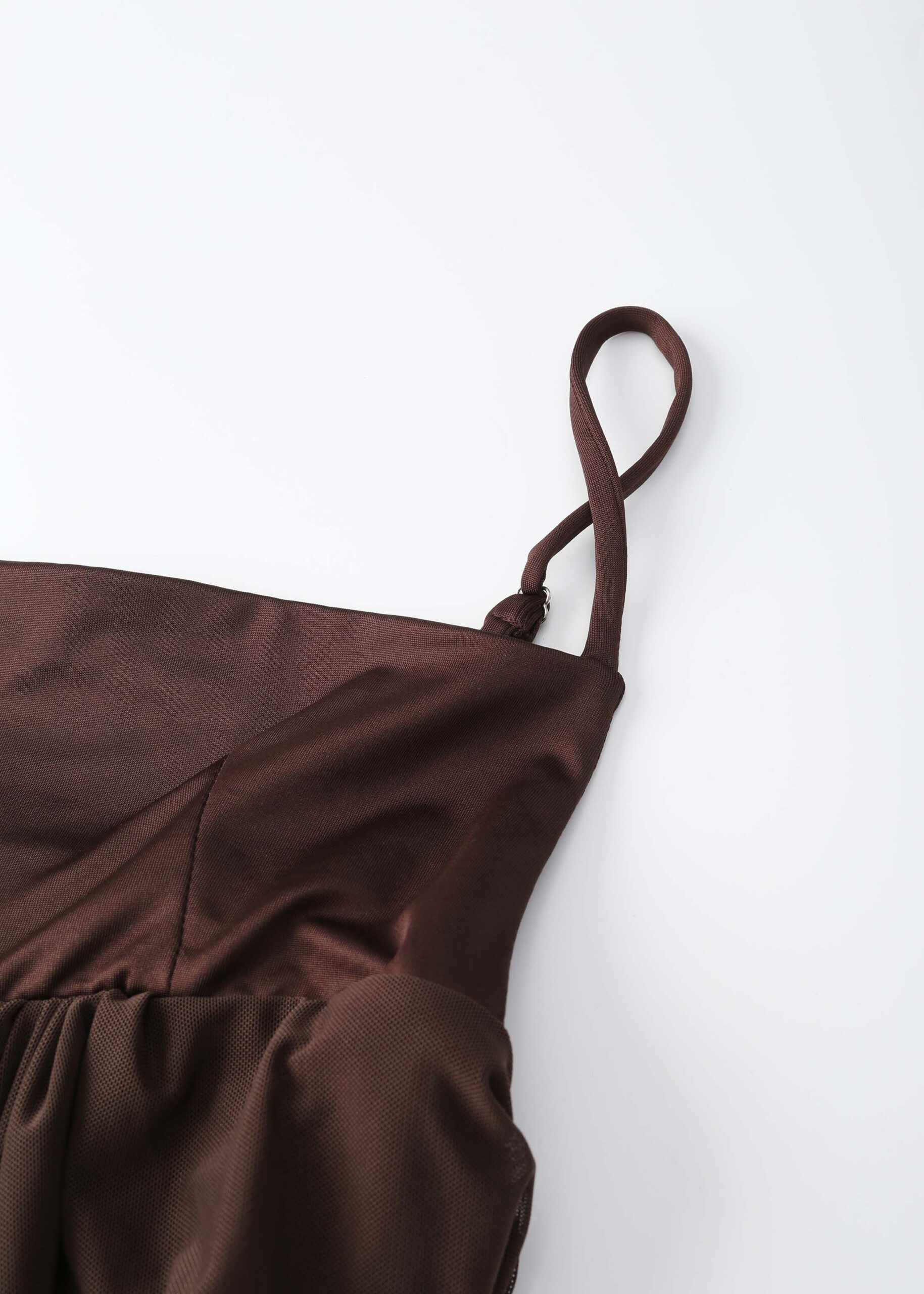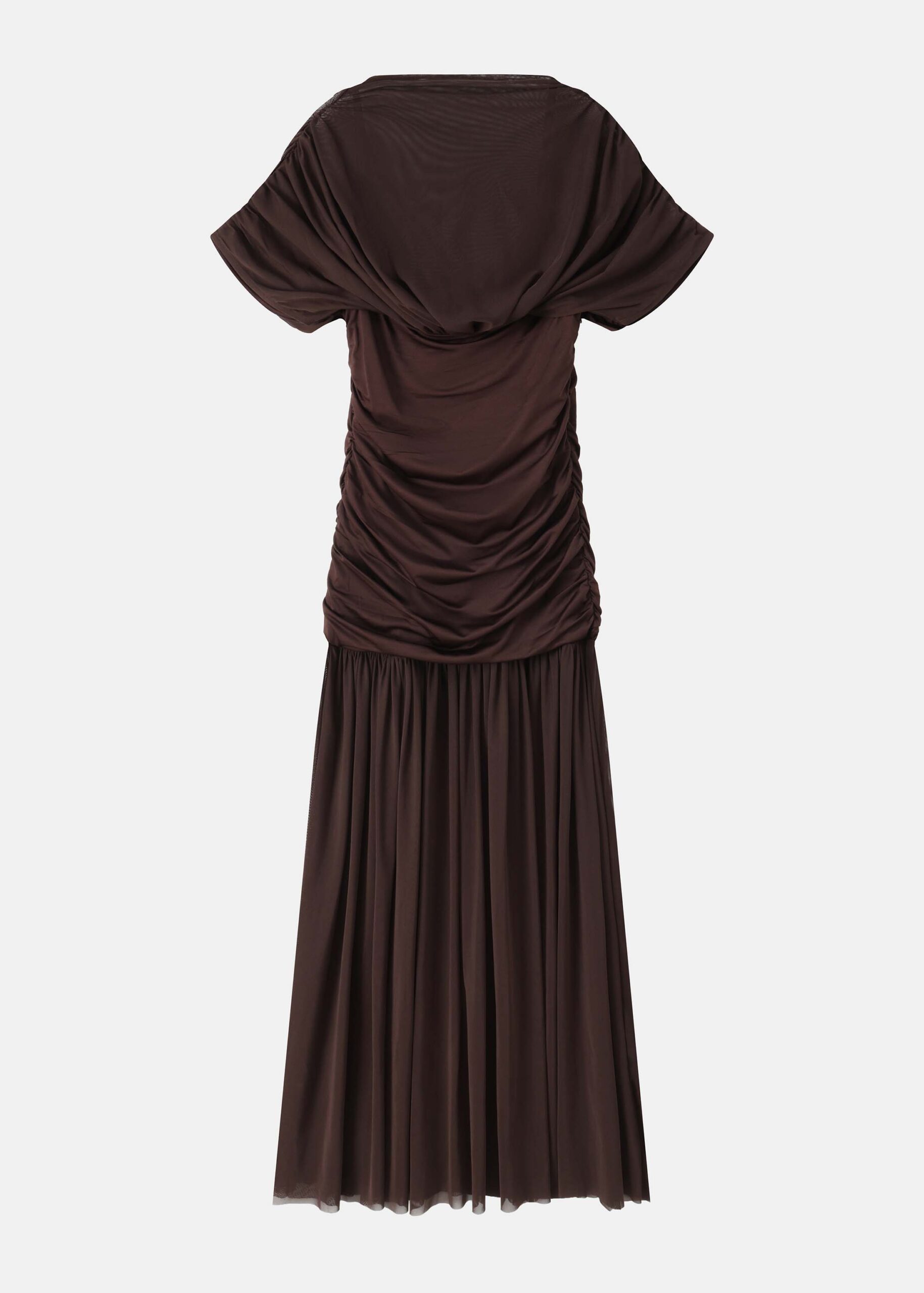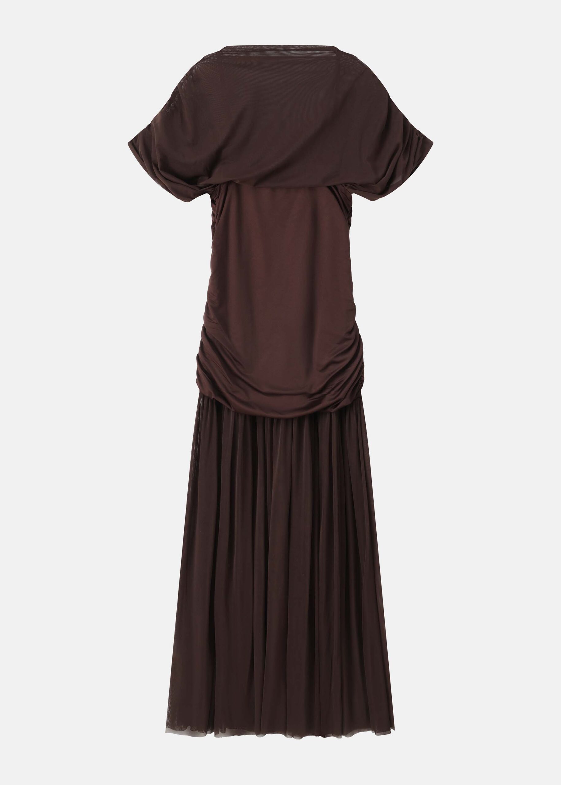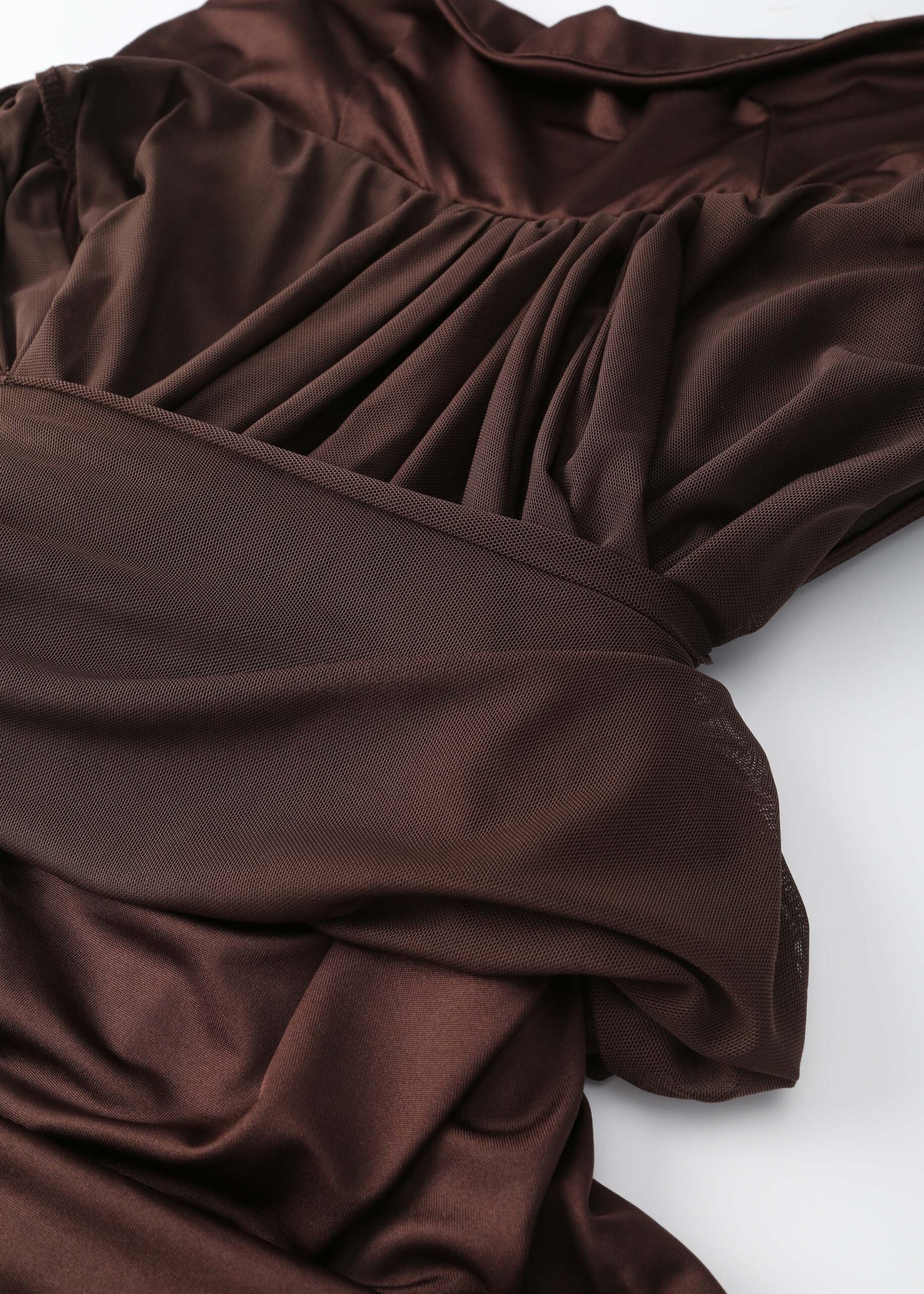 فستان نسائي, طويل, نسيجين مختلفين, سادة, ياقة واسعة, اكمام قصيرة, خصر كسرات, انيق وعملي