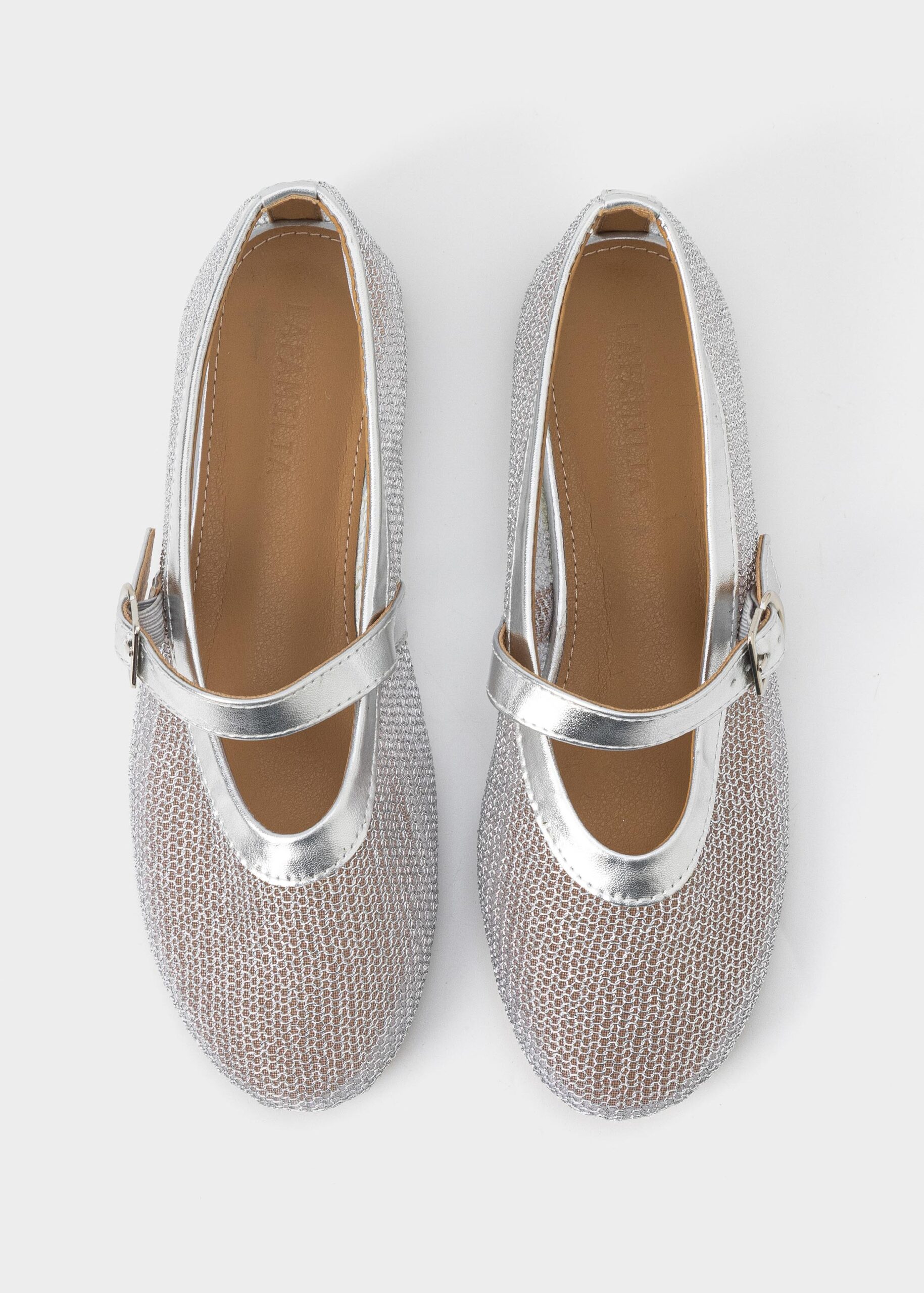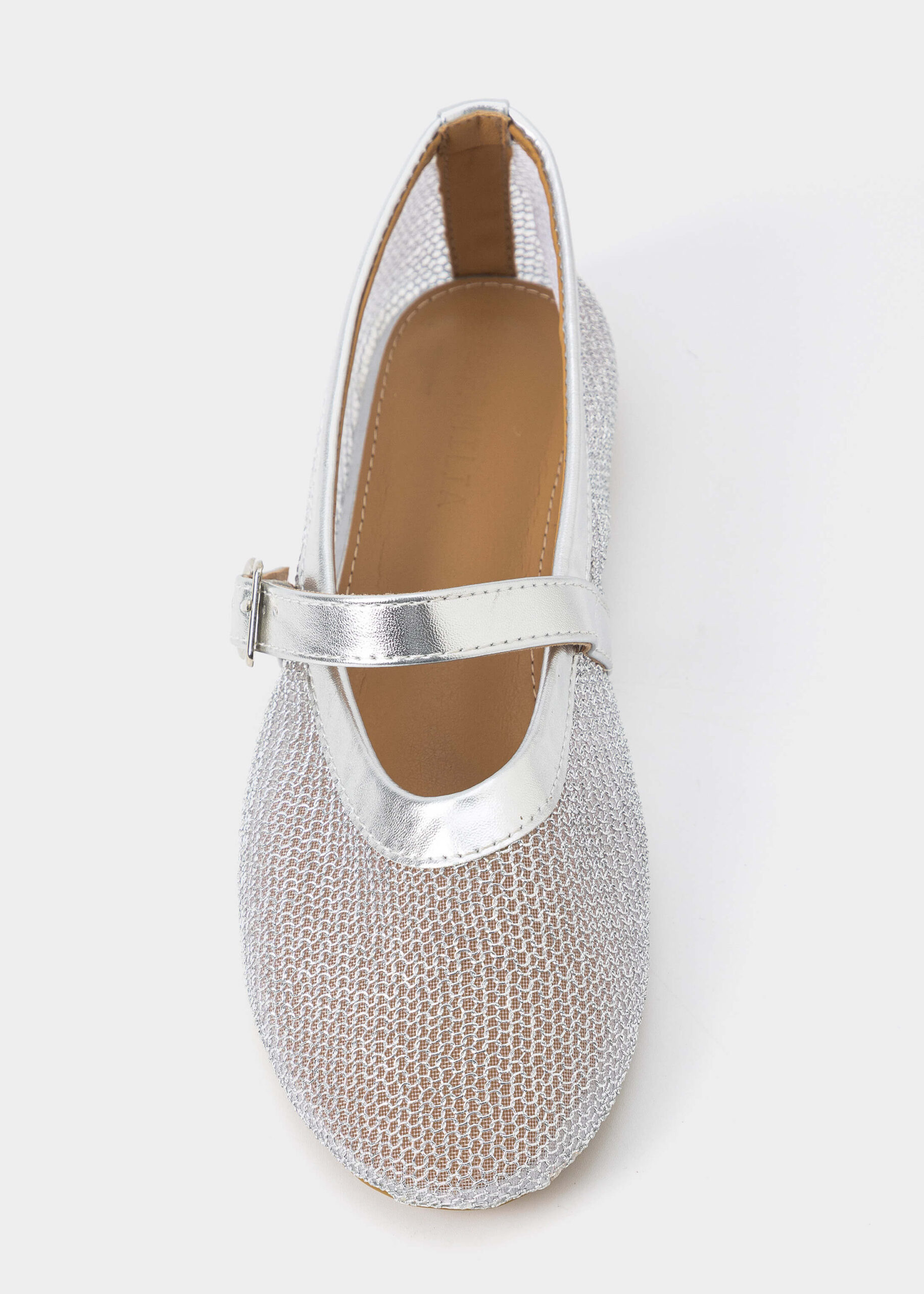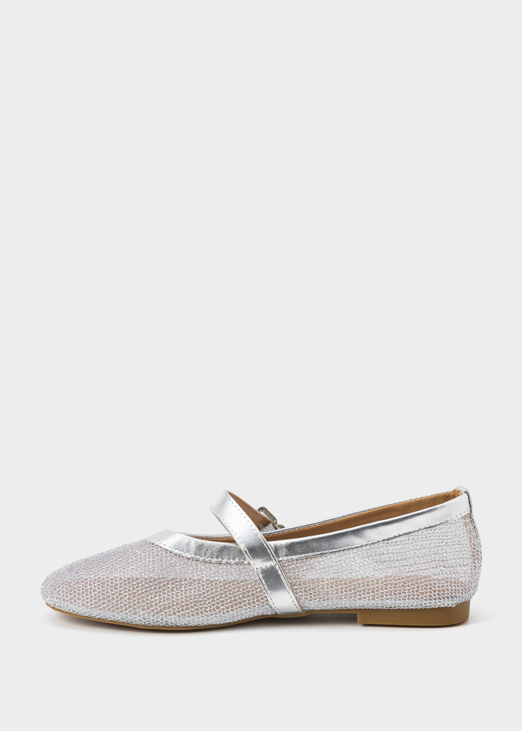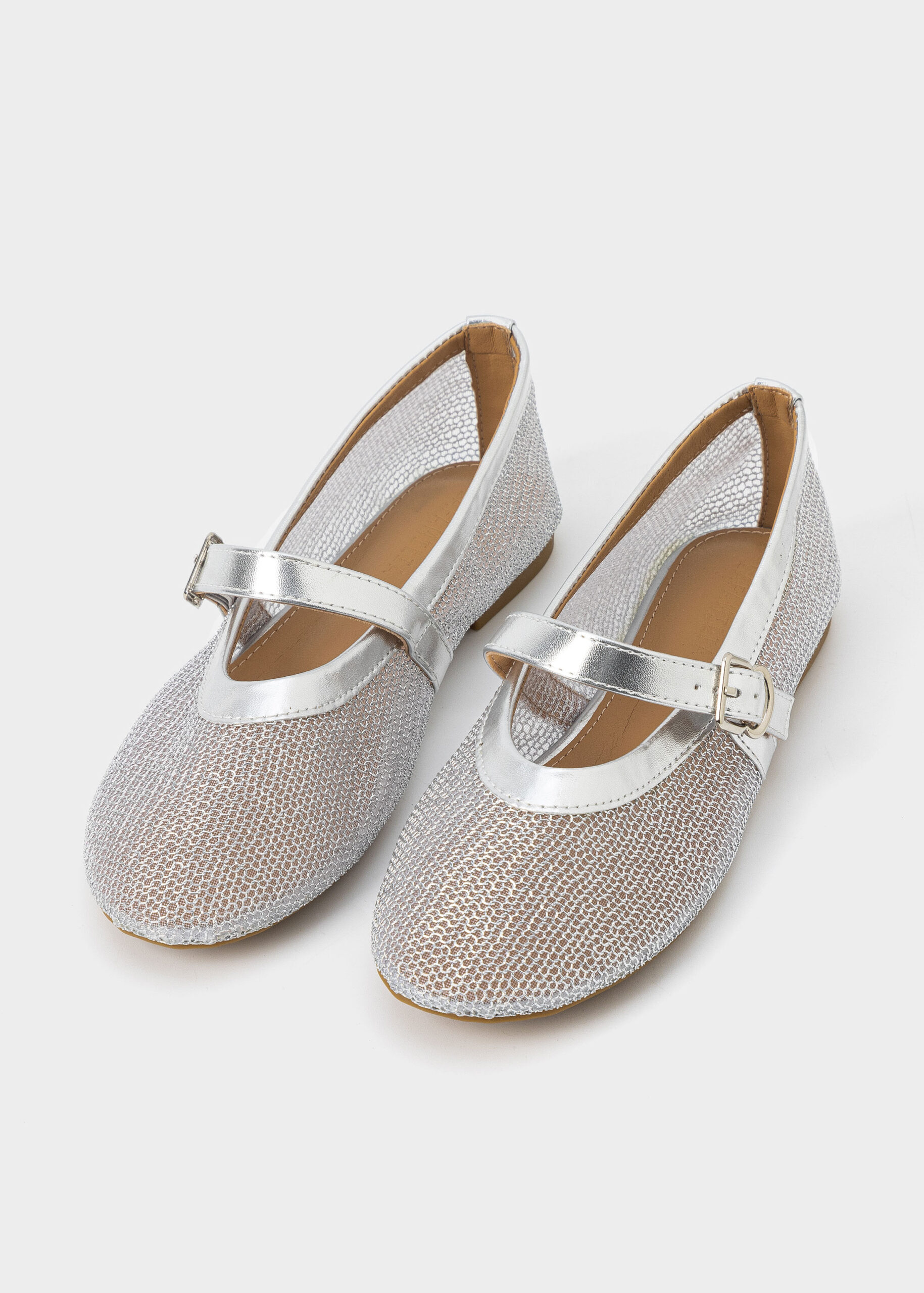 حذاء نسائي, باليرينا, نسيج شبكي, مقدمة مدورة, مزين بحزام من الاعلى مع مشبك معدني من الجانب للاغلاق, انيق وعصري