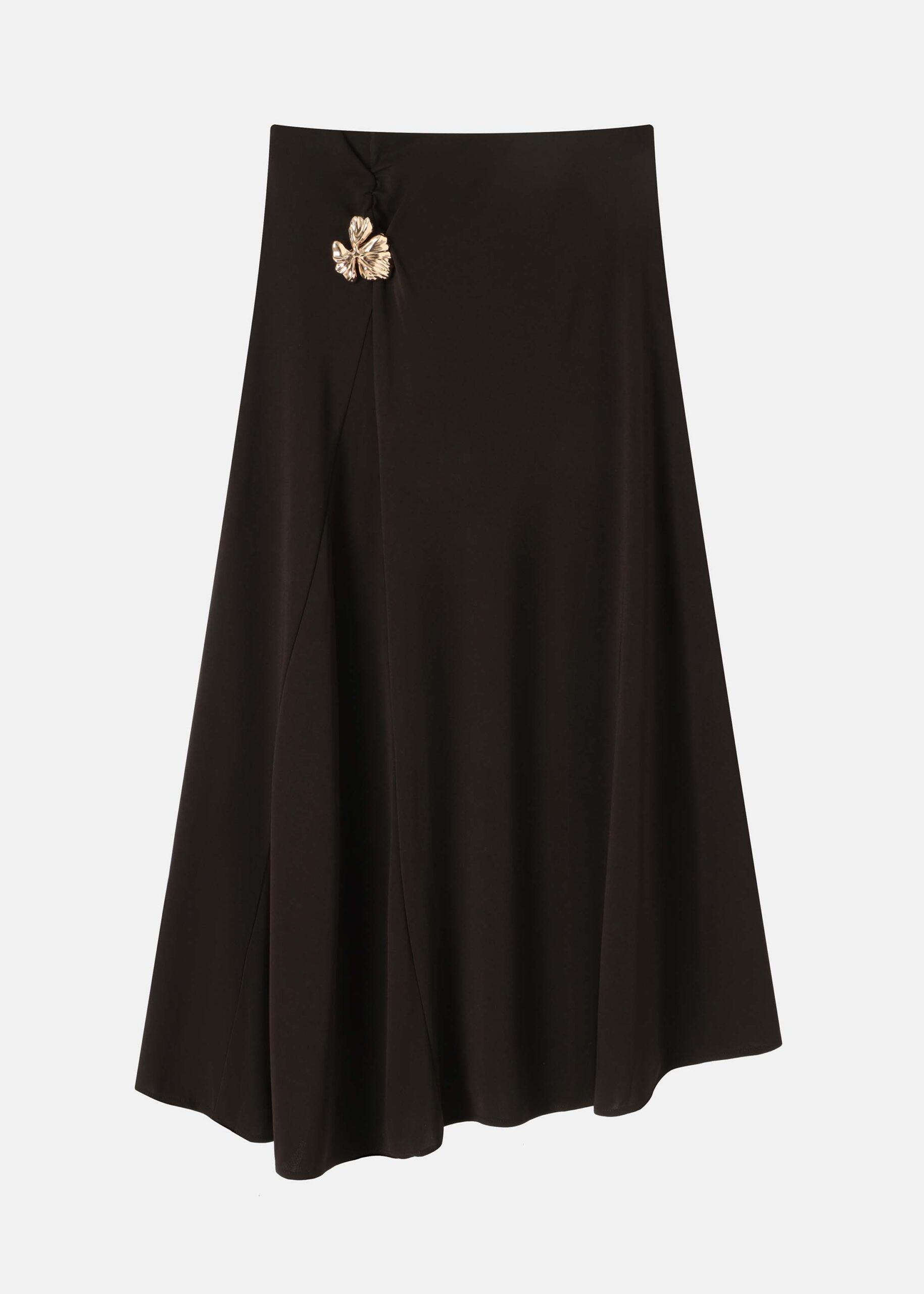 تنورة نسائي, ميدي, خصر عالي مطاطي, مزين بقطعة معدنية من جانب الخصر, انيقة وعملية