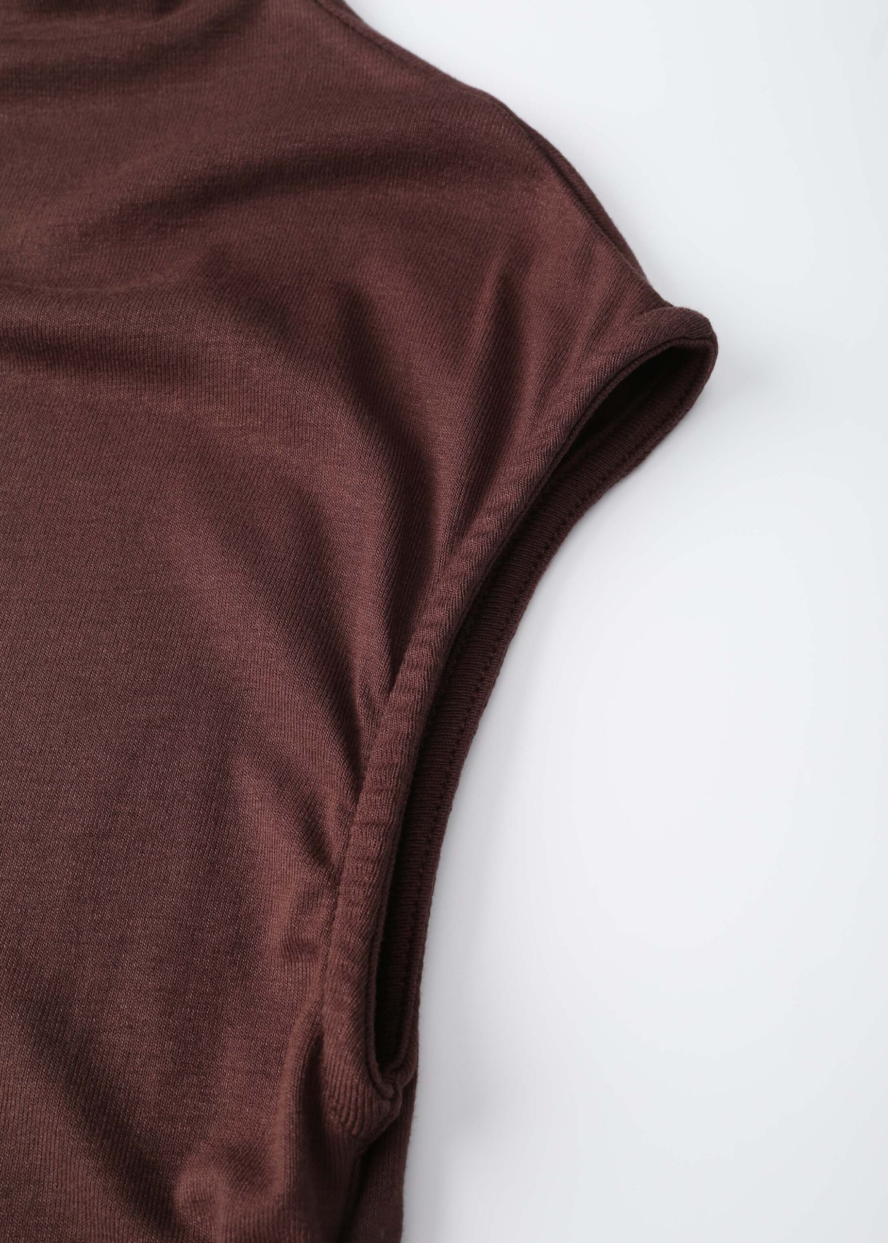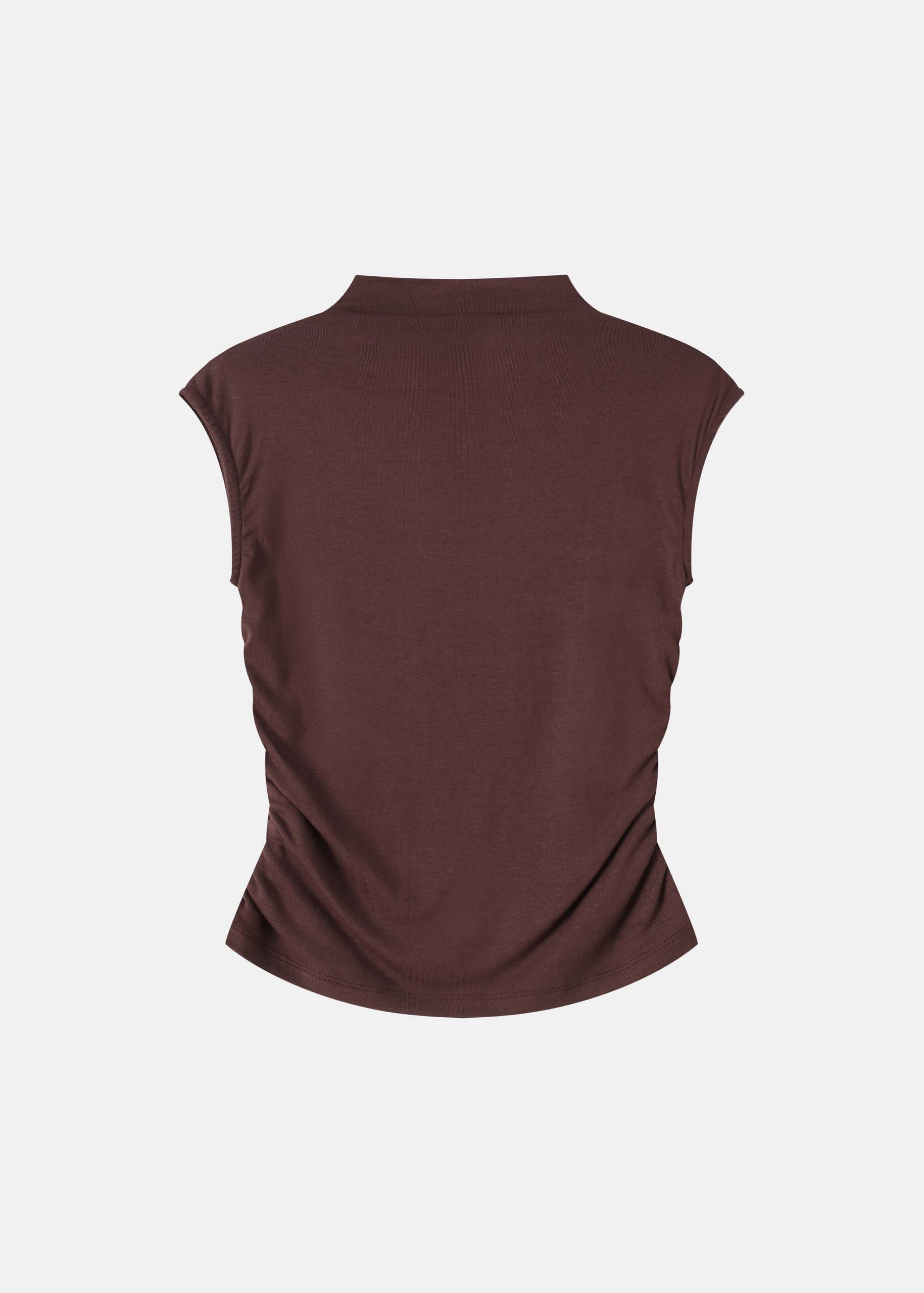 Women top, mock-neck, sleeveless, side pleats, unique and modern