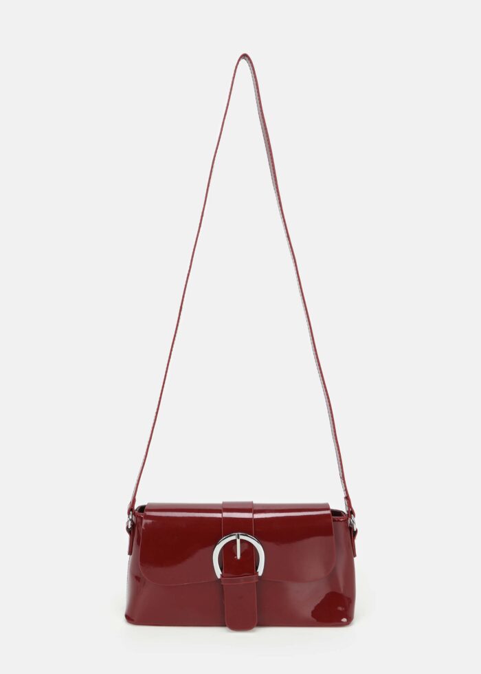 حقيبة نسائي, جلد لامع, غطاء امامي مع زر مغناطيسي للاغلاق, حزام يد, حزام كتف, سحاب من الاعلى للاغلاق, انيقة وعصرية