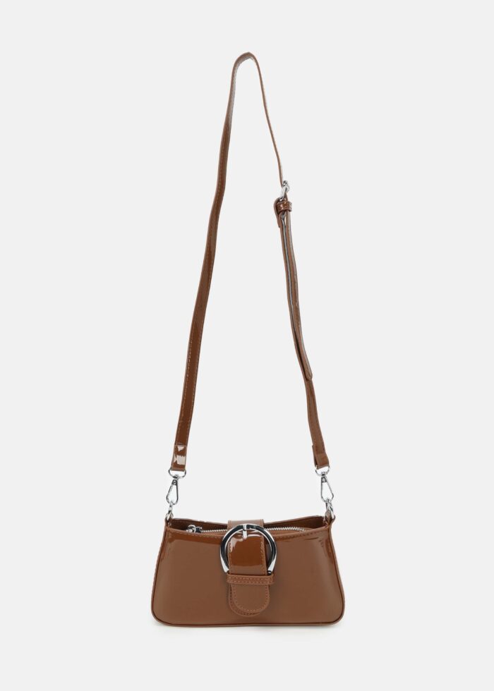 حقيبة نسائي, جلد لامع, غطاء امامي مع زر مغناطيسي للاغلاق, حزام كتف قابل للتعديل والازالة, حزام يد قابل للازالة, سحاب من الاعلى للاغلاق, انيقة وعصرية