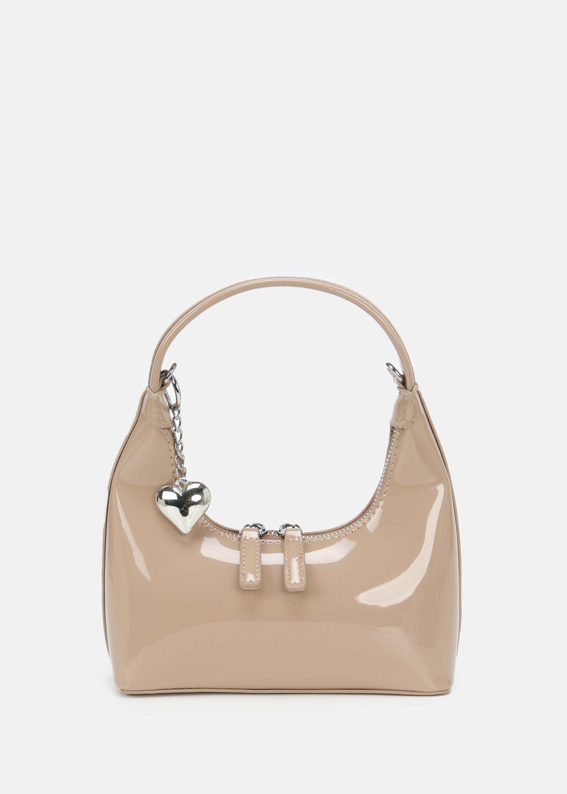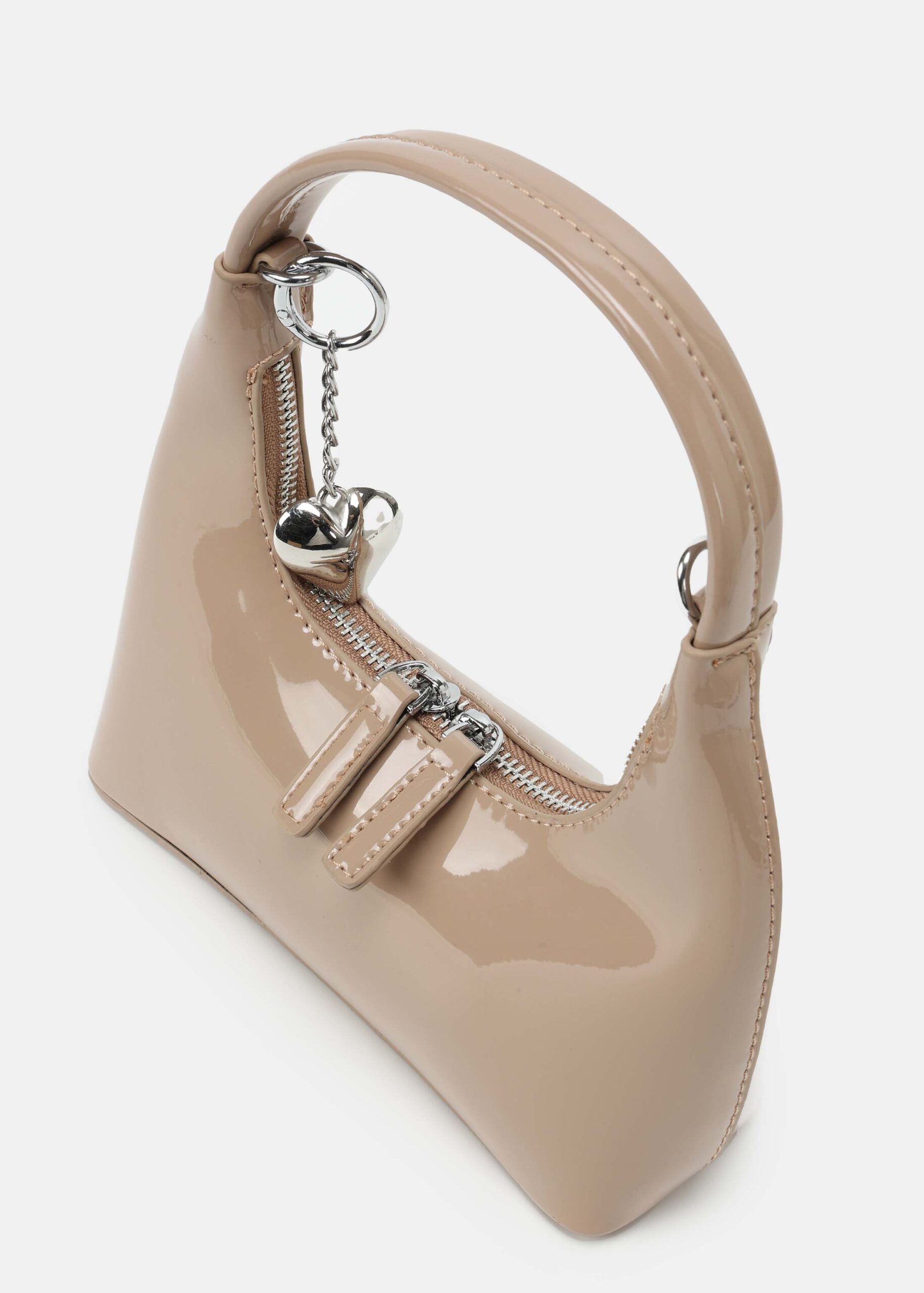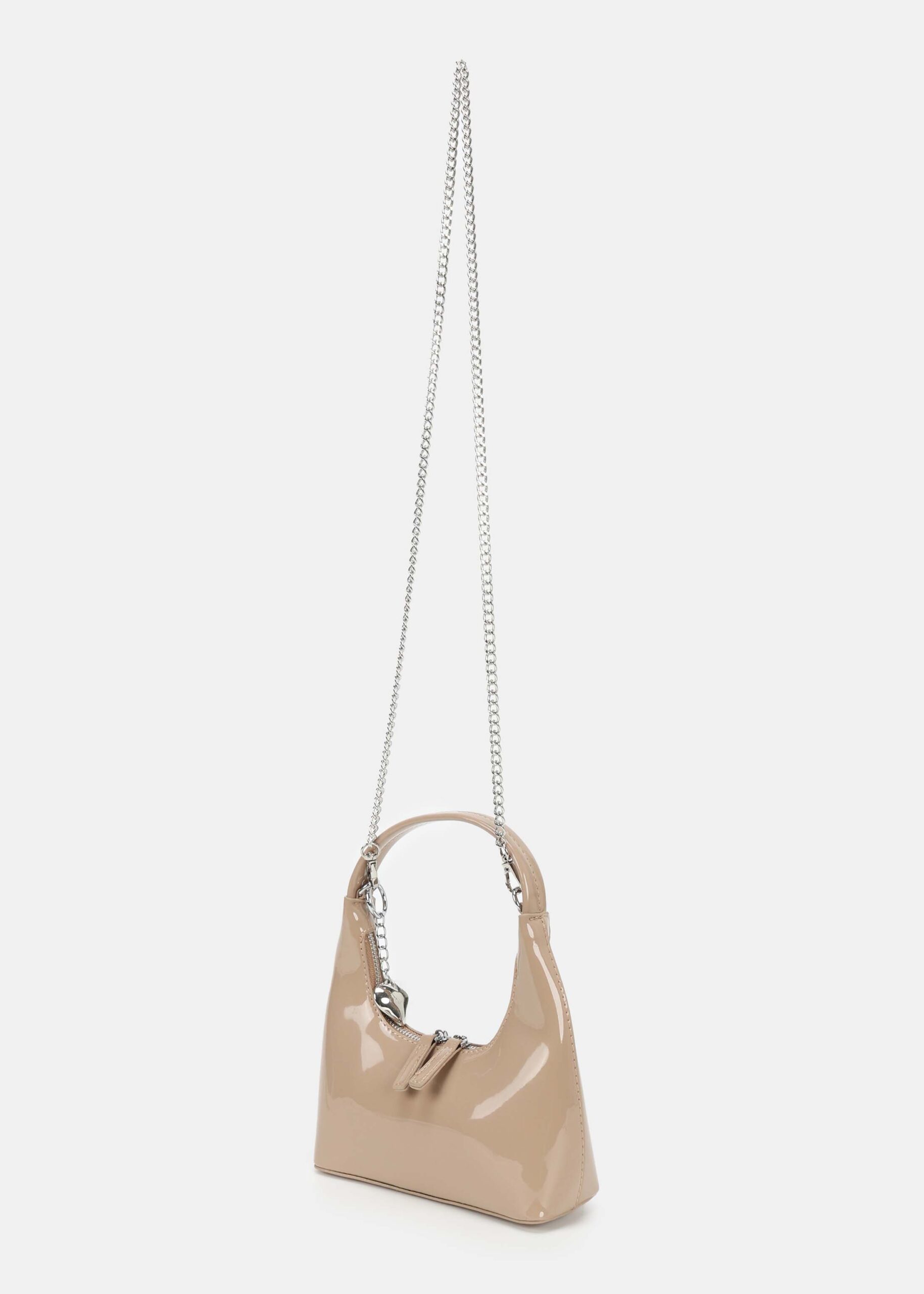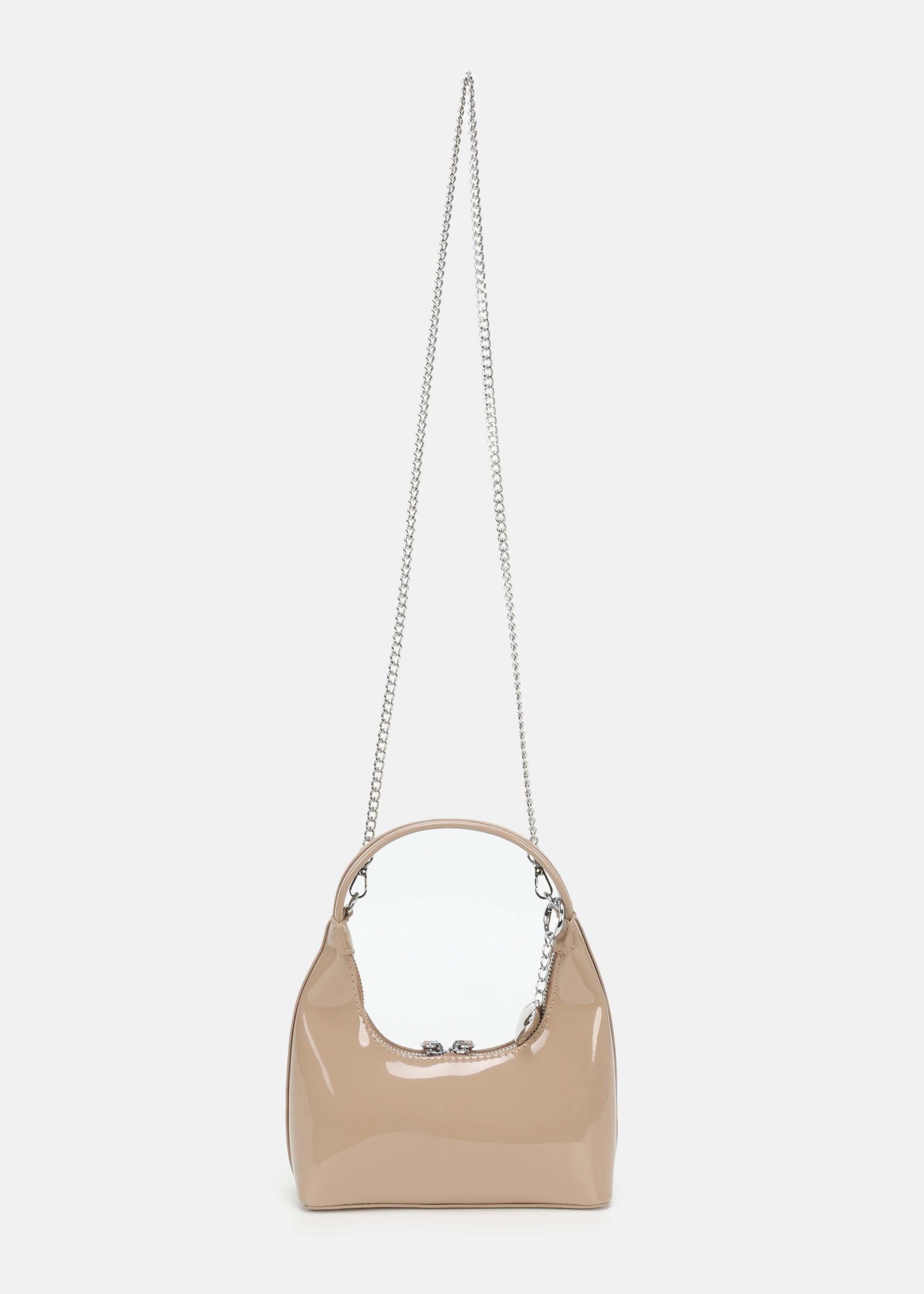 حقيبة نسائي, جلد لامع, سحاب من الاعلى للاغلاق, حزام يد, حزام كتف بسلسلة معدنية,انيقة وعصرية
