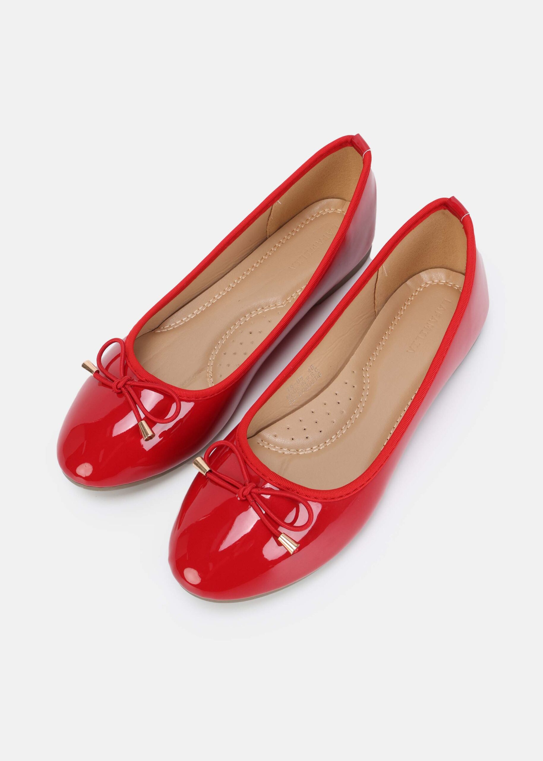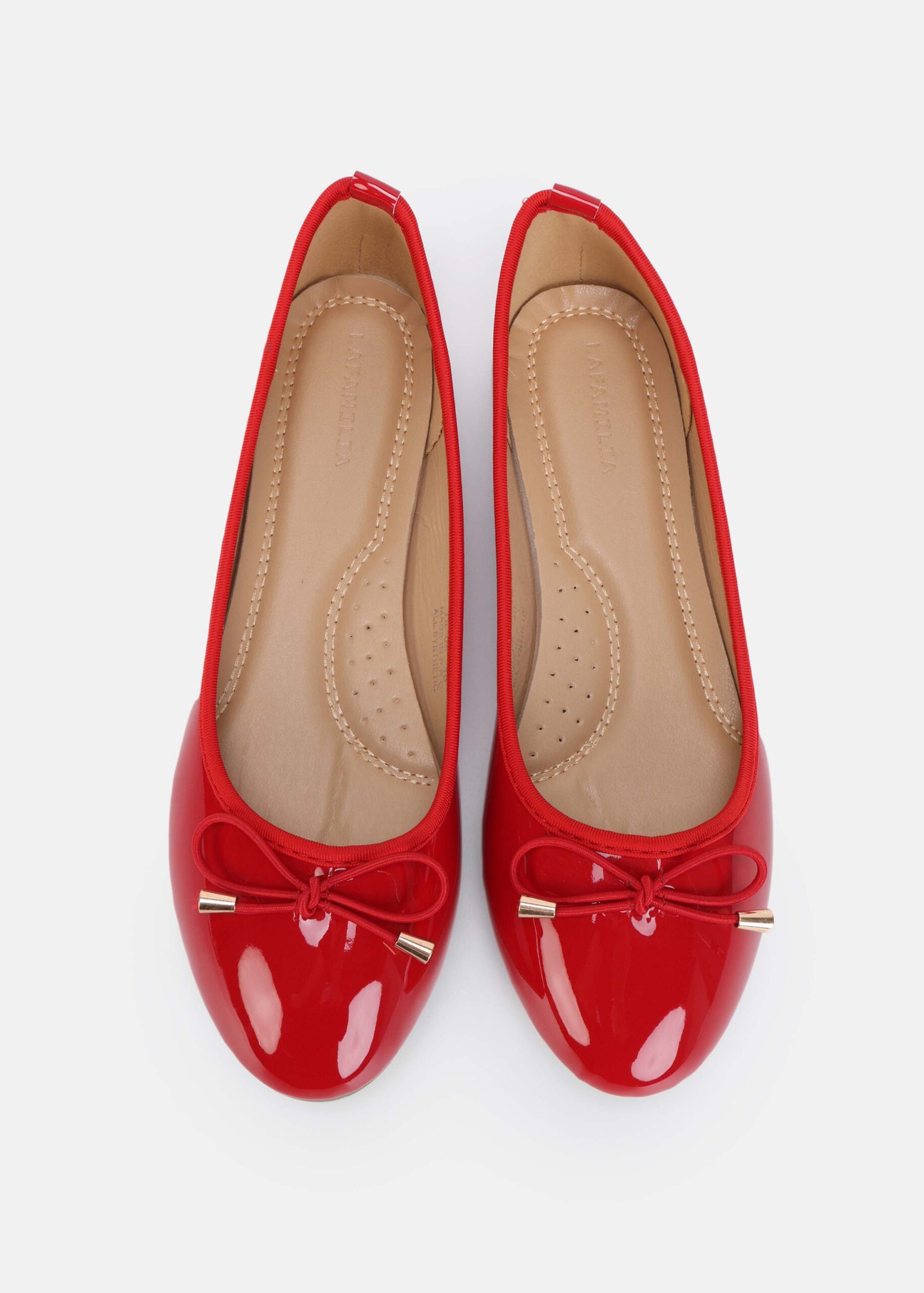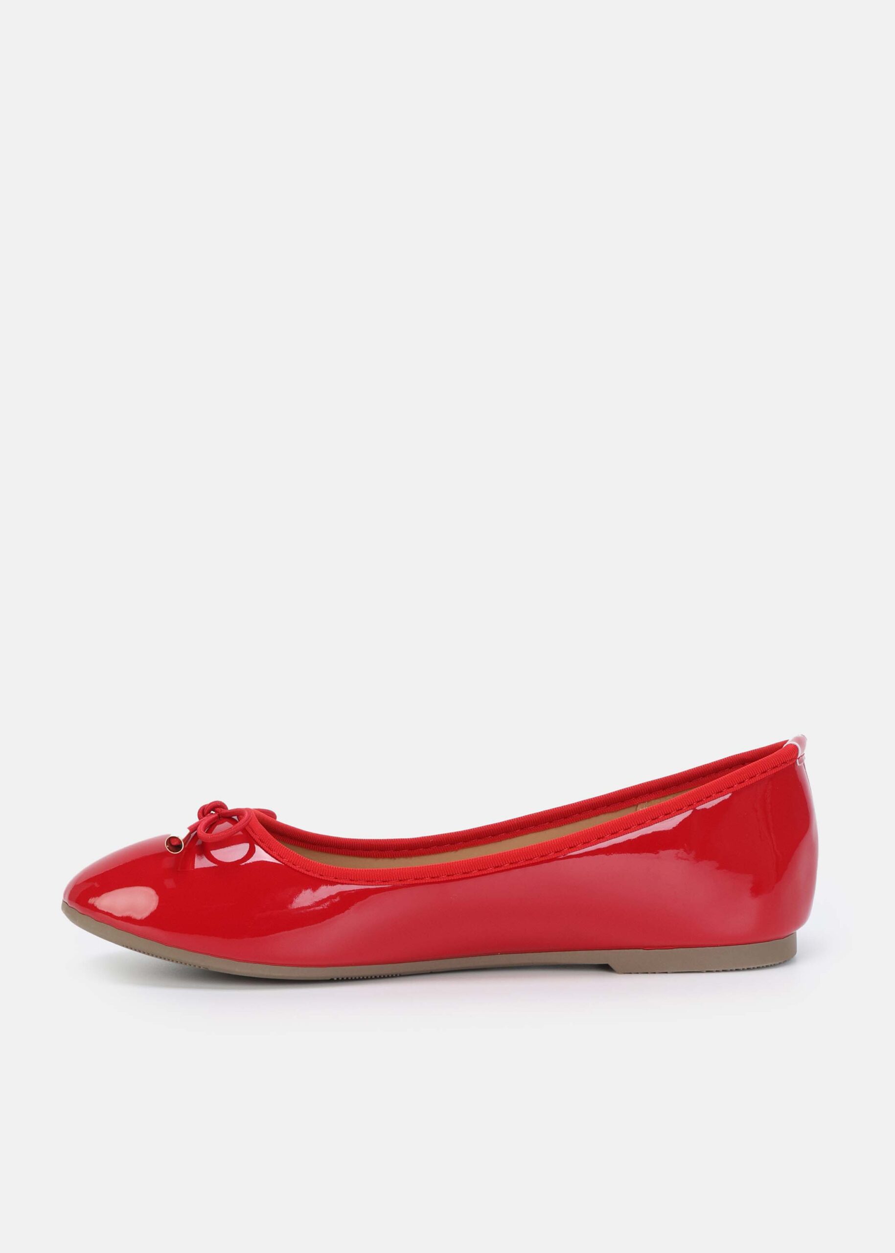 Women ballerina, patent-leather, round toe, flat sole, upper bow decor, unique and modern