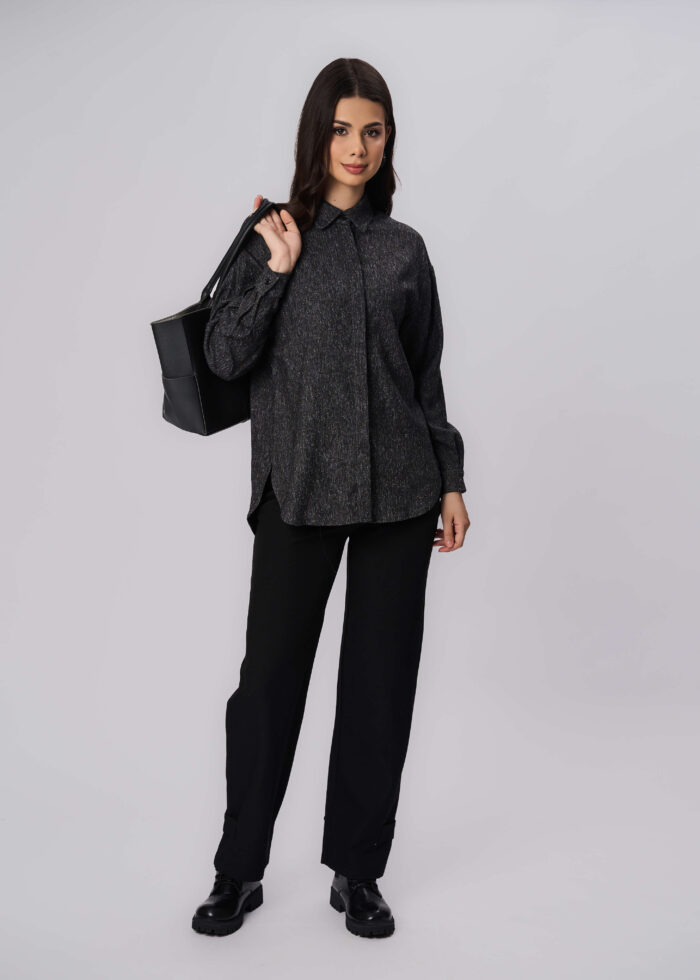 قميص نسائي, بنقش, ياقة مثنية مع زر من الامام, اكمام طويلة, معصم ضيق, ازرار من الامام للاغلاق, انيق وعملي