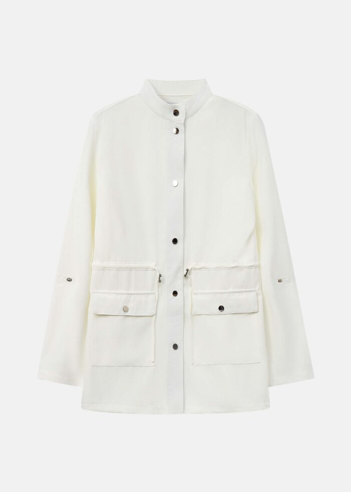 جاكيت نسائي, سادة, ياقة مرتفعة, ازرار من الامام للاغلاق, اكمام طويلة, جيوب من الامام, خصر مطاطي مع حبل قابل للتعديل, انيق وعصري