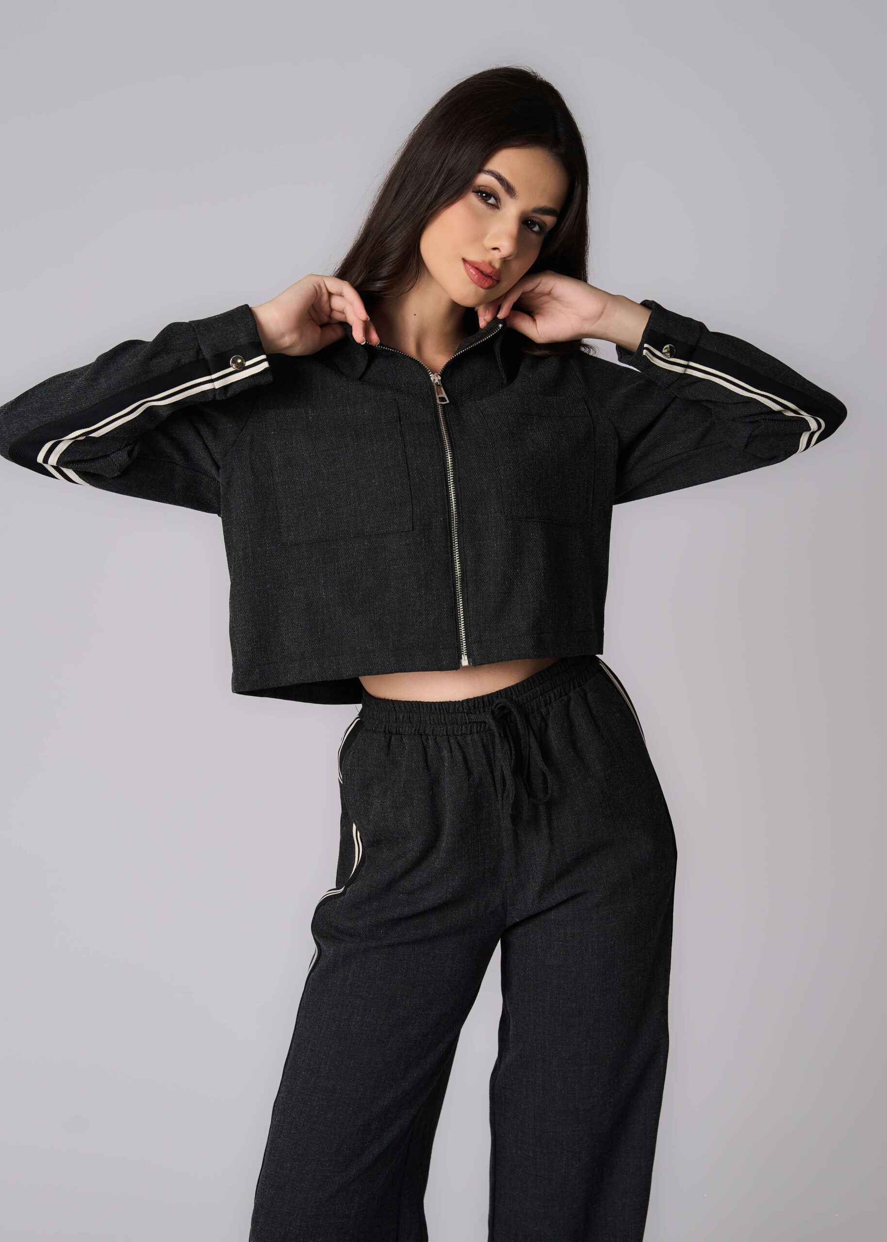 جاكيت نسائي, سادة, ياقة مثنية, سحاب من الامام للاغلاق, جيوب من الامام, اكمام طويلة, معصم ضيق مع زر, انيق وعصري