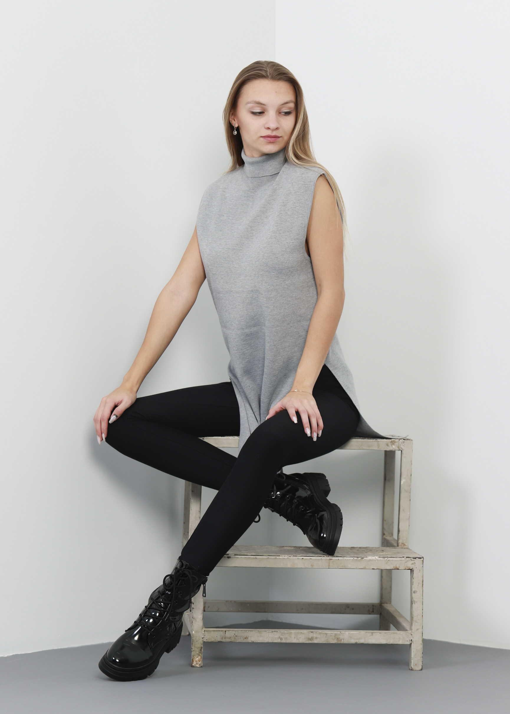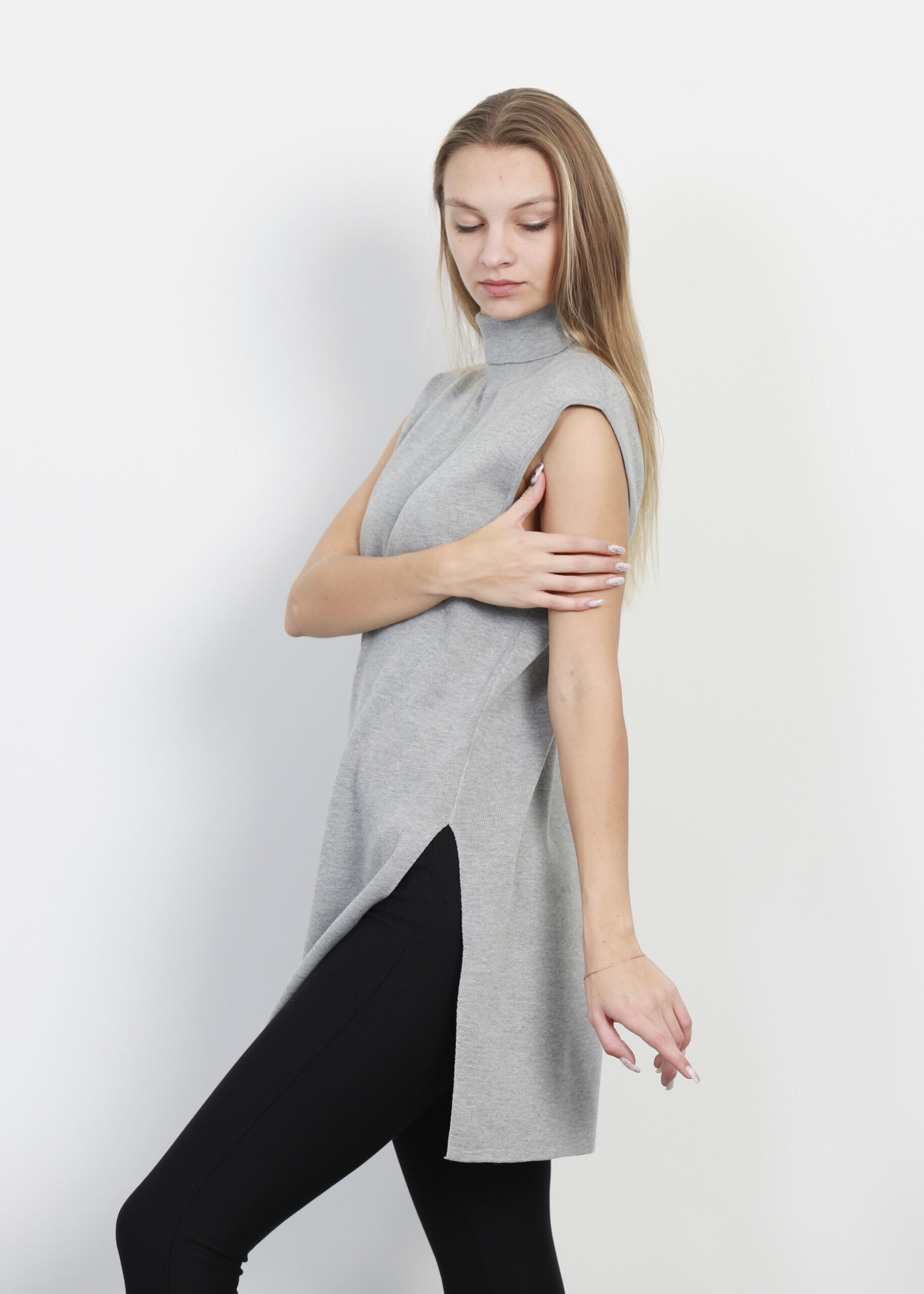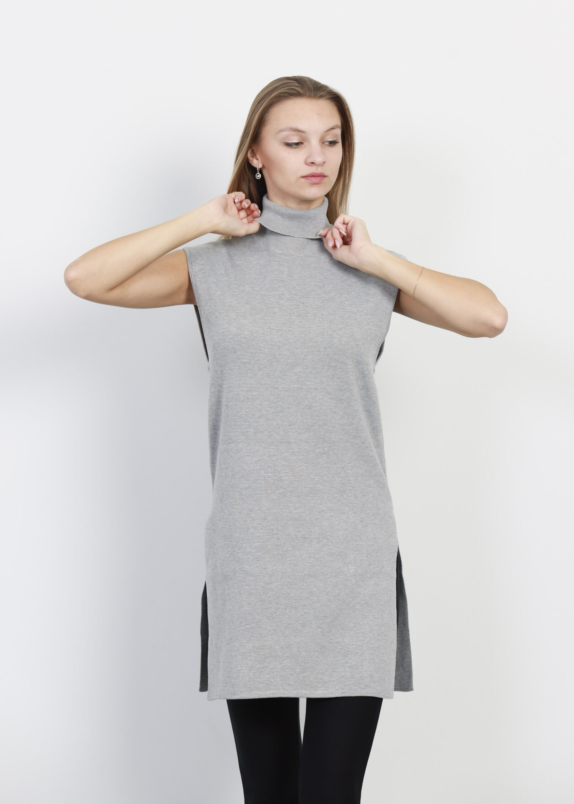 بلوزة نسائي, سادة, تصميم محبوك, طويلة, اكمام طويلة, مفتوحة من الجانبين, ياقة مرتفعة مثنية, انيقة وعصرية, 90% بوليستر 10% بولي اميد