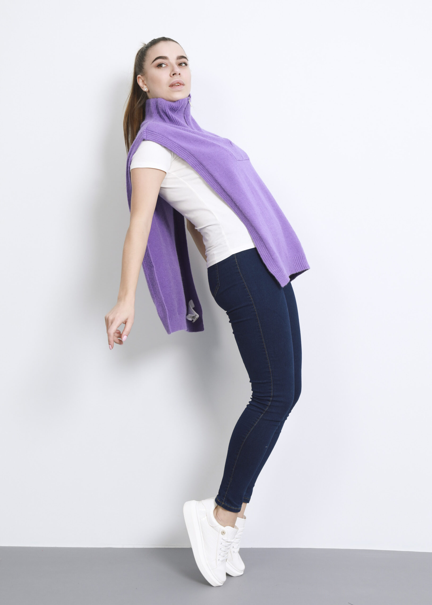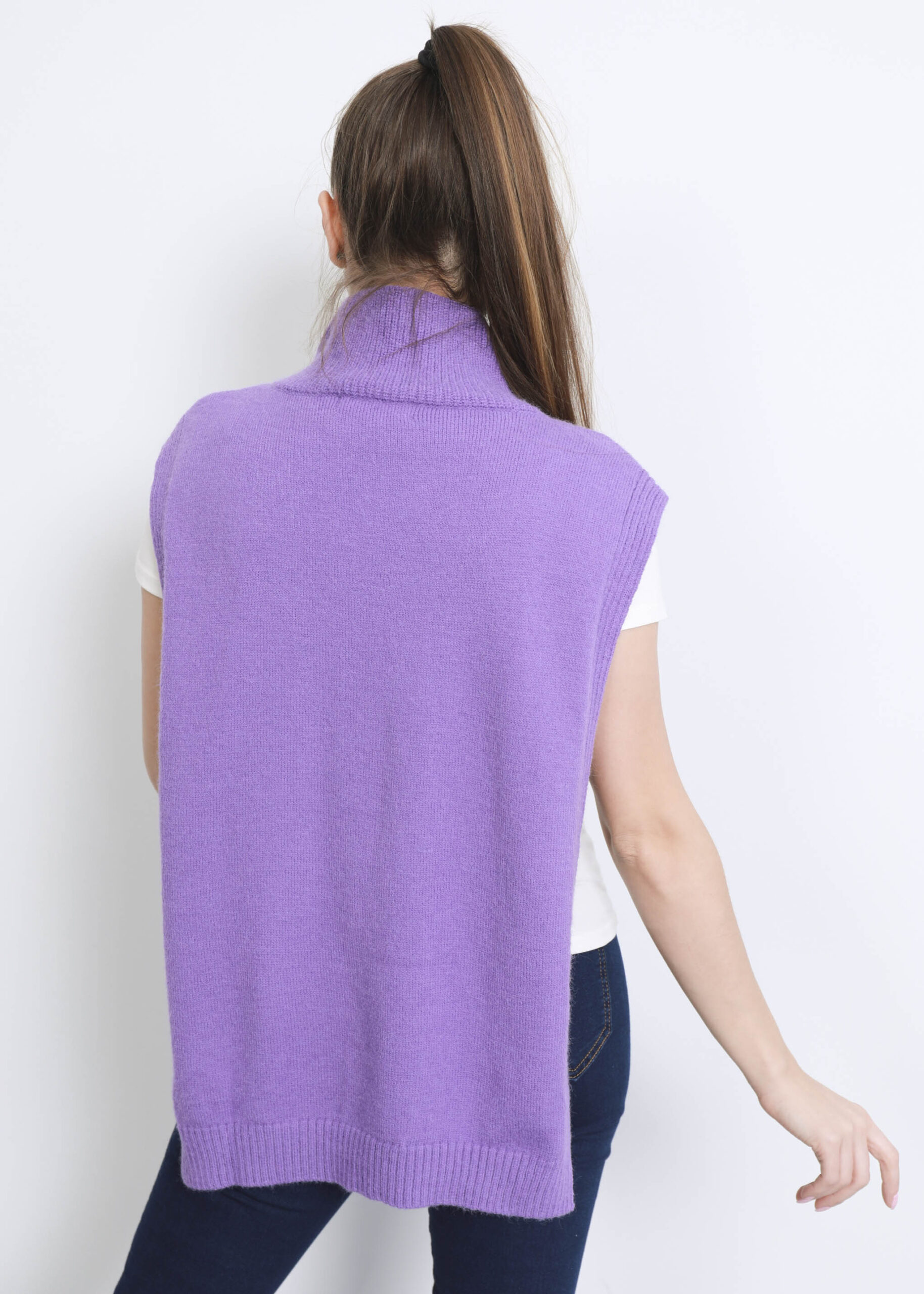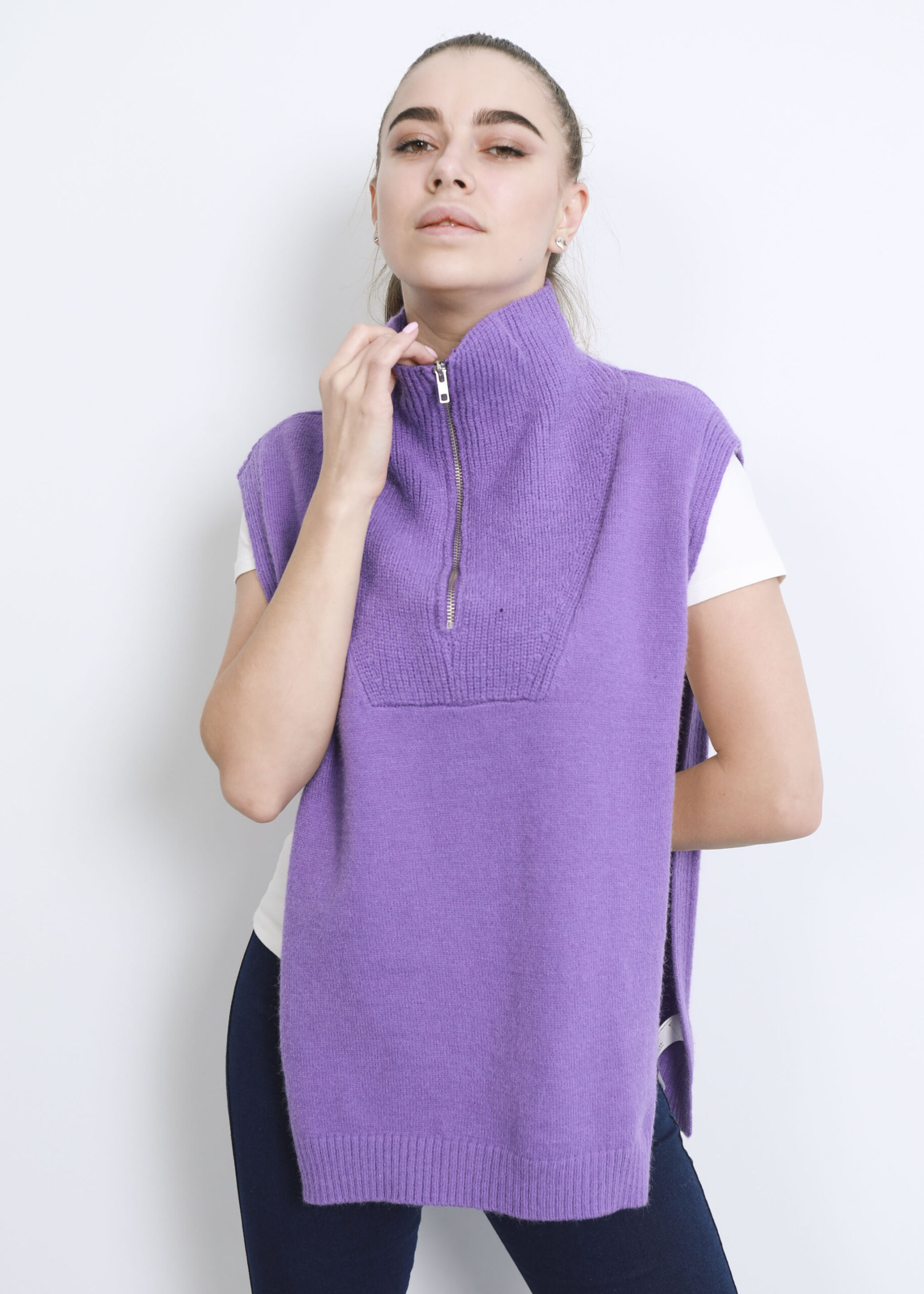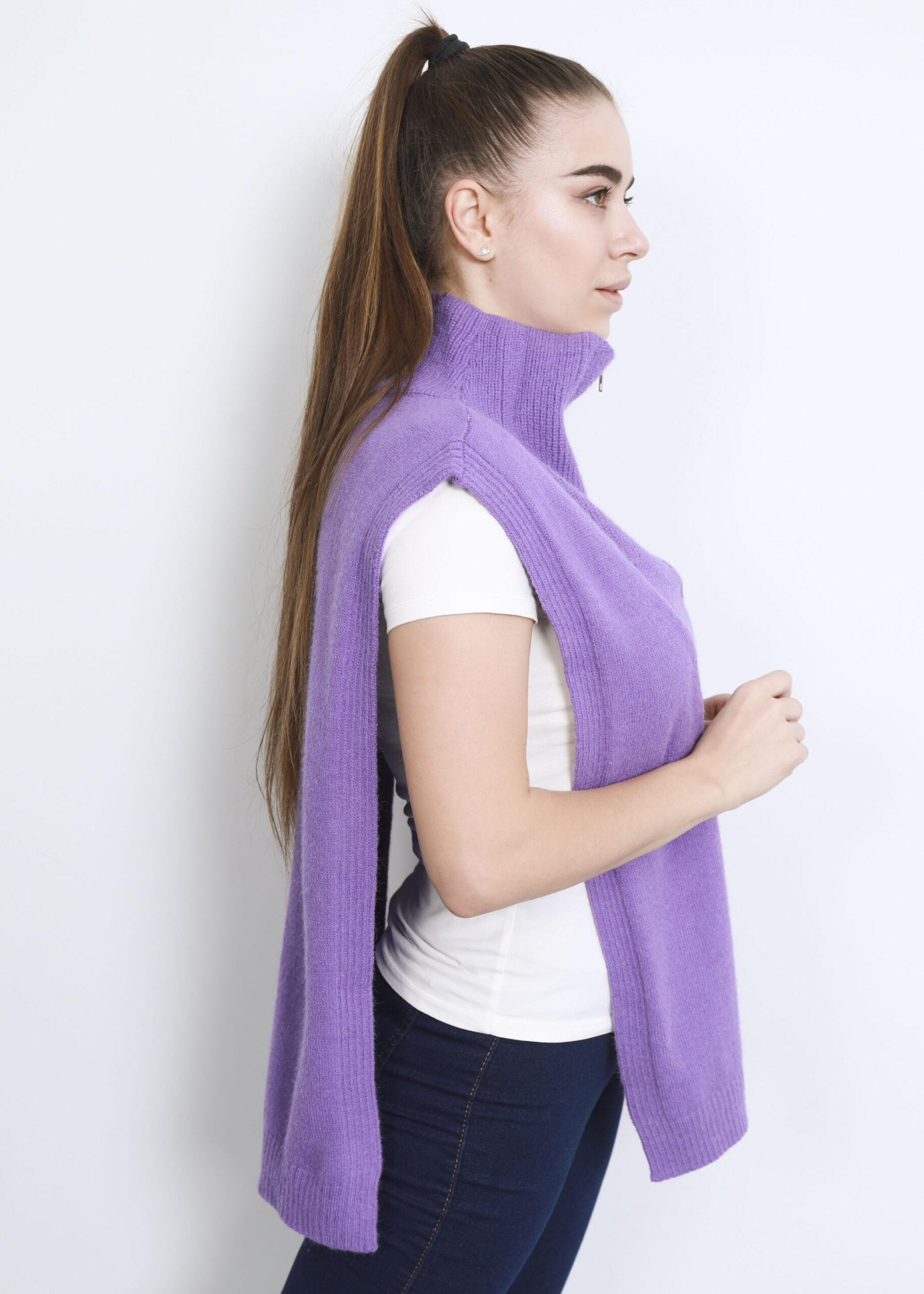 فيست نسائي, سادة, تصميم محبوك, بدون اكمام, ياقة مرتفعة مع سحاب امامي للاغلاق, مفتوح من الجانبين, انيق وعصري, 45% اكريليك 30% بوليستر 25% نايلون