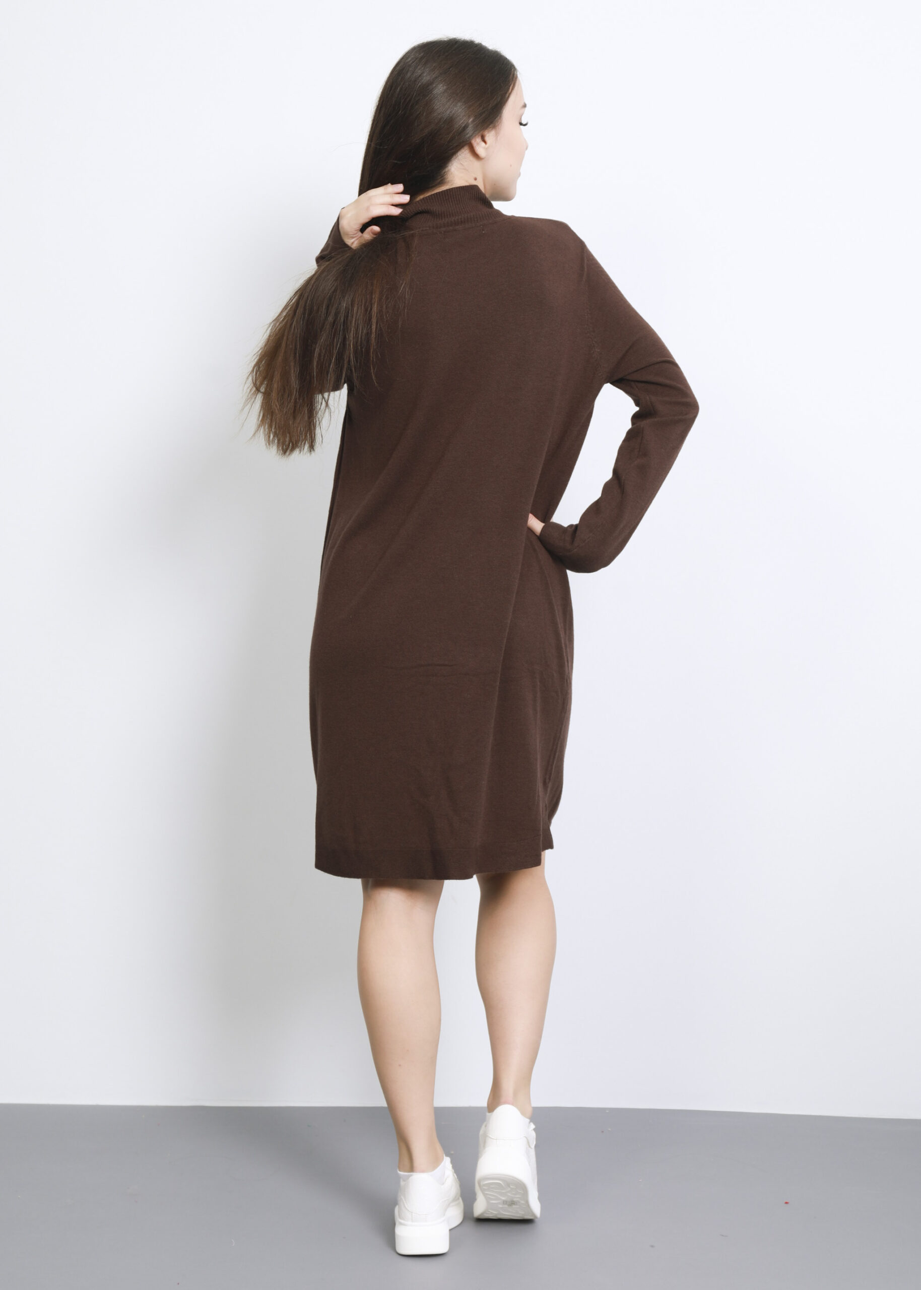 فستان نسائي, سادة, تصميم محبوك, قصير, أكمام طويلة, ياقة مرتفعة, انيق ودافيء, 51.8% فيسكوز 28.4% بوليستر 19.8% بولي اميد