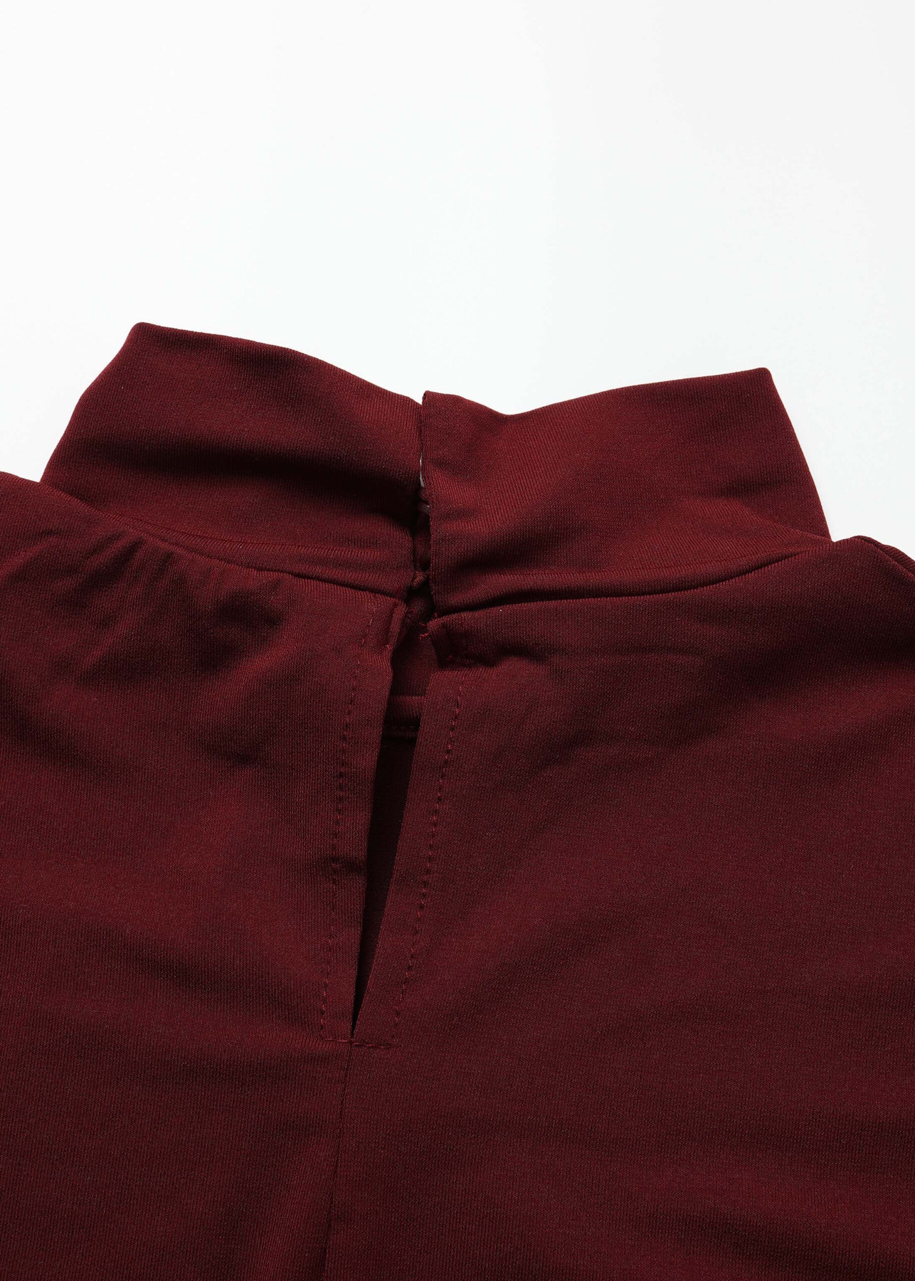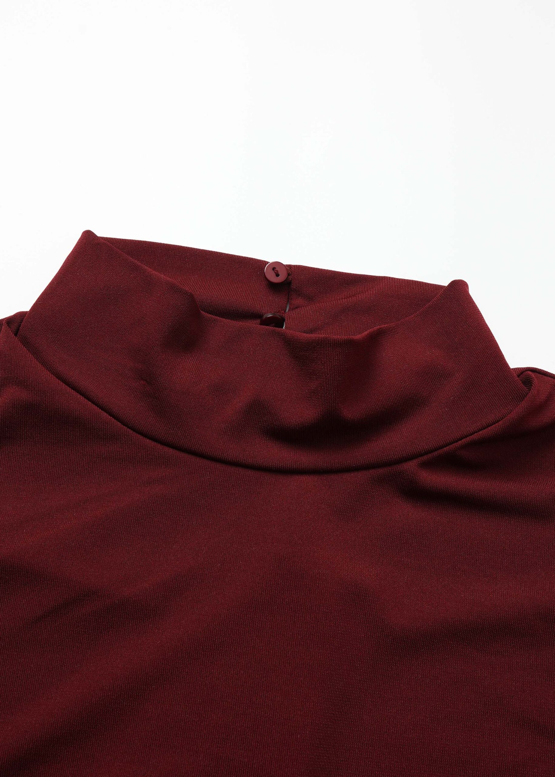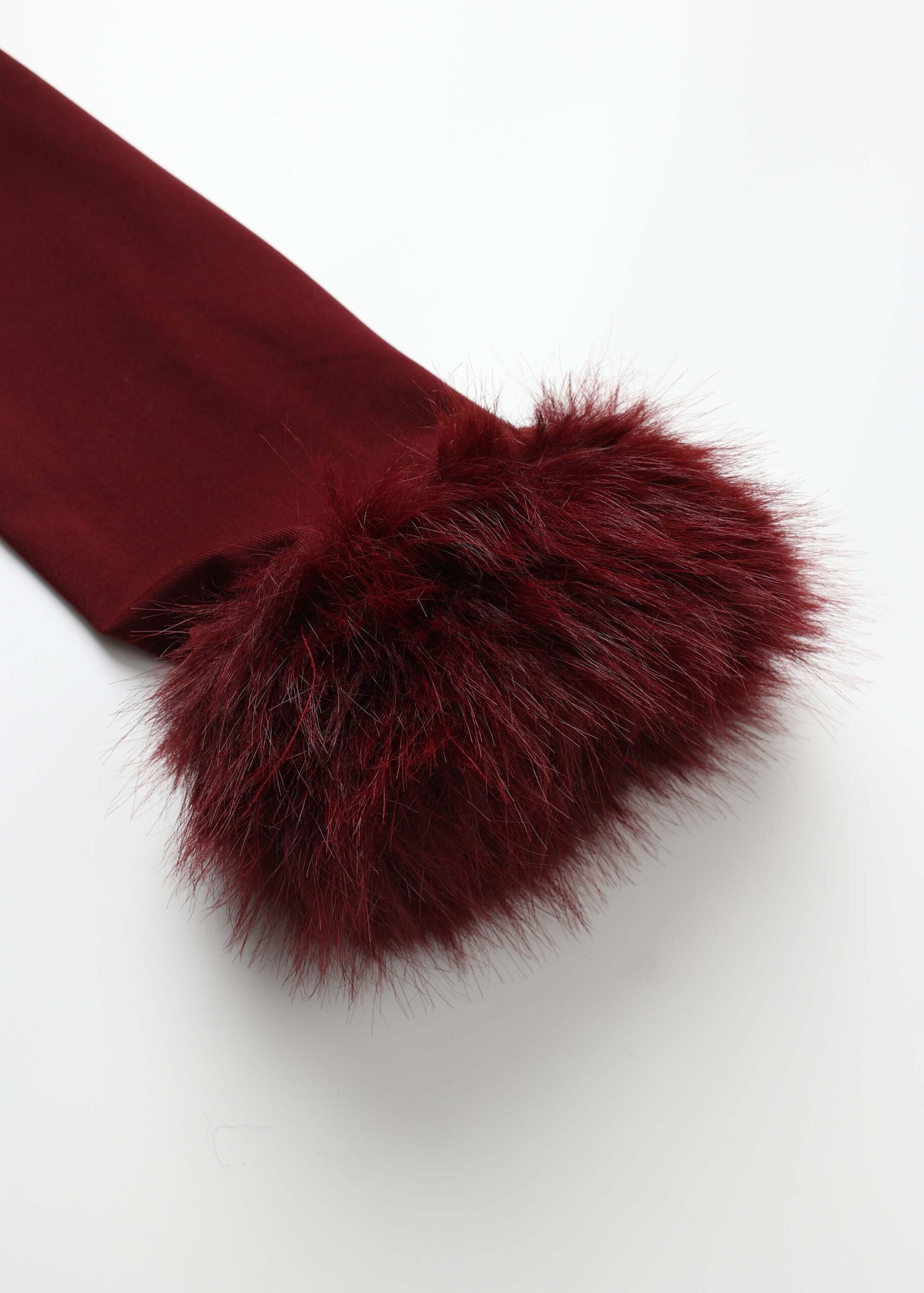 فستان نسائي, سادة, طويل, ياقة مرتفعة مع زر من الخلف, اكمام طويلة مع معصم فرو, انيق وعصري