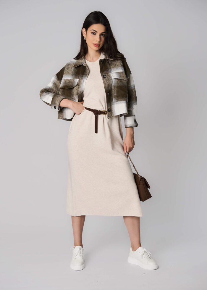 فستان نسائي, سادة, طويل, ياقة مدورة, اكمام قصيرة, فتحة من الجانب, انيق وعملي