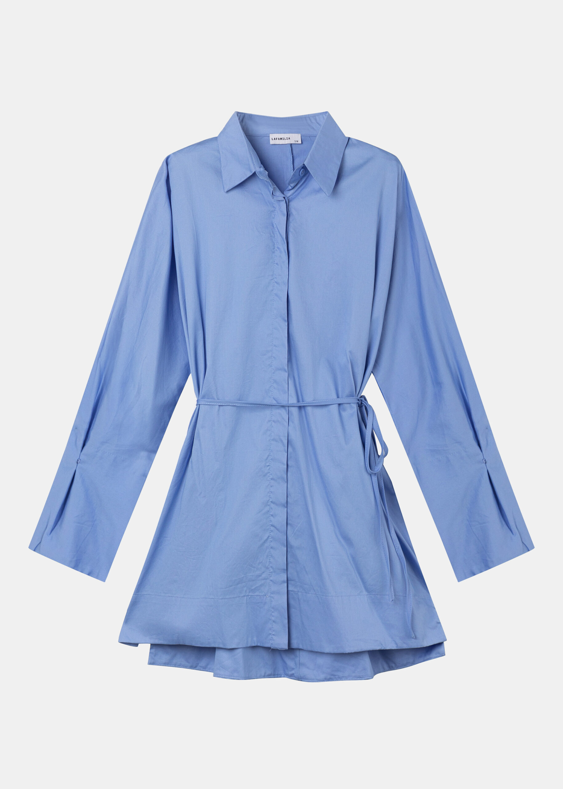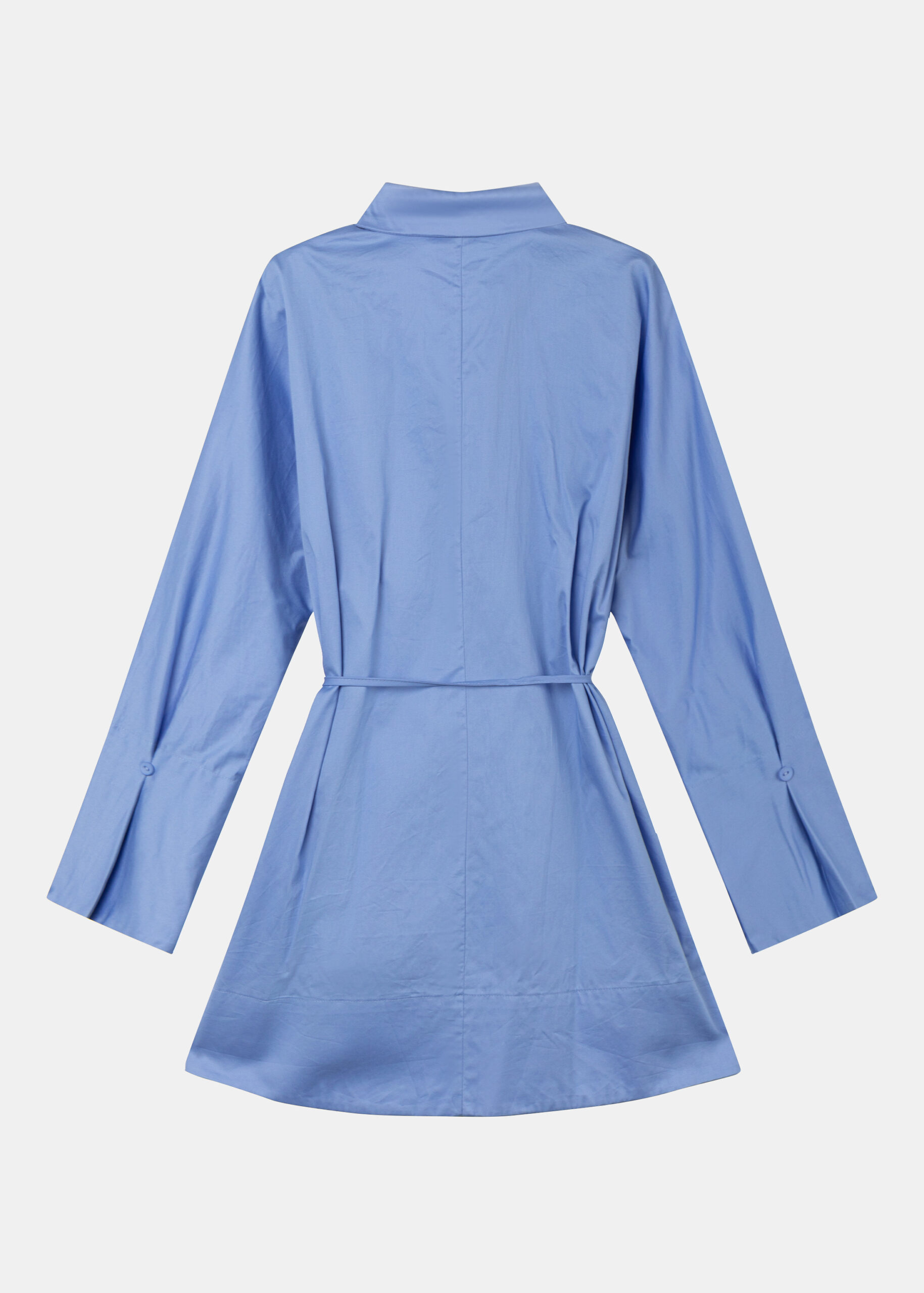 قميص نسائي, سادة, طويل, ازرار من الامام للاغلاق, ياقة مثنية مع زر من الامام, حزام خصر, اكمام طويلة بتصميم كسرات, انيق وعصري