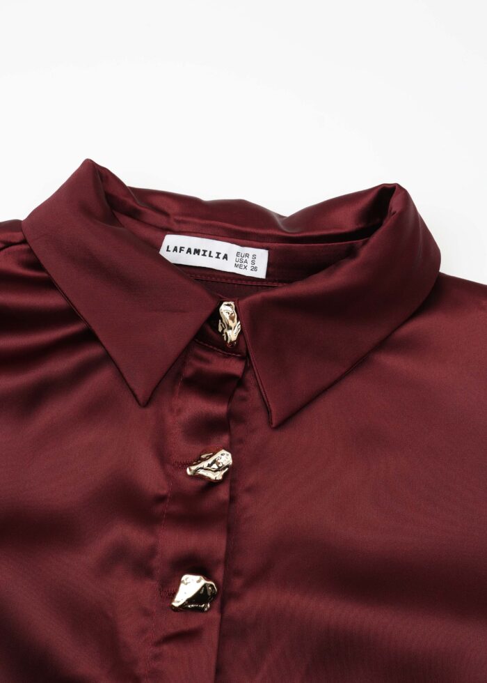 قميص نسائي, ساتان, سادة, ياقة مثنية مع زر من الامام, اكمام طويلة, معصم ضيق مع ازرار, ازرار من الامام للاغلاق, انيق وعملي