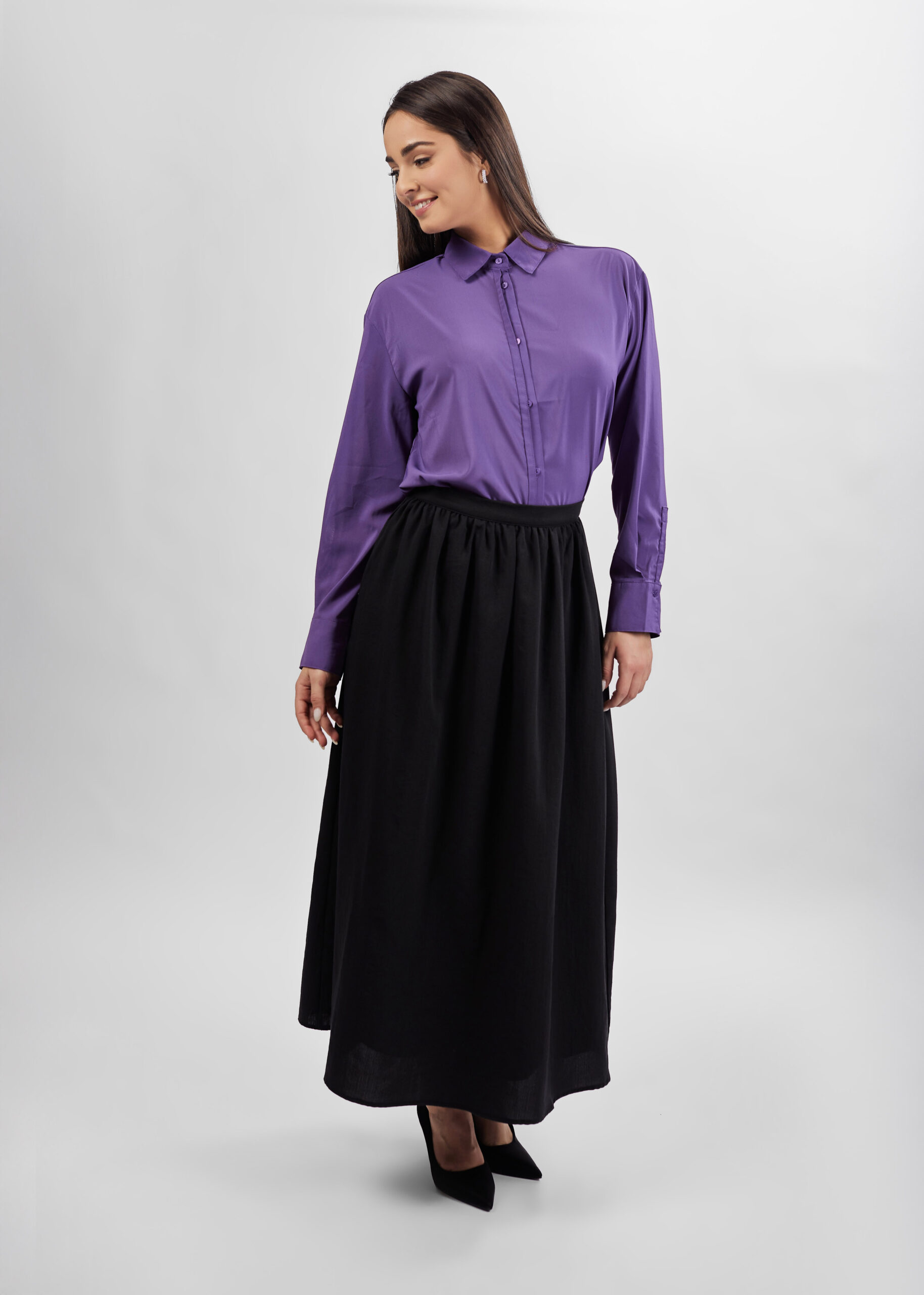 قميص نسائي, سادة, ازرار من الامام للاغلاق, ياقة مثنية مع زر من الامام, اكمام طويلة مع معصم ضيق, انيق وعملي
