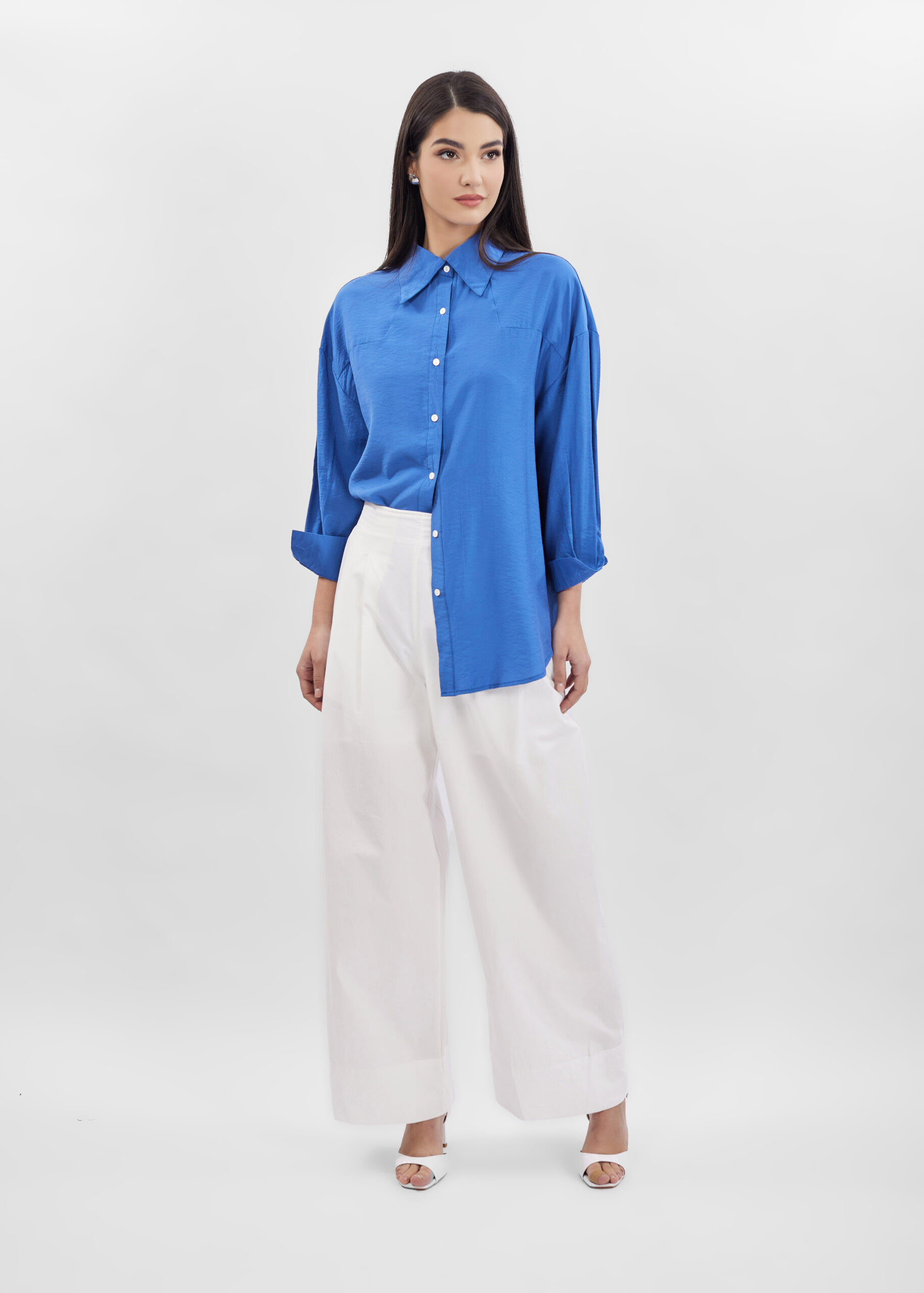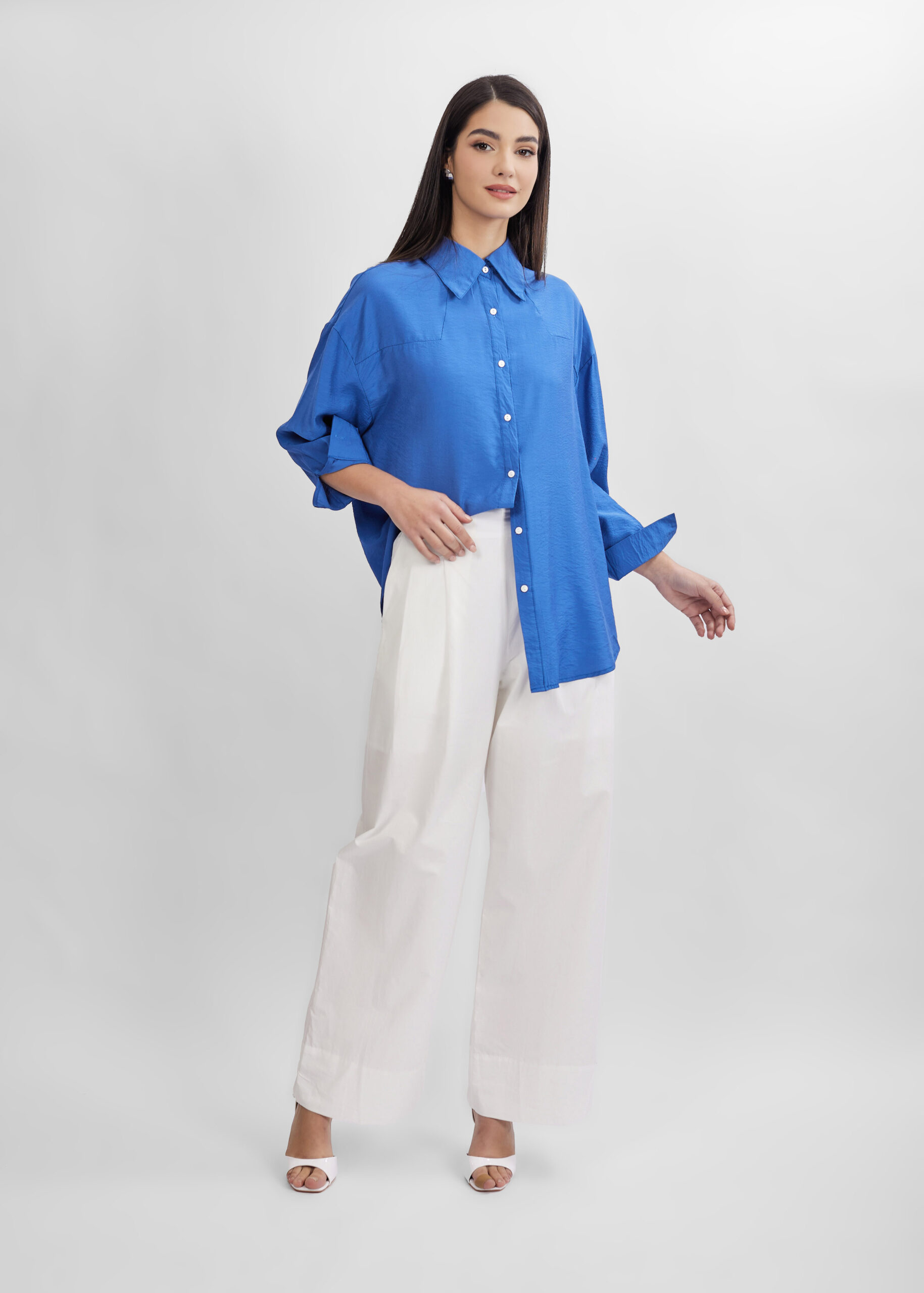 قميص نسائي, سادة, ازرار من الامام للاغلاق, ياقة مثنية مع زر من الامام, اكمام طويلة مع معصم ضيق, انيق ومريح