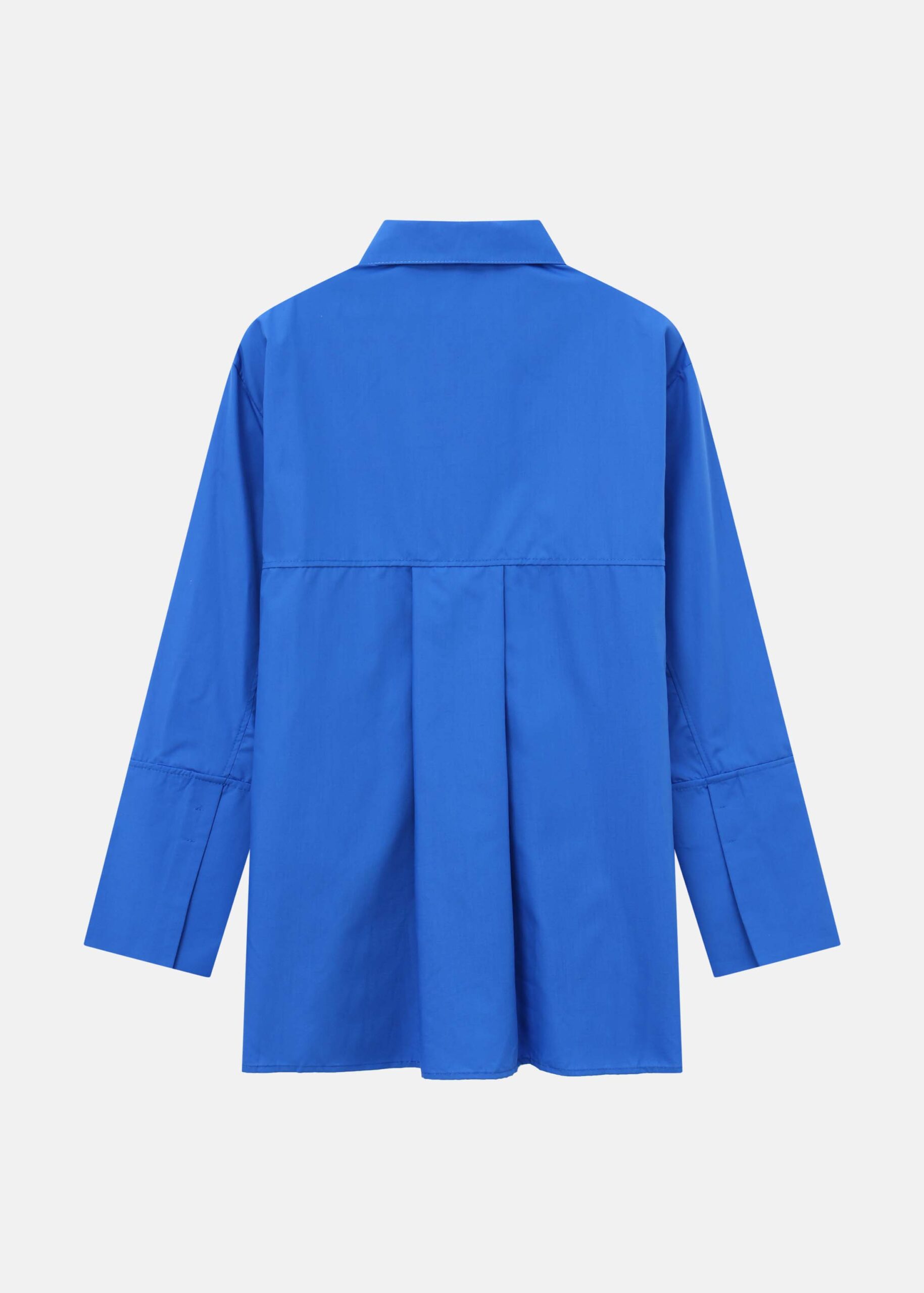 قميص نسائي, سادة, ياقة مثنية مع ازرار من الامام للاغلاق, اكمام طويلة مع معصم ضيق, تصميم كسرات من الخلف, انيق وعصري