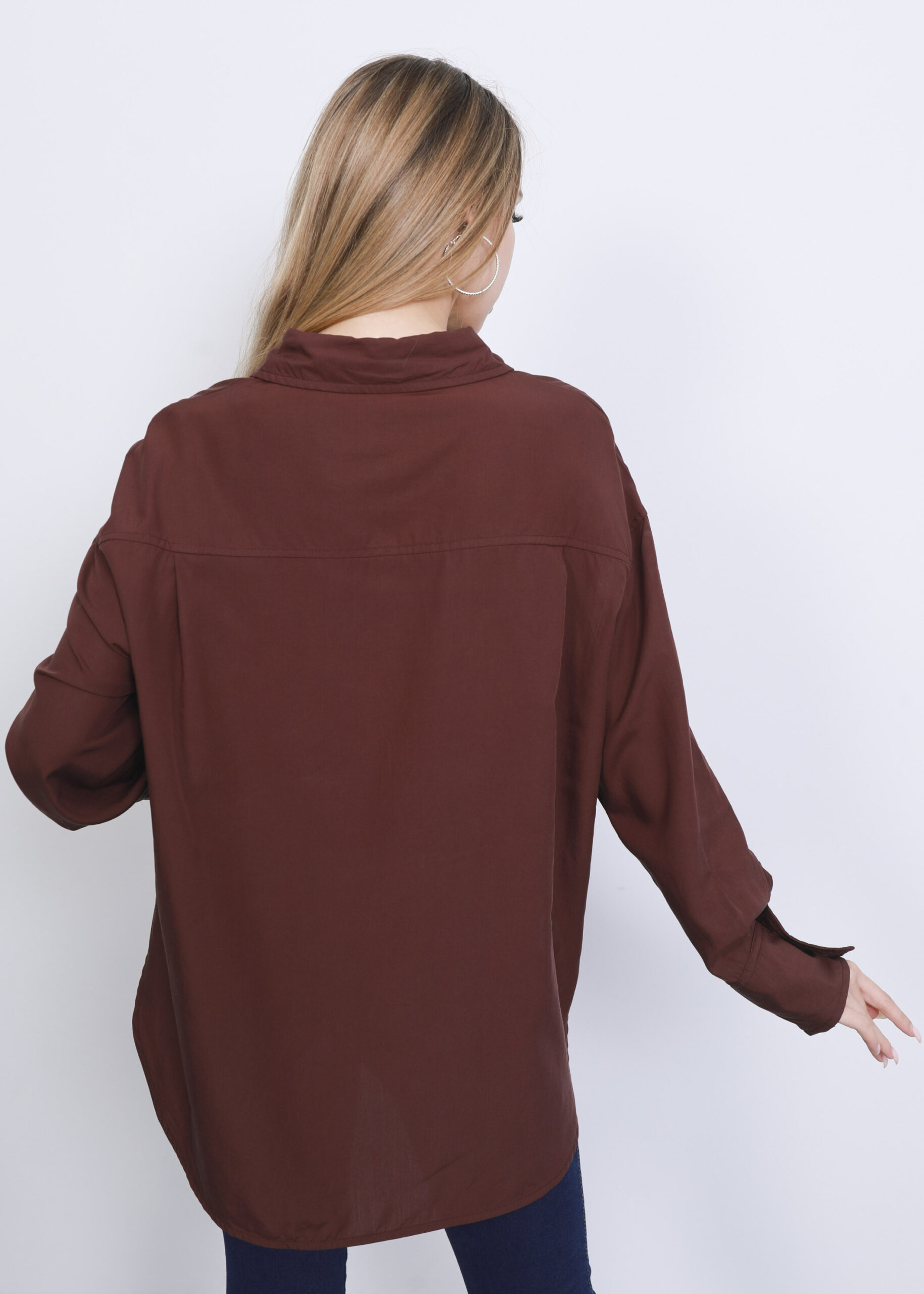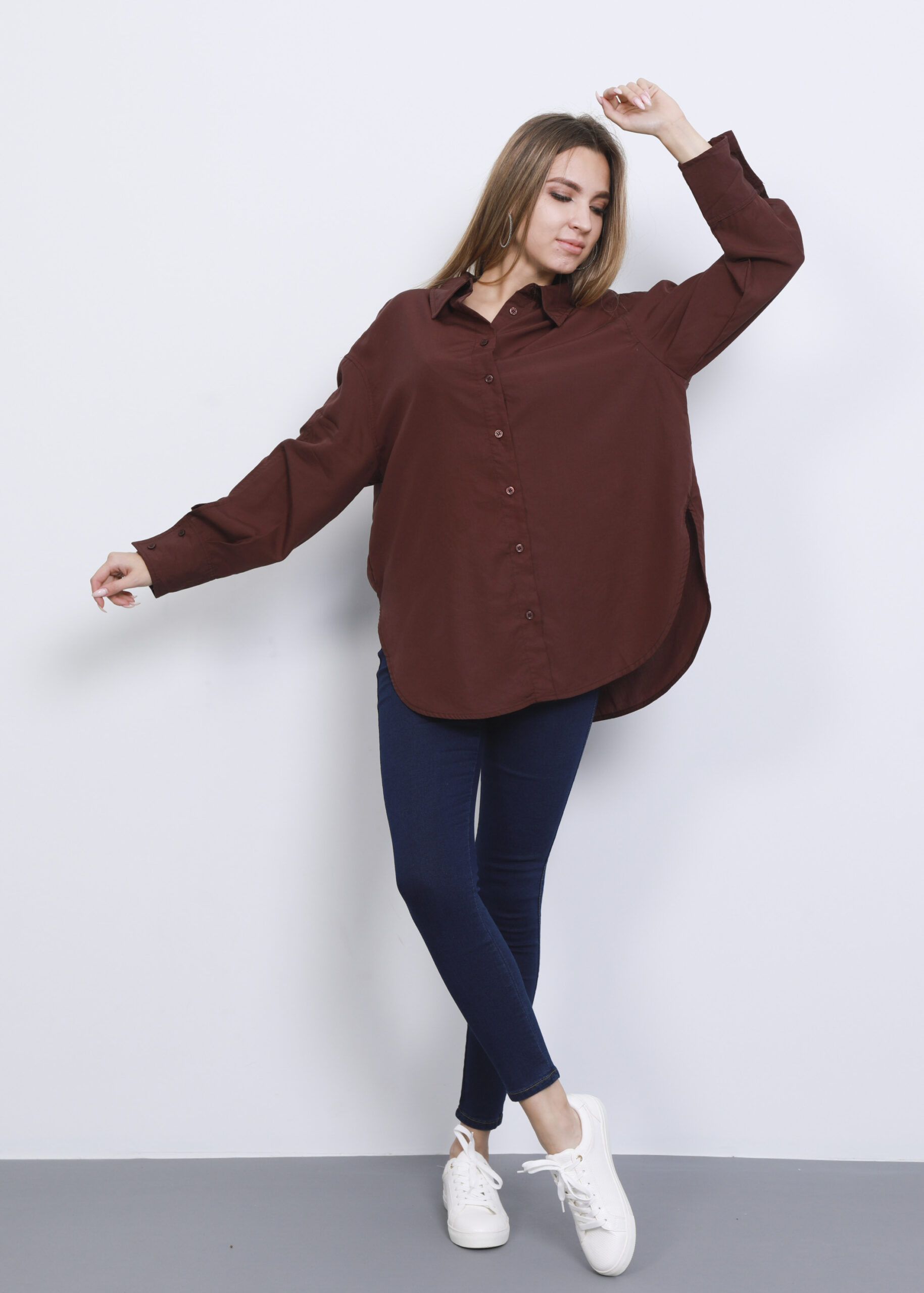 قميص نسائي, سادة, اكمام طويلة مع معصم ضيق وازرار للاغلاق, ياقة مثنية مع زر امامي للاغلاق, ازرار امامية للاغلاق, انيق وعصري, 85% بوليستر 15% نايلون