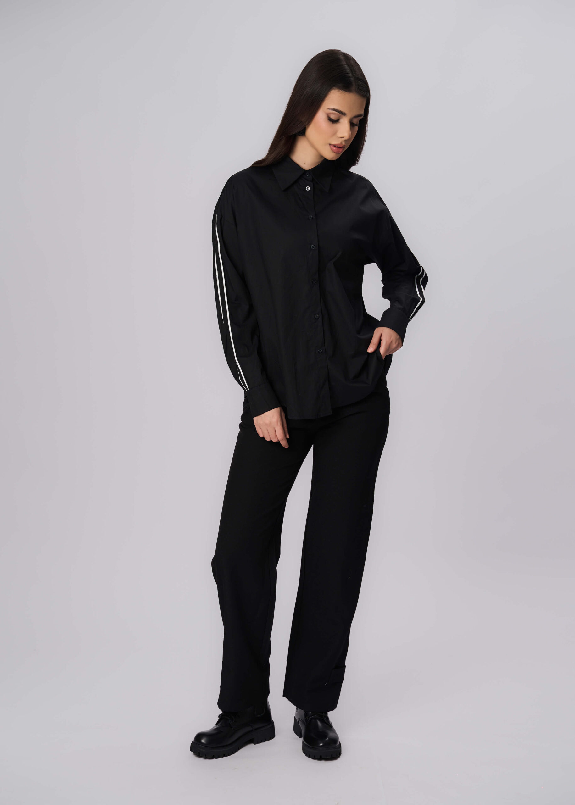 قميص نسائي, سادة, ياقة مثنية مع زر من الامام, اكمام طويلة مخططة, معصم ضيق, ازرار من الامام للاغلاق, انيق وعملي