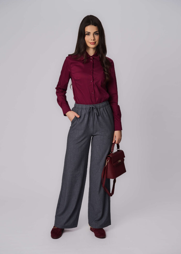 قميص نسائي, سادة, ياقة مثنية مع زر من الامام, اكمام طويلة, معصم ضيق, ازرار من الامام للاغلاق, انيق وعملي