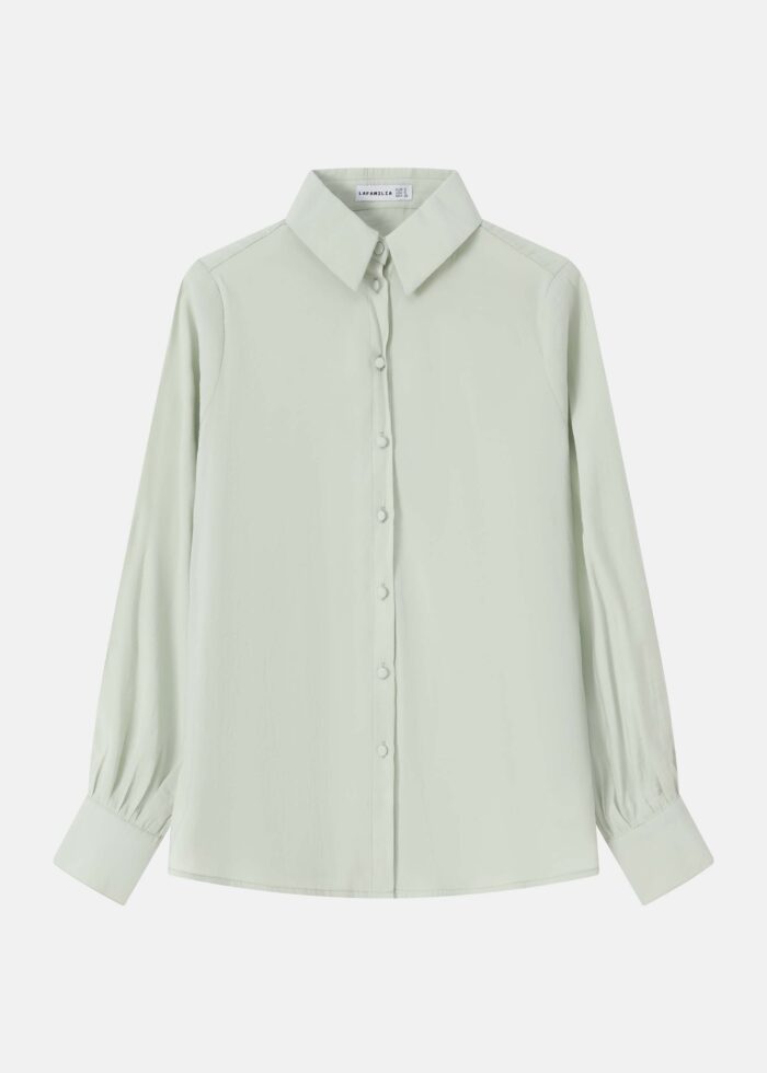 قميص نسائي, سادة, ياقة مثنية مع زر من الامام, اكمام طويلة, معصم ضيق, ازرار من الامام للاغلاق, انيق وعملي