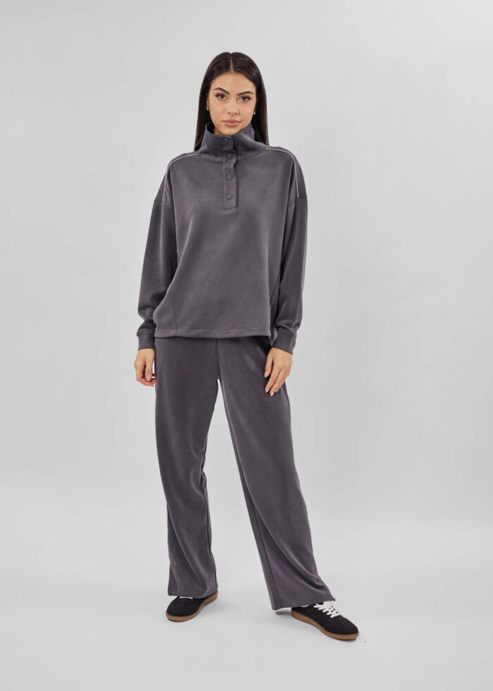 سويتشيرت نسائي, سادة, ياقة مثنية مع ازرار كبس من الامام للاغلاق, اكمام طويلة مع معصم ضيق, انيق وعملي