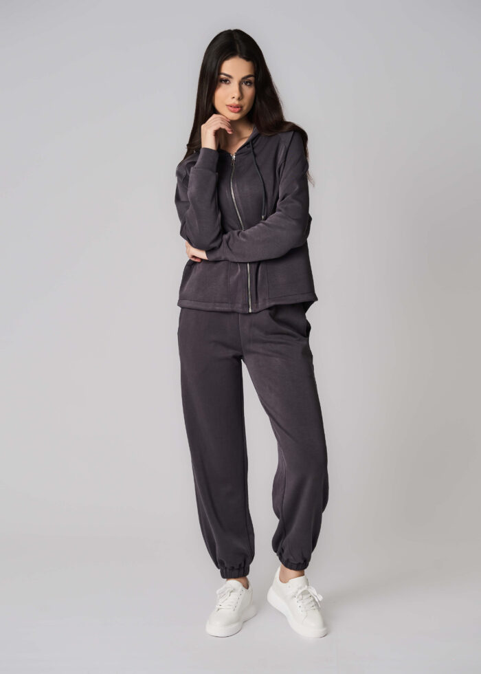 جاكيت نسائي رياضي, سادة, اكمام طويلة مع معصم ضيق, سحاب من الامام للاغلاق, جيوب من الامام مع سحابات, طاقية مع حبل للربط من الامام, مريح وعملي