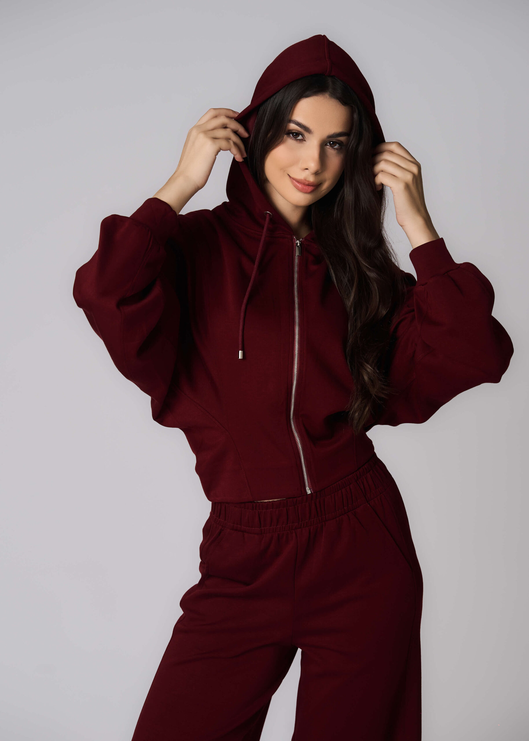 جاكيت نسائي رياضي, سادة, اكمام واسعة طويلة مع معصم ضيق, سحاب من الامام للاغلاق, طاقية مع حبل للربط من الامام, مريح وعملي