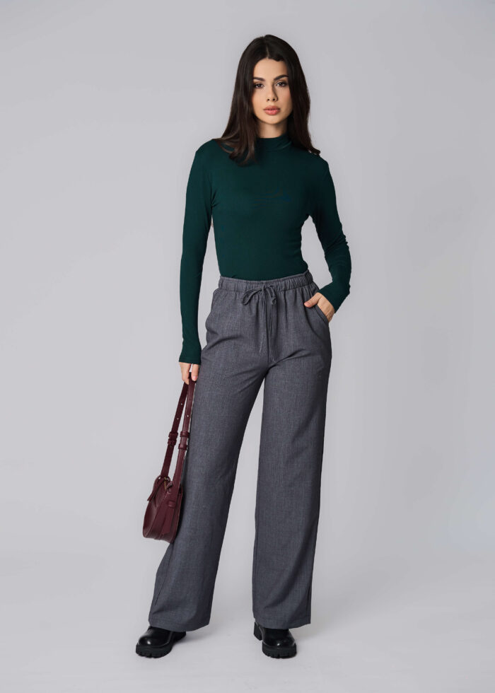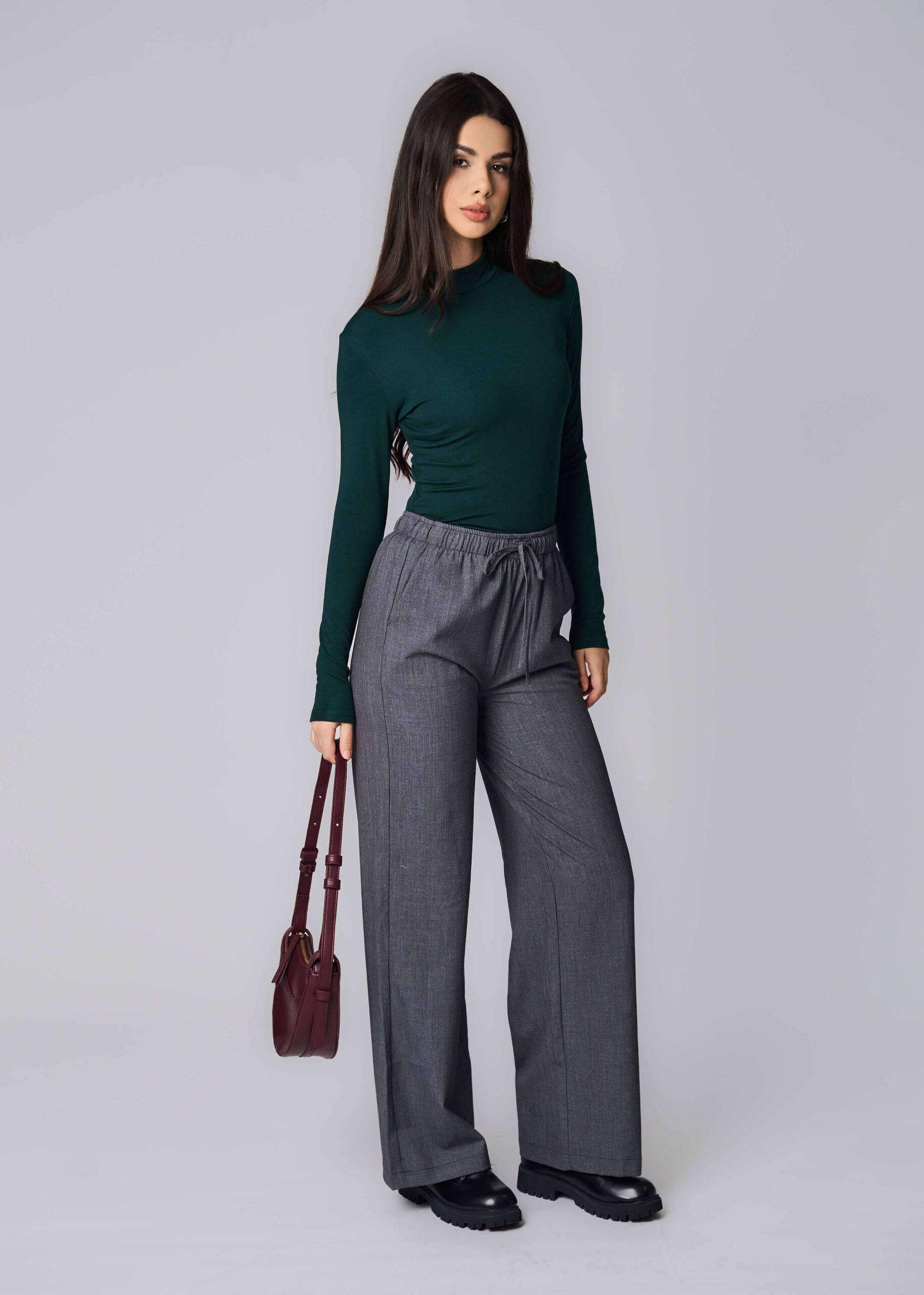 بنطلون نسائي, سادة, واسع, خصر مطاطي مع حبل للربط من الامام, جيوب من الامام, انيق وعملي