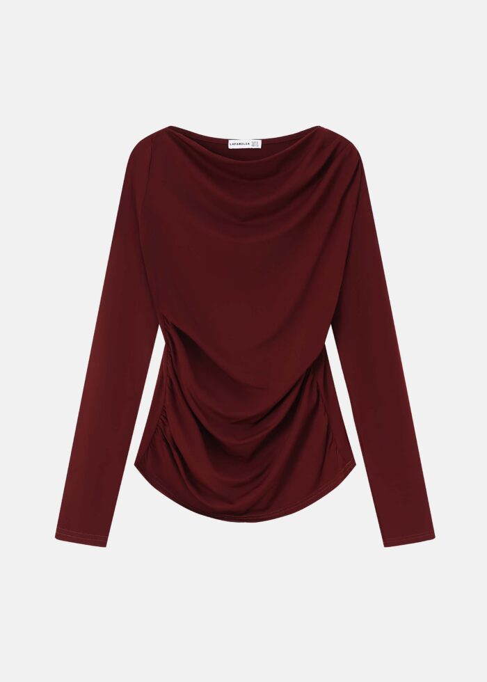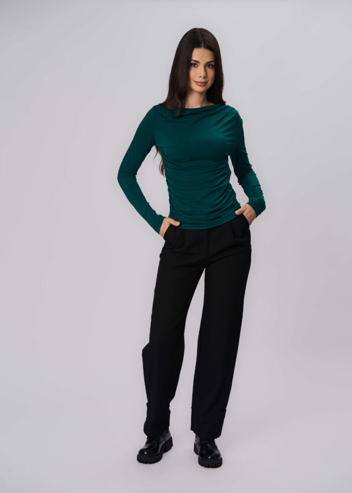 بلوزة نسائي, سادة, ياقة مدورة, تصميم ثنيات من الجانبين, اكمام طويلة, انيقة وعصرية