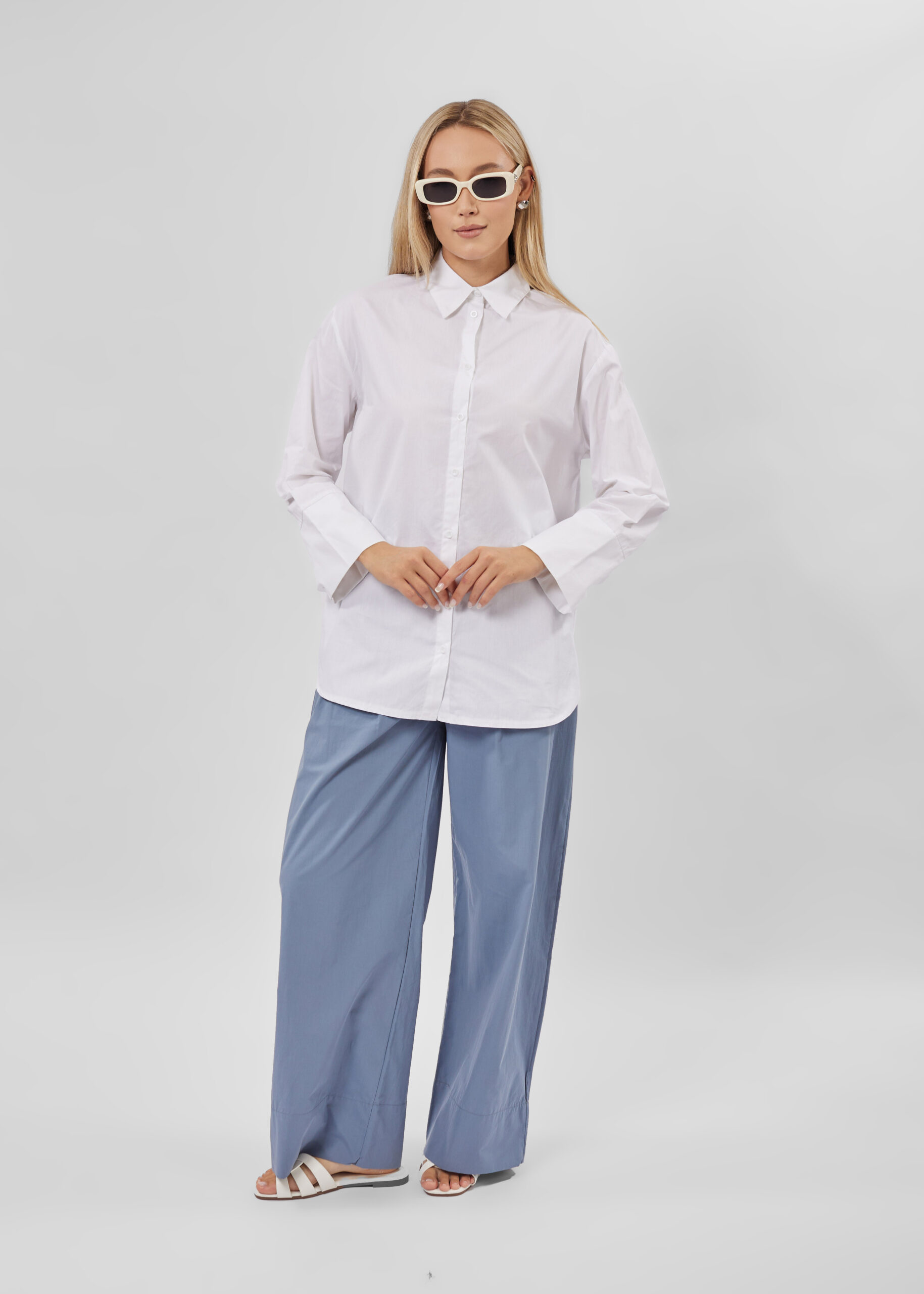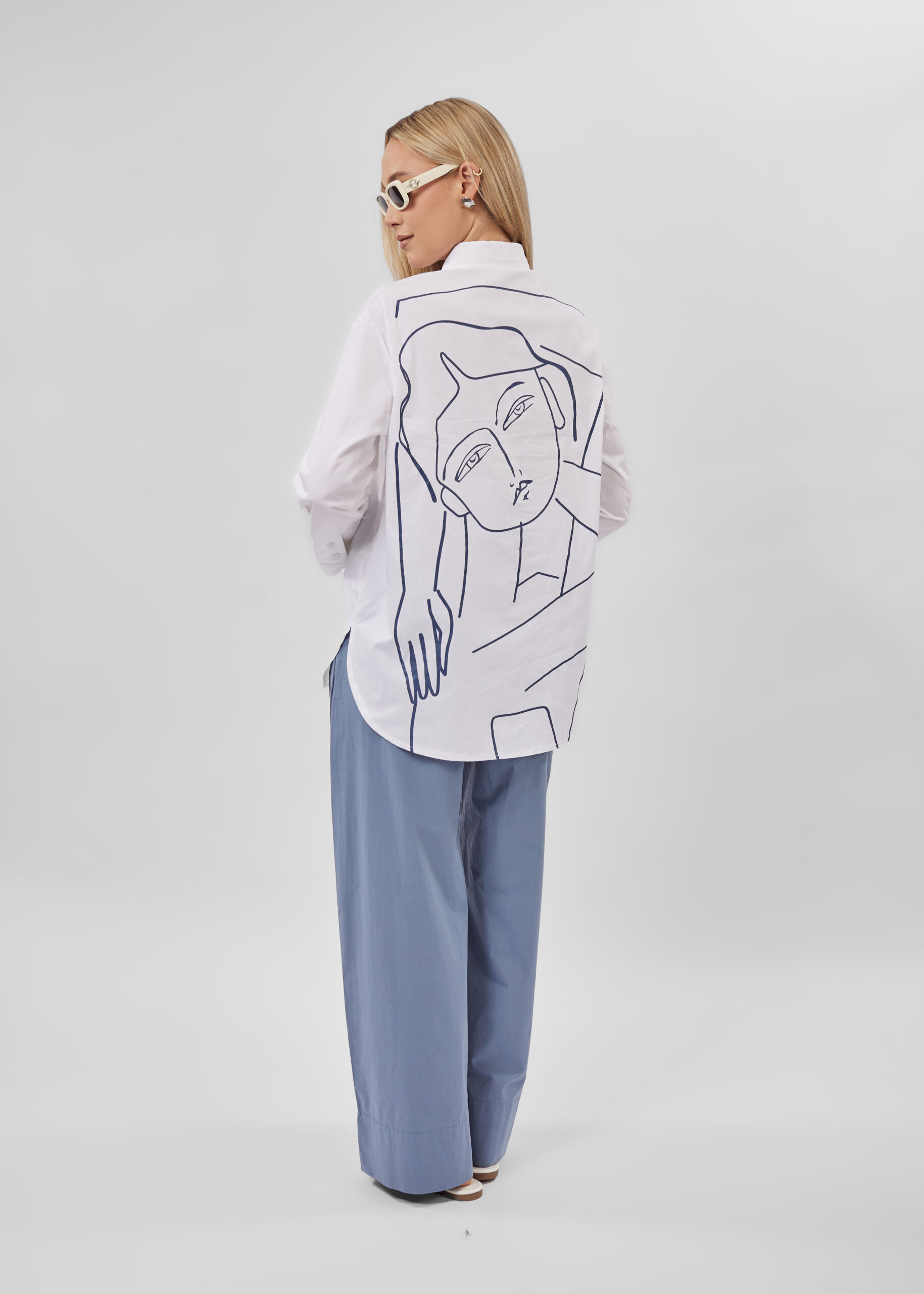 قميص نسائي, سادة من الامام, ازرار من الامام للاغلاق, اكمام طويلة مع معصم ضيق, ياقة مثنية, تصميم مطبوع من الخلف, انيق وعصري