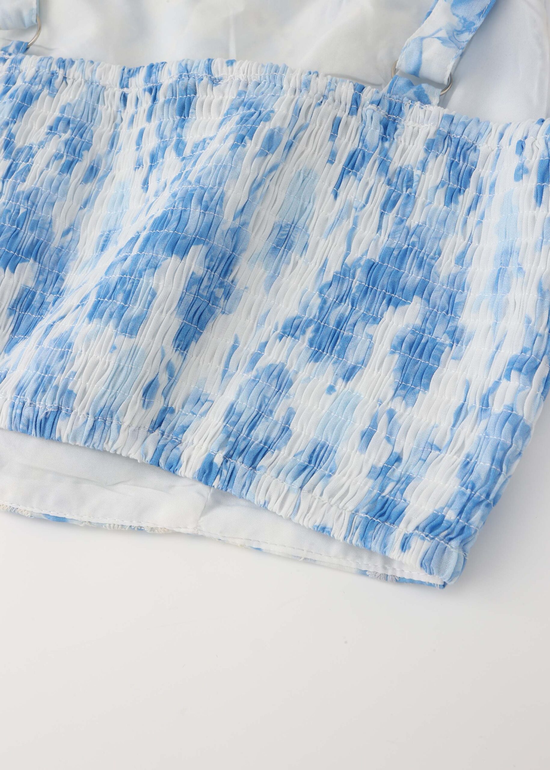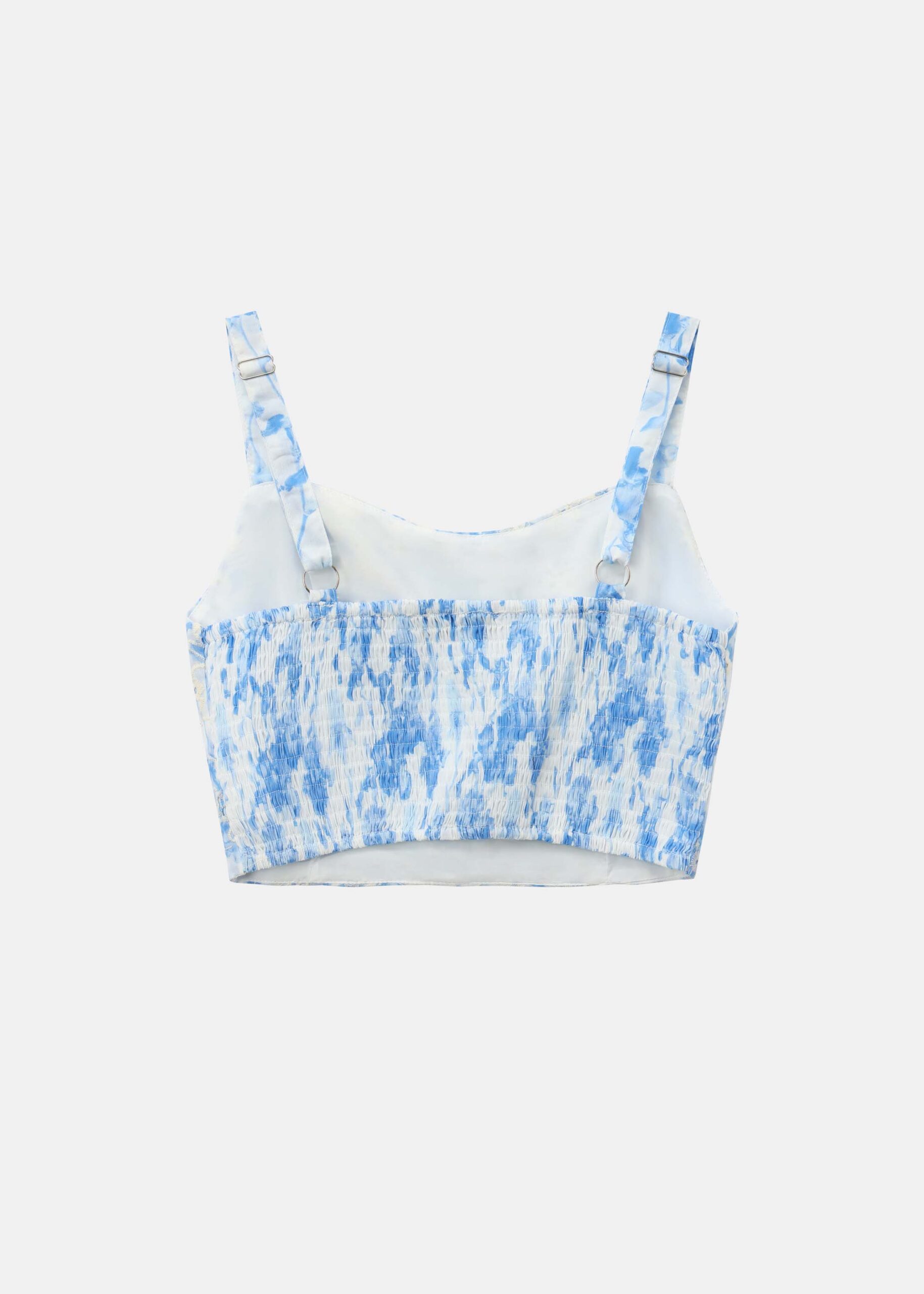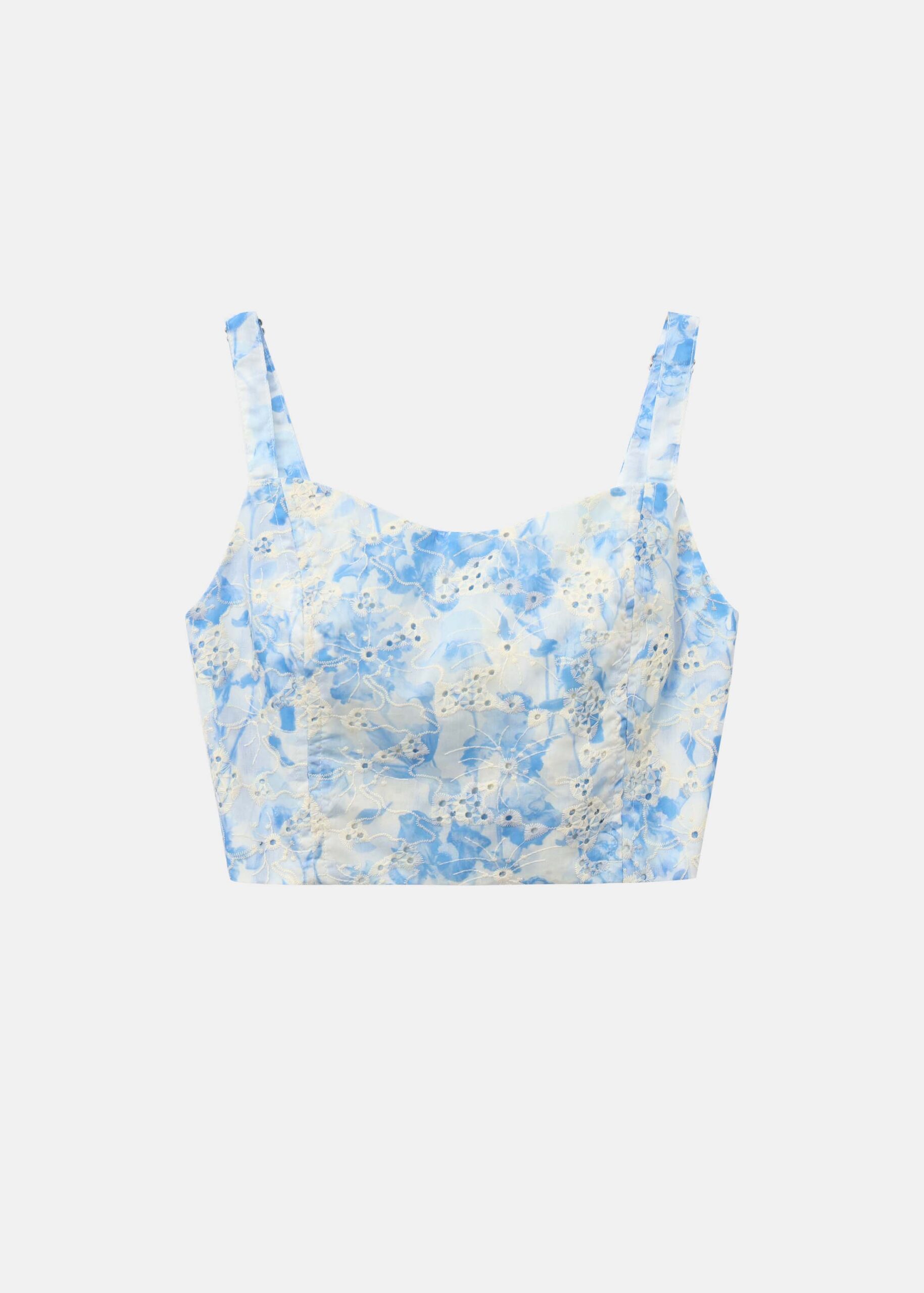 توب نسائي, قصير, معرق, بتطريز, بدون اكمام, ظهر مطاطي, انيق ومناسب مع عدة تنسيقات