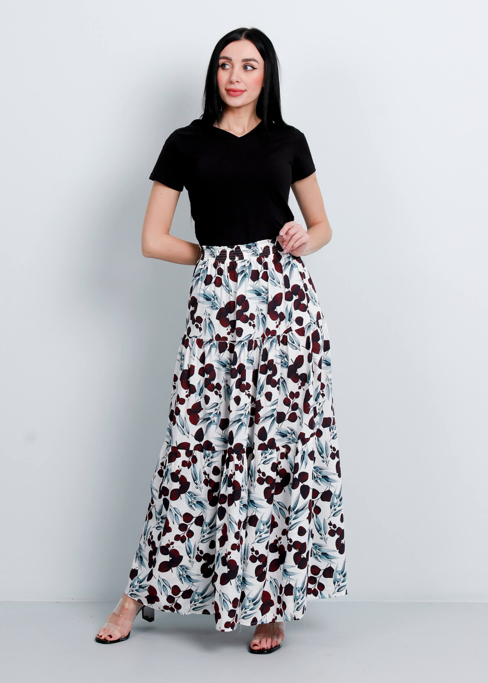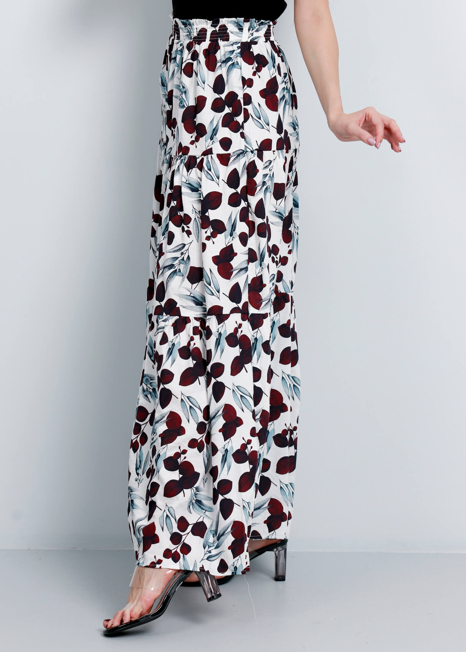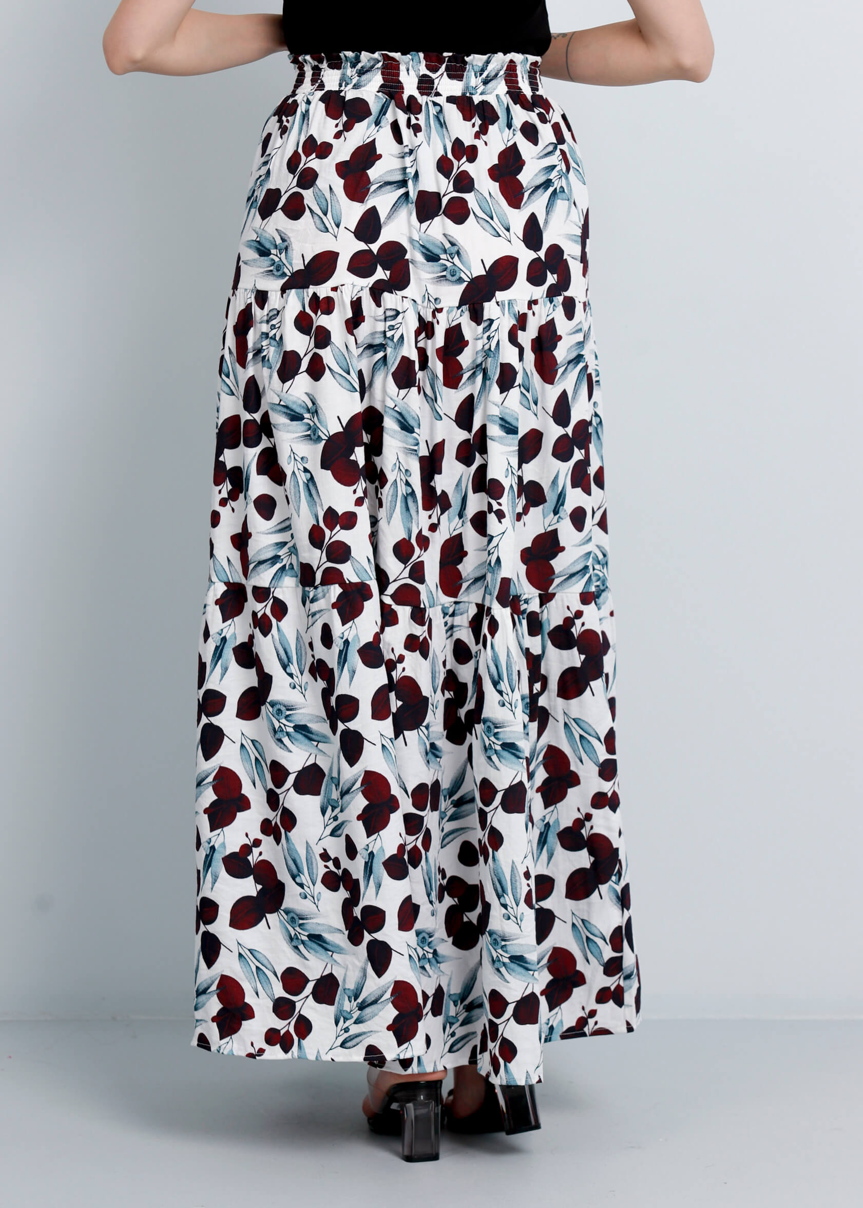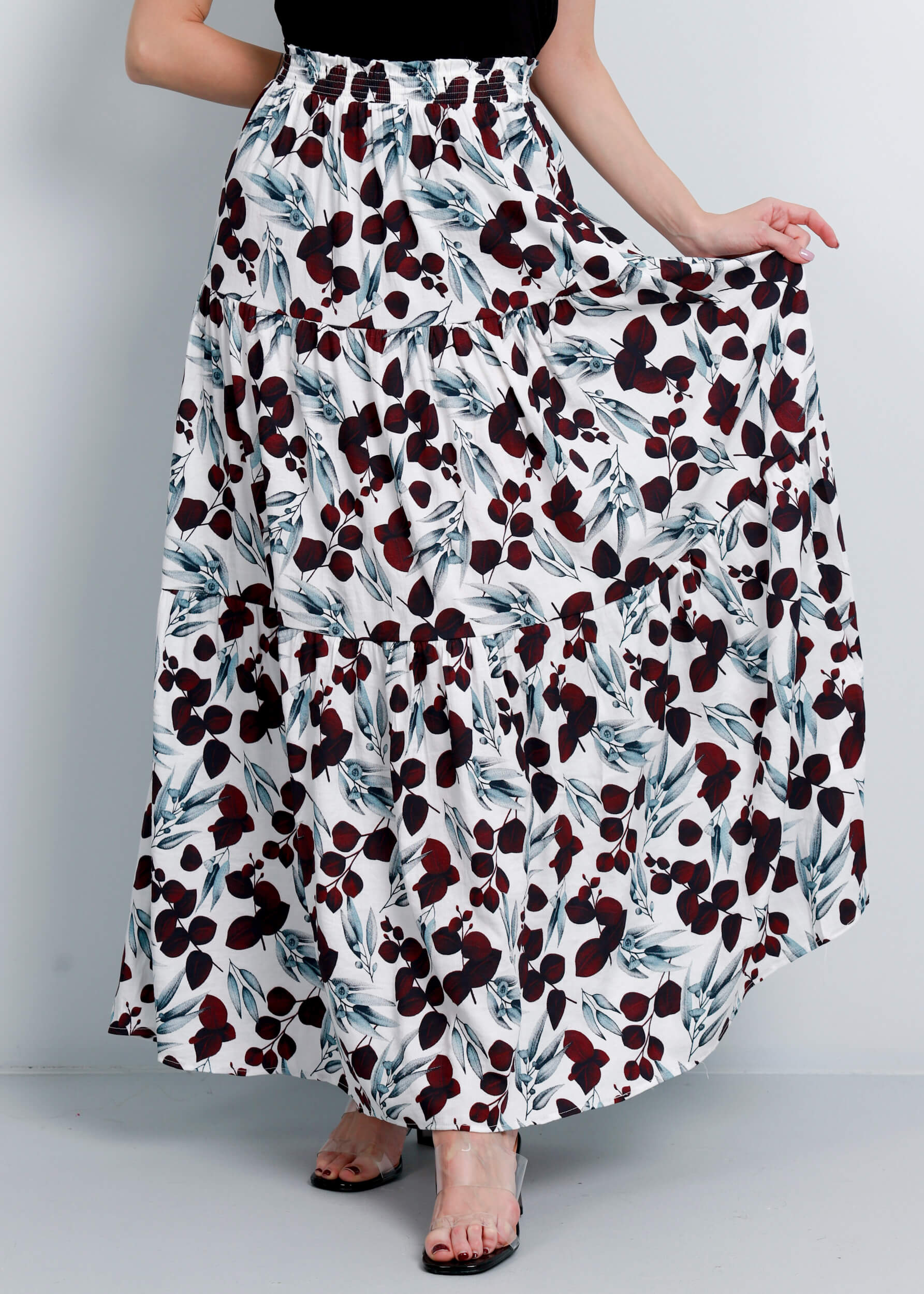 تنورة ستاتي, طويلة, طبقات كشكش, معرقة بالوان زاهية, خصر مطاطي, انيقة وعصرية, 70% ريون 30% نايلون