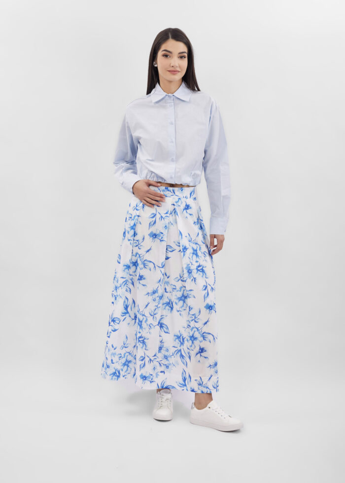 تنورة نسائي, طويلة, معرقة, كسرات, جيوب من الامام, سحاب من الخلف للاغلاق, انيقة وعصرية