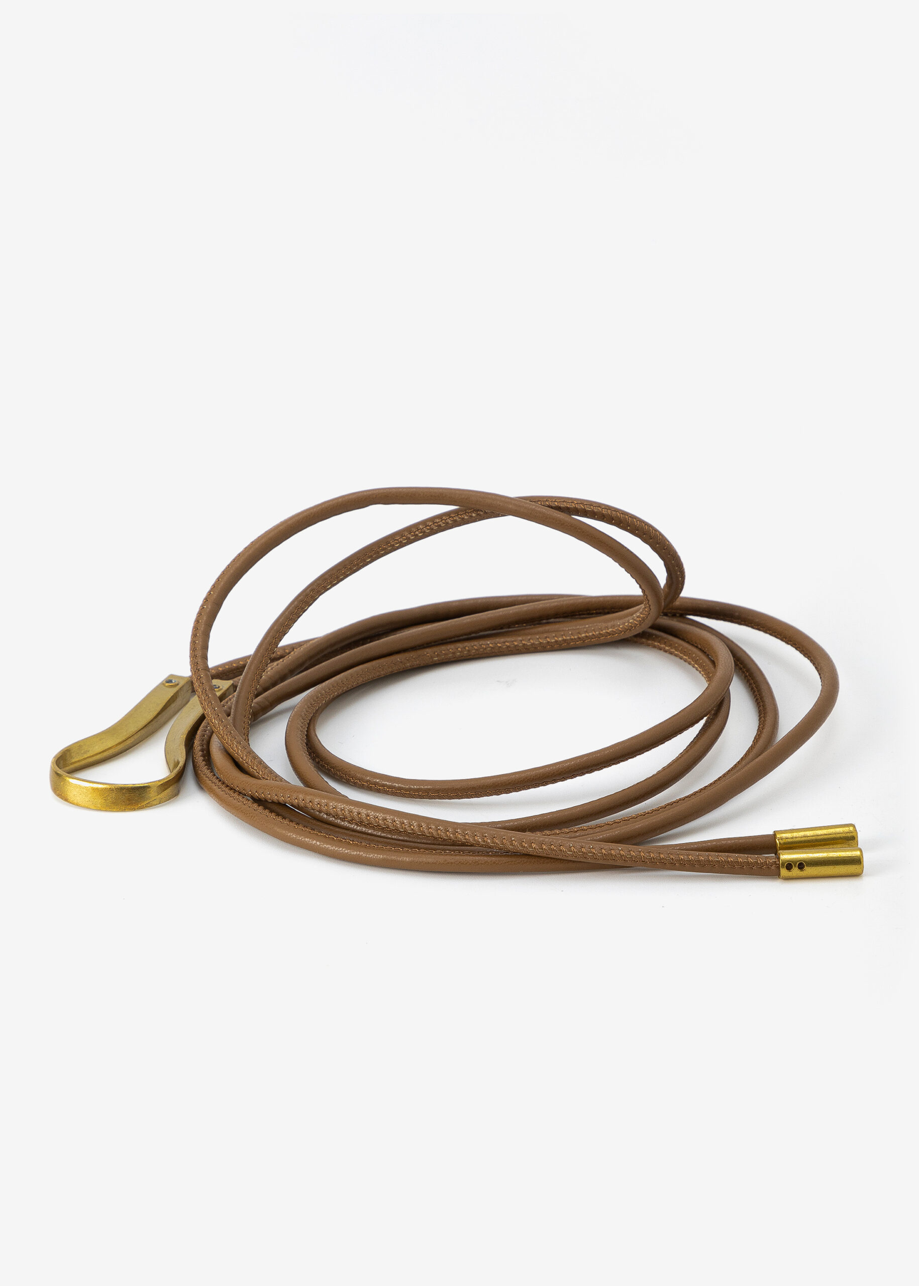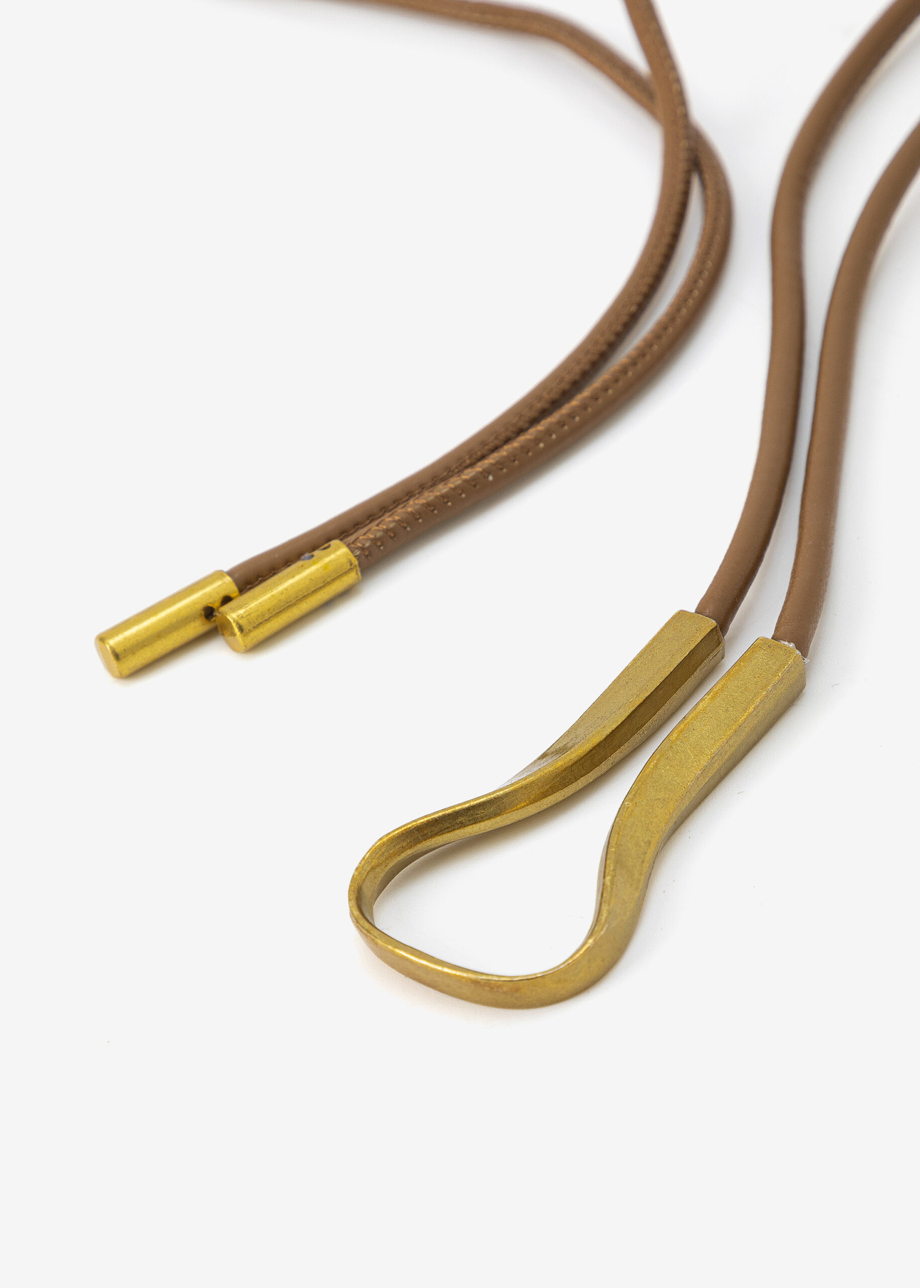 حزام نسائي, جلد, تصميم حبال, مزين بقطعة معدنية من الامام, ربط للاغلاق, انيق وعصري