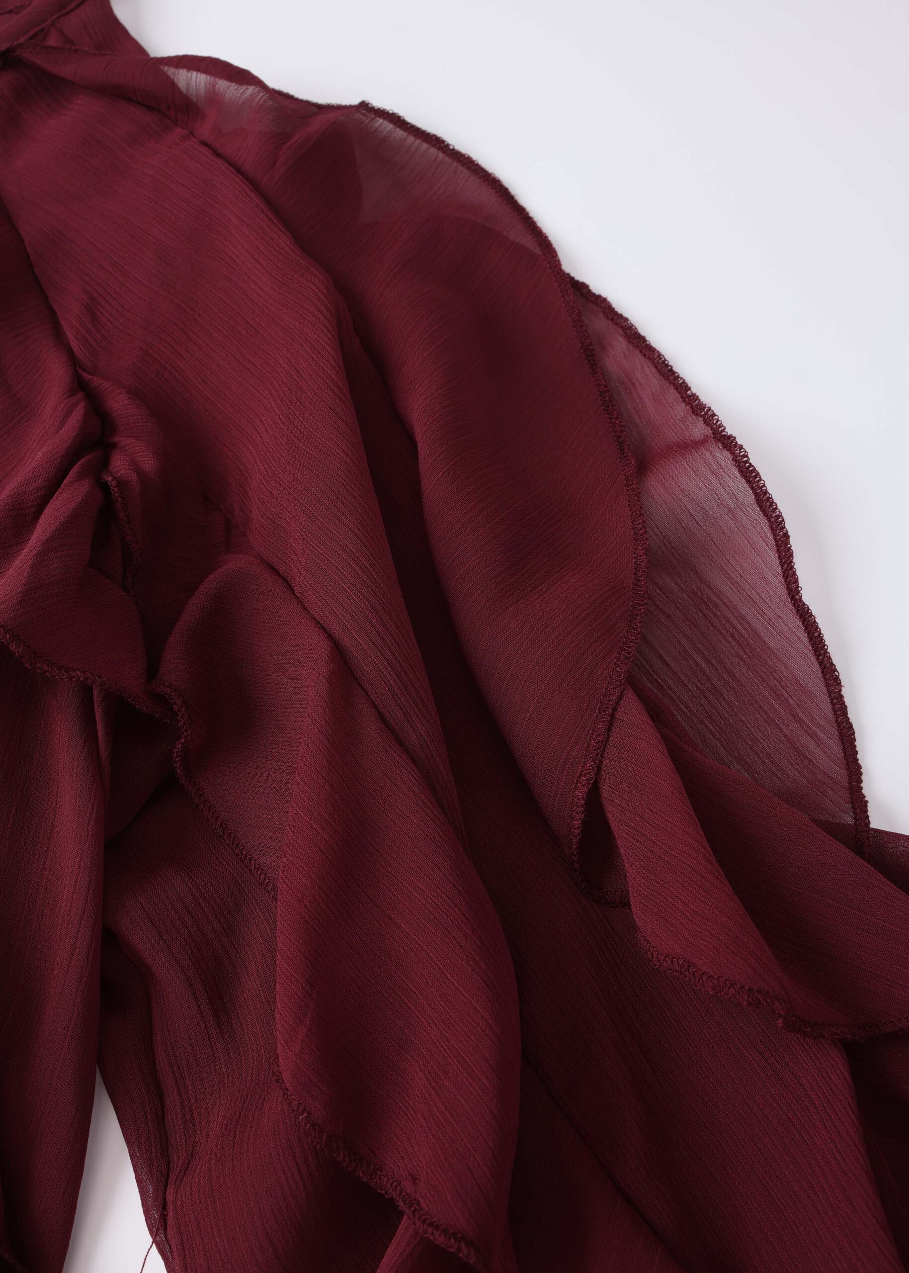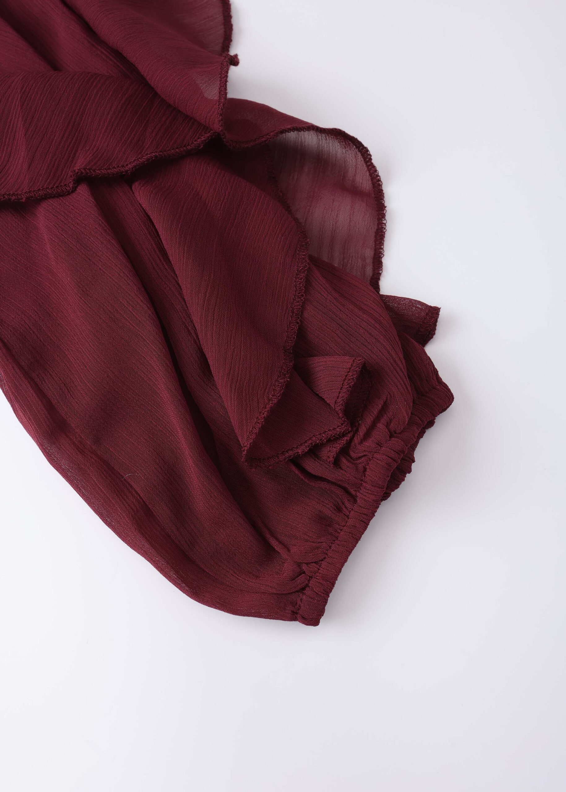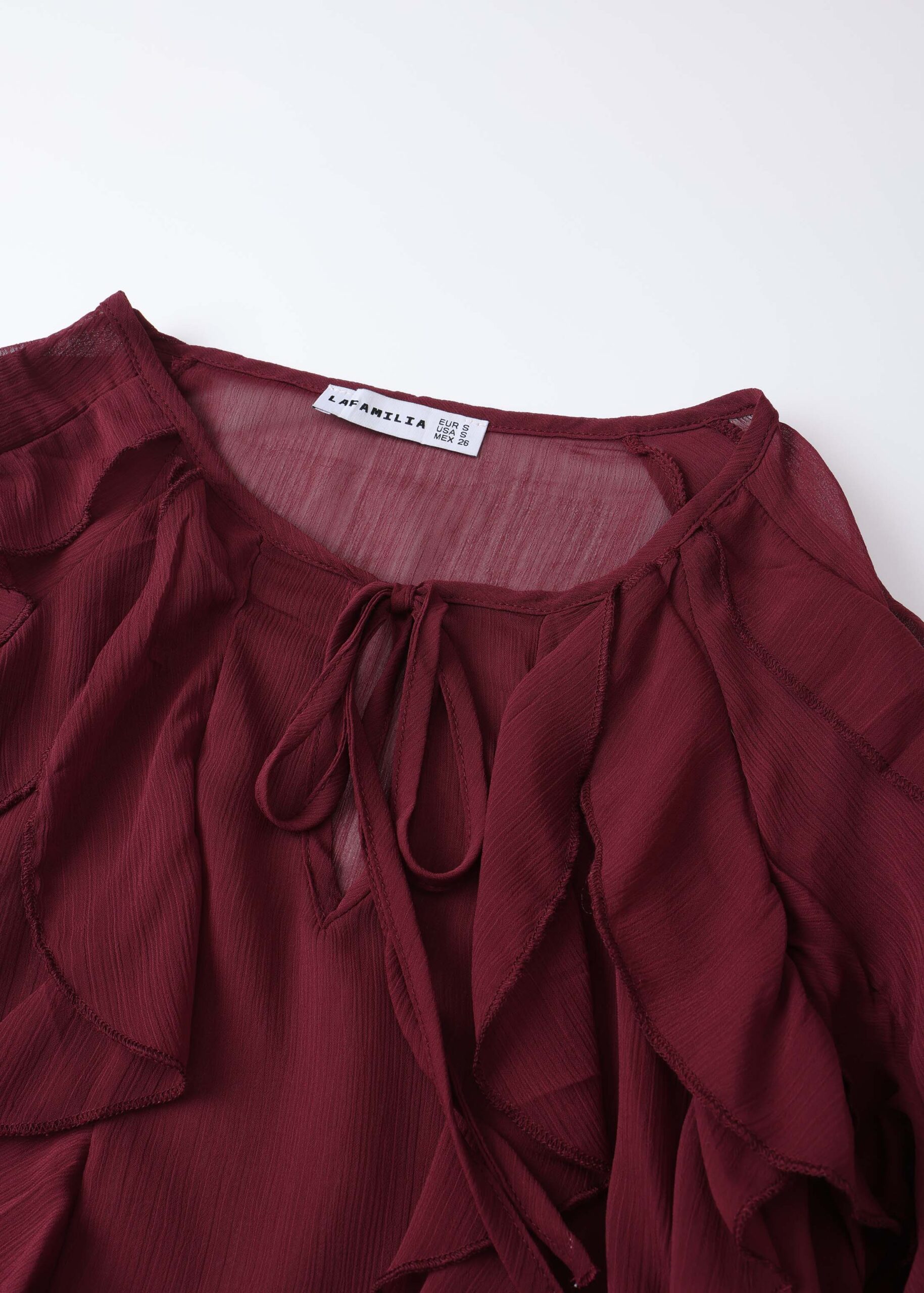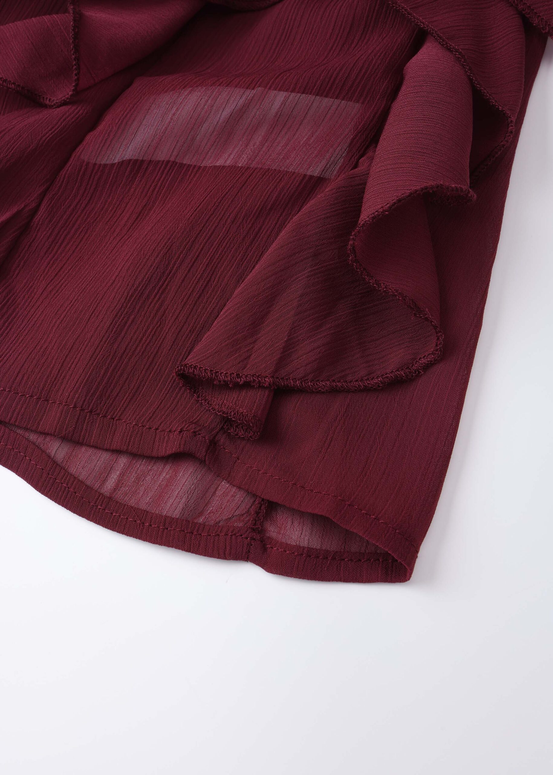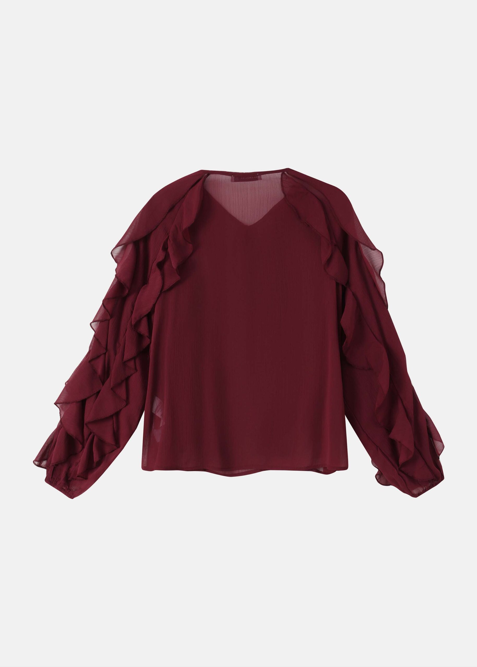 توب نسائي, شيفون, تصميم كشكش, ياقة سبعة مع حبل للربط من الامام, اكمام طويلة مع معصم ضيق, انيقة وعصرية